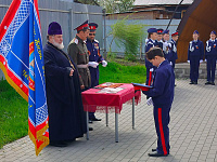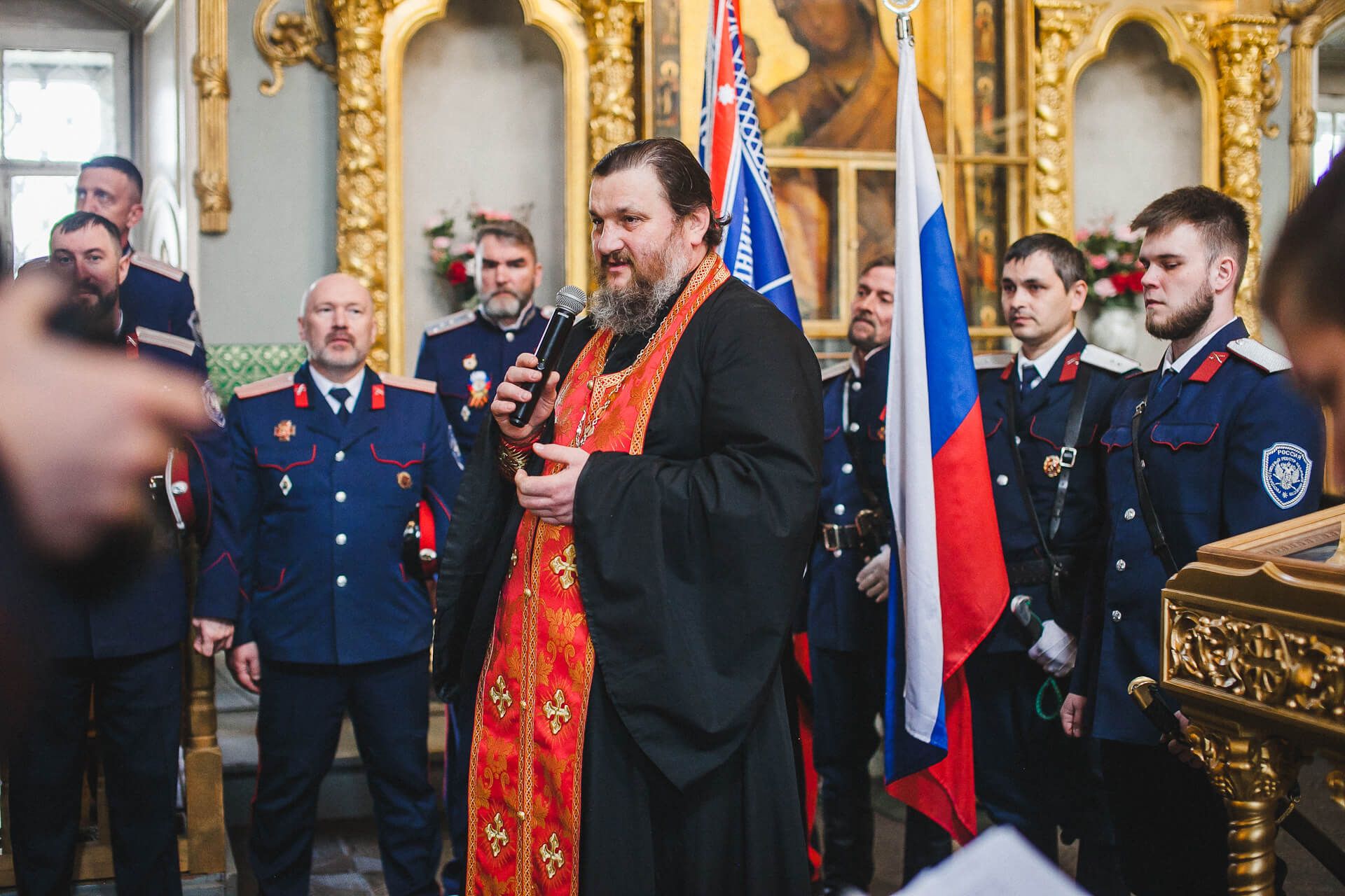 7 мая в Архангельском соборе г. Бронницы состоялось торжественное мероприятие принятия присяги кадетами казачьего кадетского класса МАОУ СОШ №2 имени Н.А. Тимофеева г.о. Бронницы Михаила. На мероприятии присутствовали: атаман ОКО Московской области Игнатьев Владимир, первый заместитель атамана ОКО Московской области Малыгин Владимир, атаман ХКО Бронницы Качнов Михаил, атаман ХКО Люберцы Лямин Константин, благочинный 1-го Бронницкого благочиннического округа иерей Сергий Себелев, депутат Совета депутатов Корнеева Нина Николаевна. Ответственный за взаимодействие с казачеством в 1-м и 2-м Бронницких благочиннических округах протоиерей Алексий Авдокушин обратился к кадетам с напутственным словом.