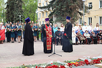 8 мая, накануне Дня Победы, у мемориала «Вечный огонь» г. Воскресенск состоялся торжественный митинг. Председатель Отдела протоиерей Сергий Рыбаков и клирики 1-го и 2-го Воскресенских благочиннических округов отслужили заупокойную литию по павшим воинам. Минутой молчания собравшиеся почтили память воскресенцев, не вернувшихся с войны, и возложили цветы к Вечному огню.
