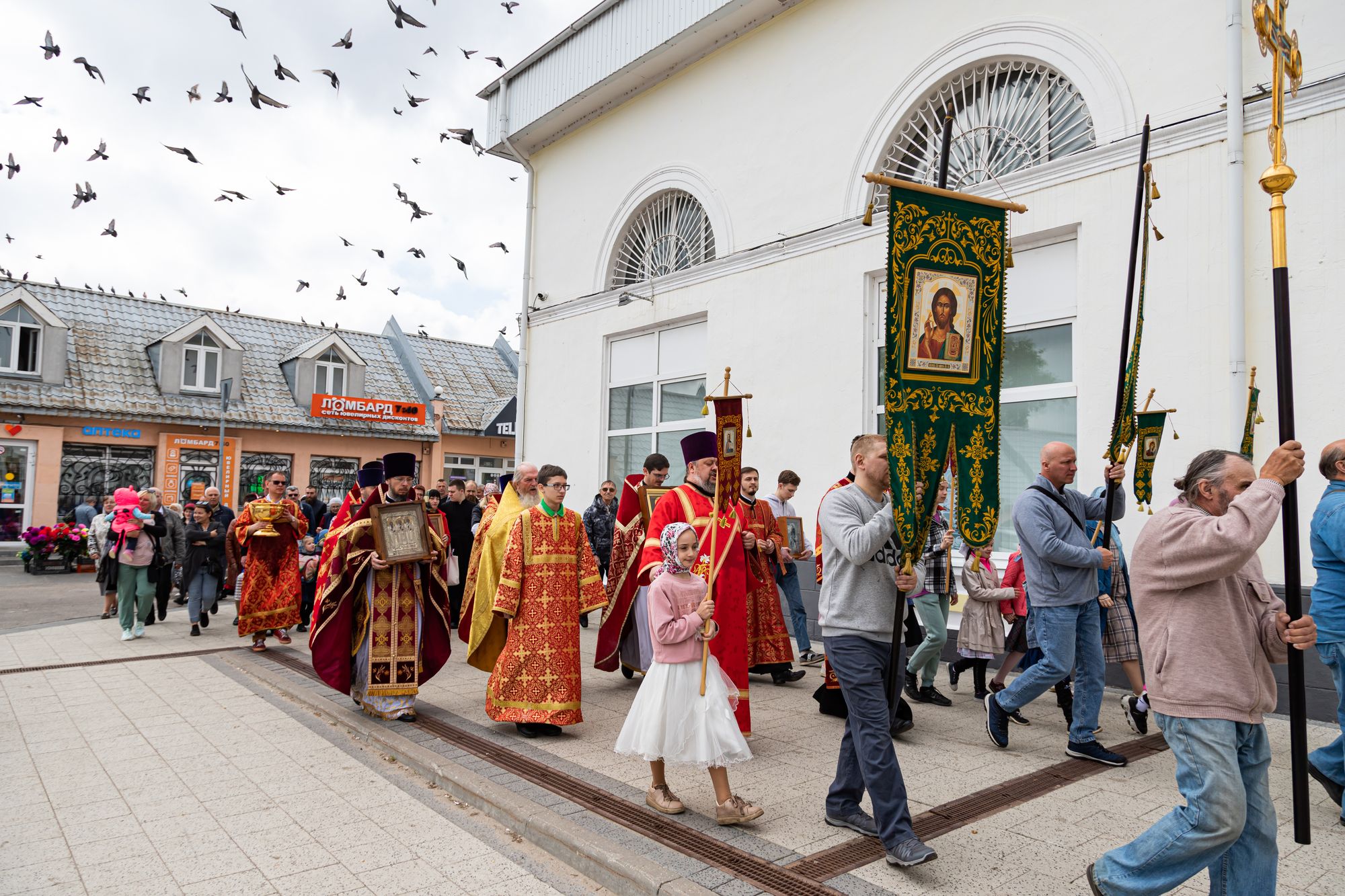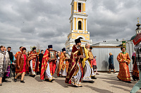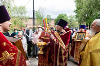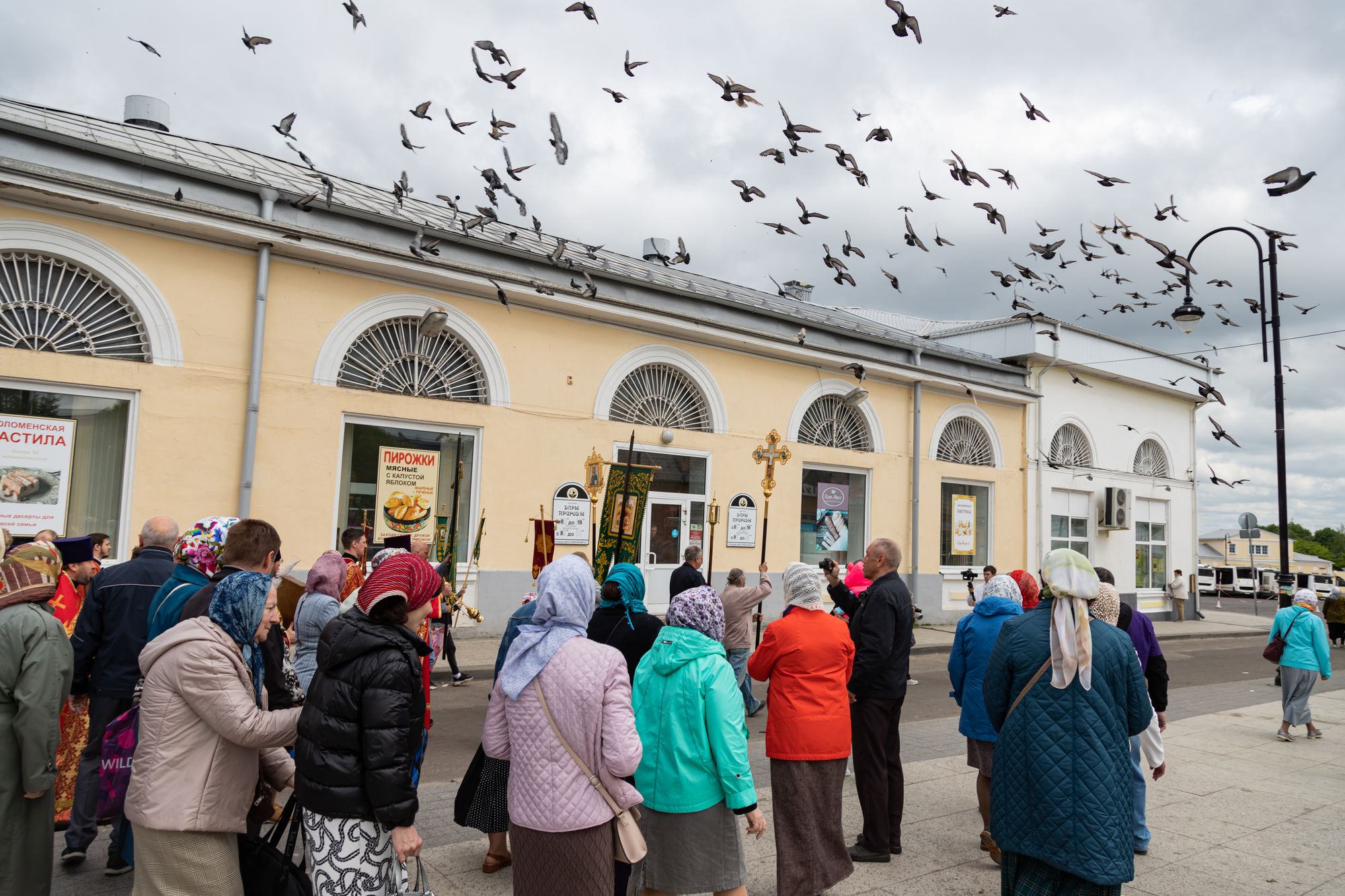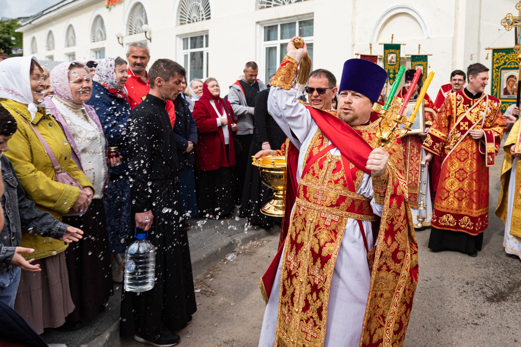 По окончании литургии состоялись крестный ход вокруг храма и молебен перед иконой праздника.