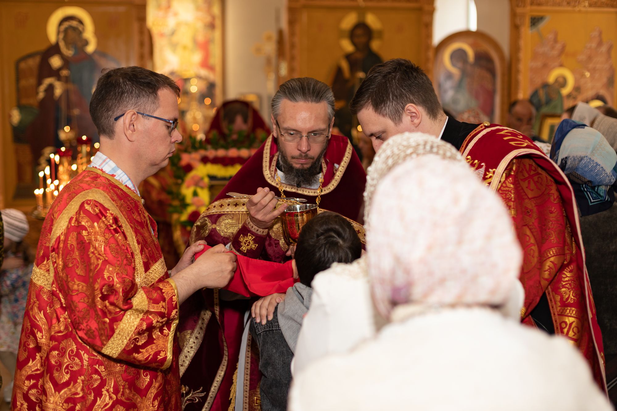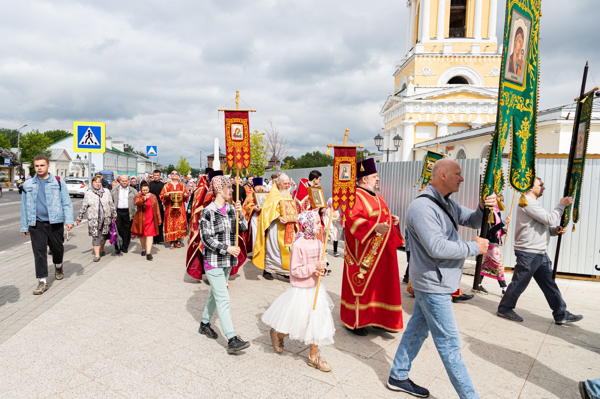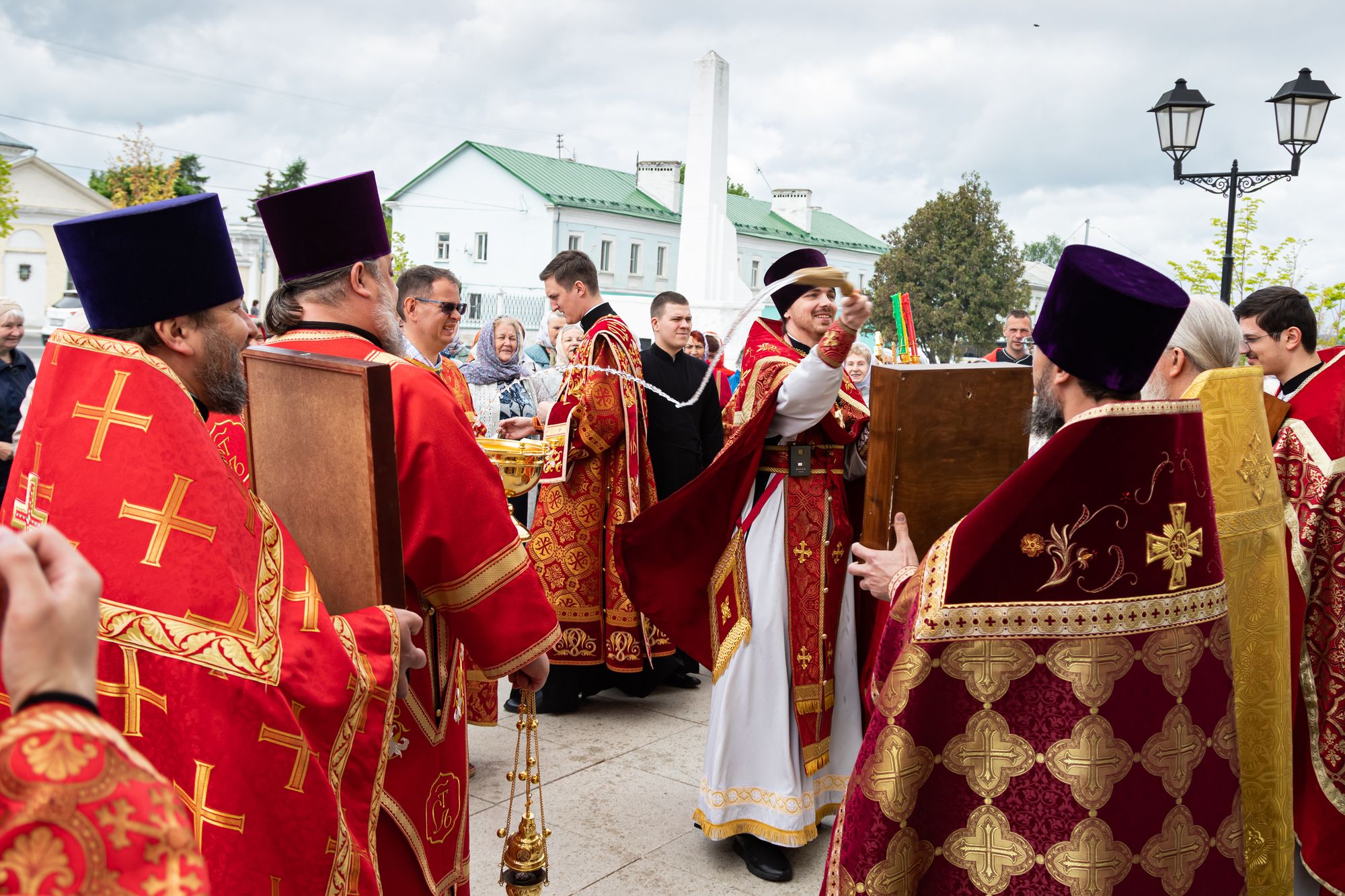 По окончании литургии состоялись крестный ход вокруг храма и молебен перед иконой праздника.