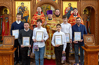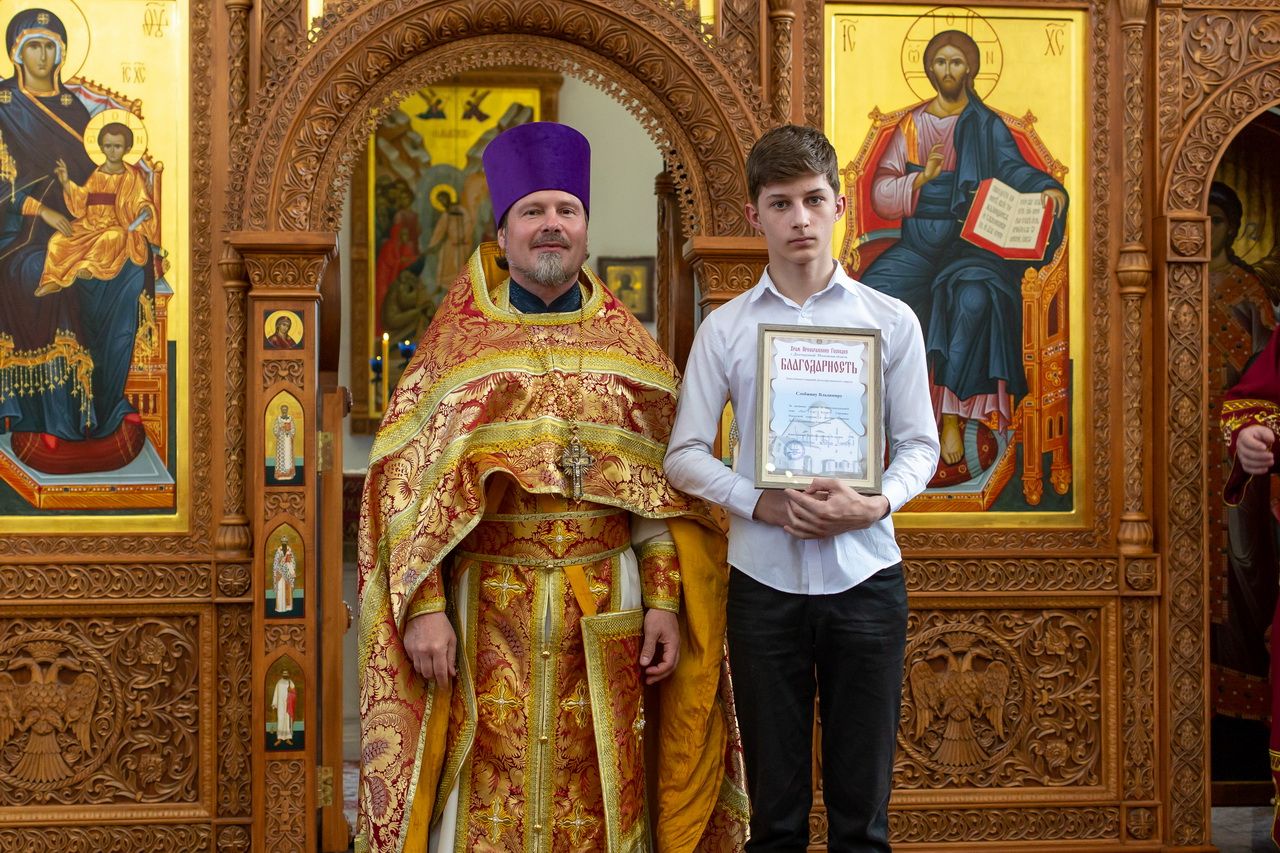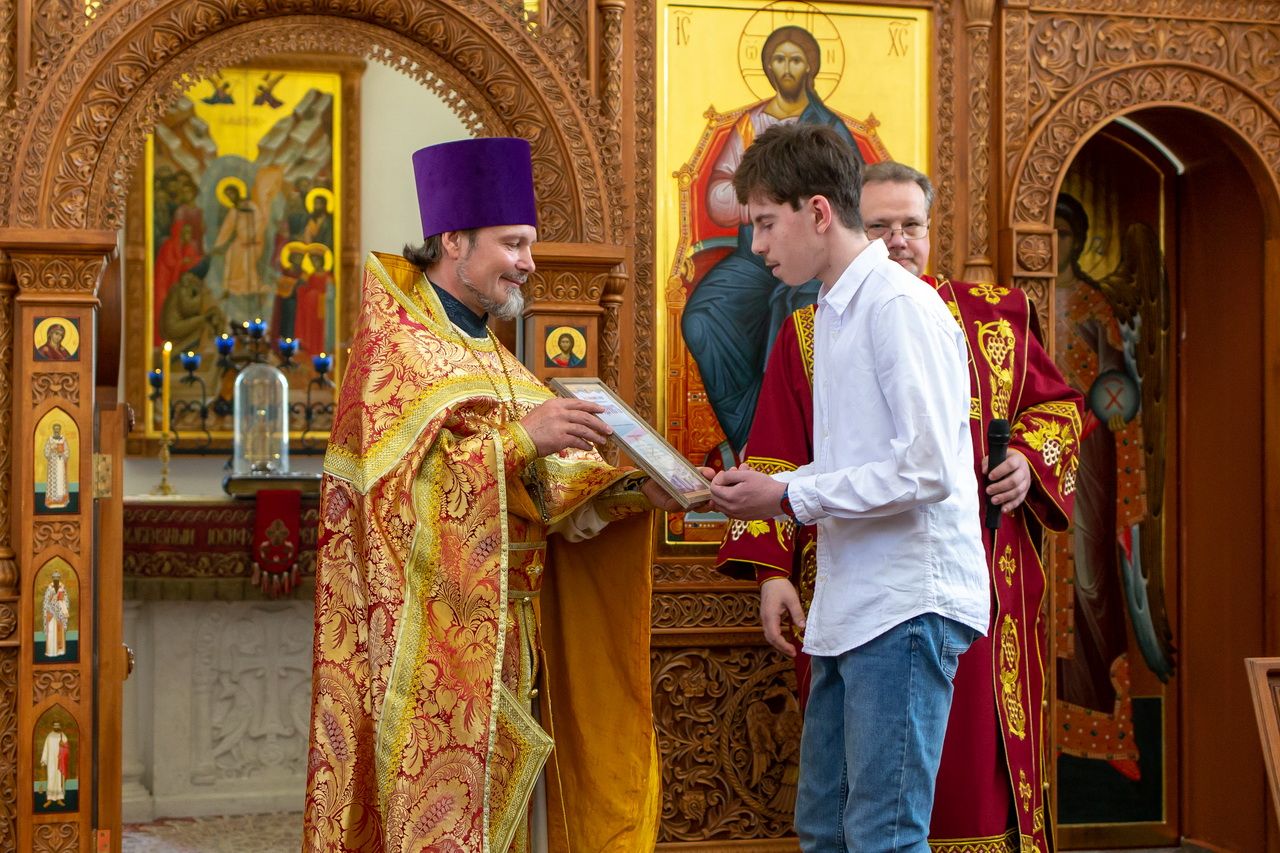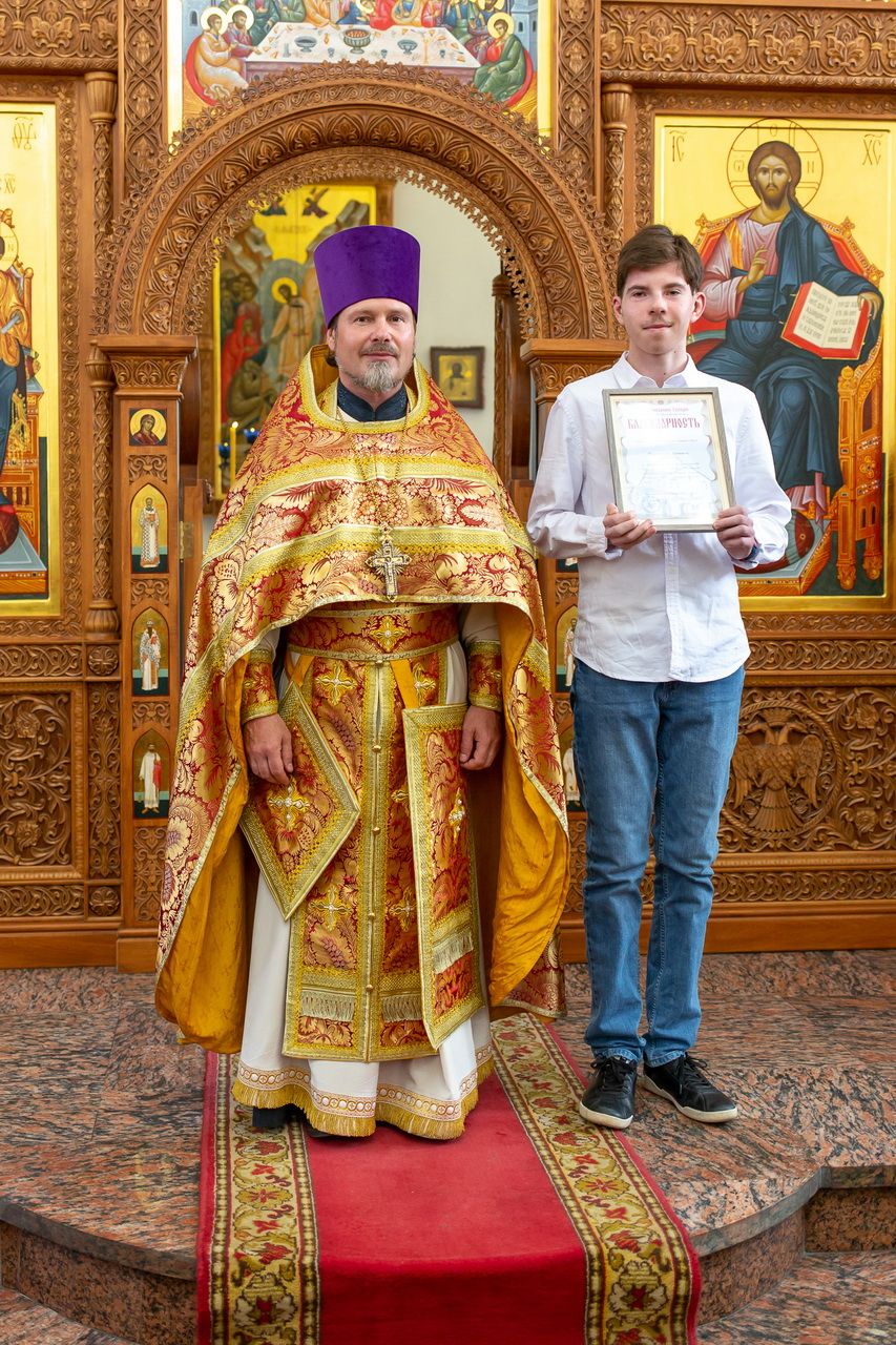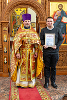Отец Андрей вручил благодарственные грамоты и памятные подарки участникам соревнования. После напутственного слова было сделано общее фото.