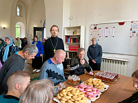 Проживающие в данном интернате, который более 18 лет окормляется настоятелем храма иереем Иоанном Бакушкиным, регулярно посещают Богослужения, исповедуясь и причащаясь Святых Христовых Тайн вместе с прихожанами. По окончании праздничной Божественной литургии иерей Иоанн поздравил прихожан и гостей с престольным праздником правого предела храма.