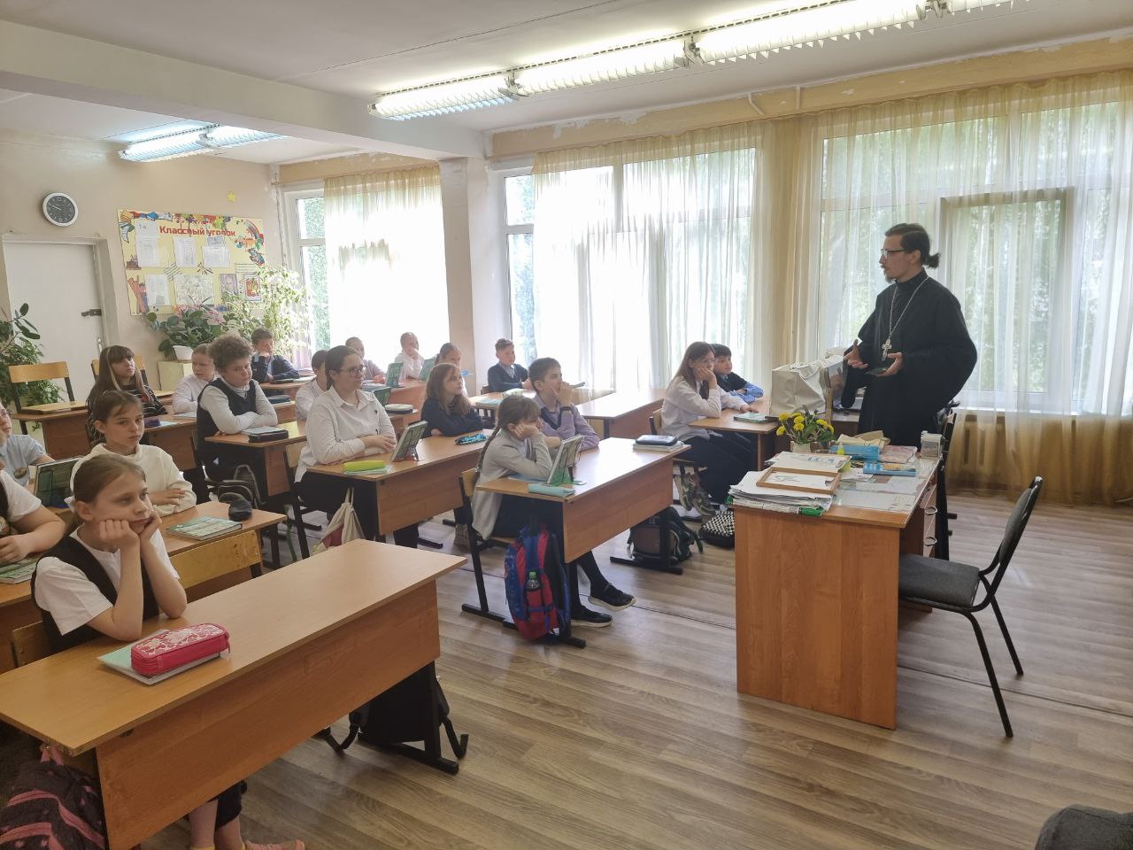 22 мая с.г. клирик Богоявленского храм г. Коломны иерей Иоанн Чепкий посетил МБОУ СОШ №16 и МБОУ СОШ №15 г. Коломны, где провёл открытый урок в 5-6 классах, посвященный ко Дню Славянской письменности и культуры. Дети активно принимали участие в обсуждении темы урока и познакомились с новым для себя материалом.