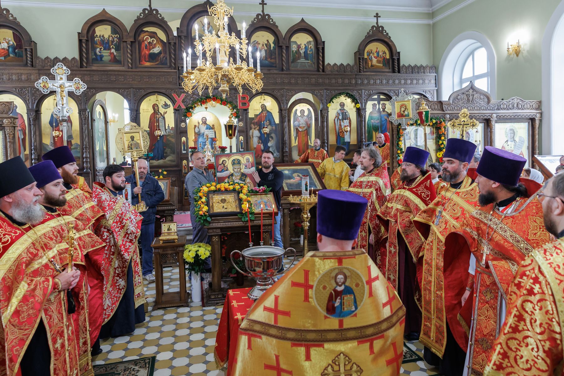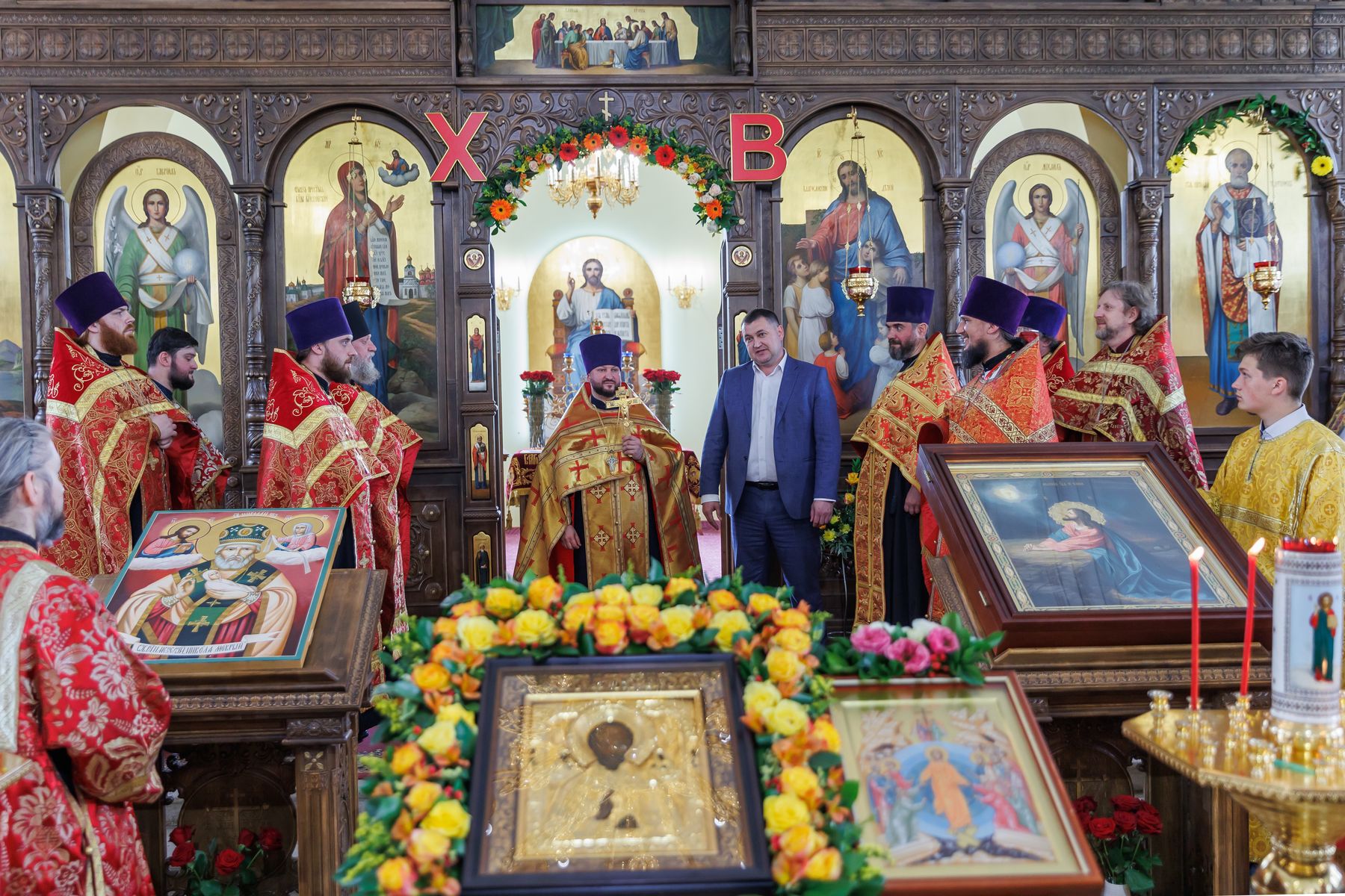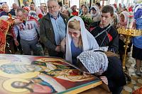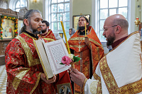 Встретившись, духовенство и прихожане обоих приходов направились к Никольскому храму, где отец Андрей в сослужении духовенства благочиния совершил молебен и освятил храмовый образ «Моление о Чаше».