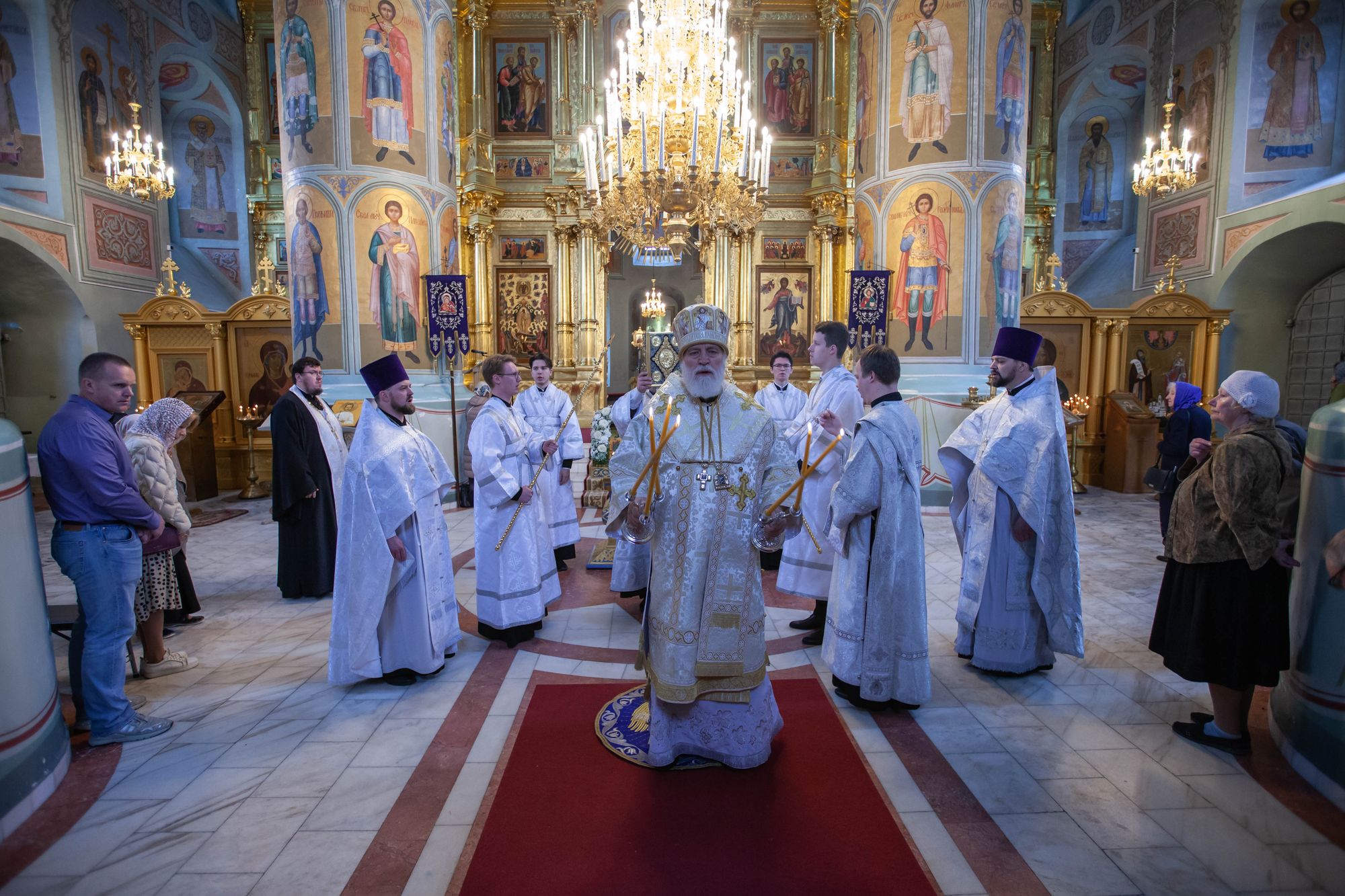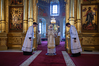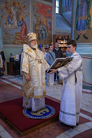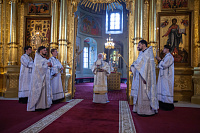 Его Высокопреосвященству сослужили: секретарь Коломенского епархиального управления, ключарь кафедрального собора протоиерей Андрей Рыбин и благочинный собора иерей Андрей Згонников.