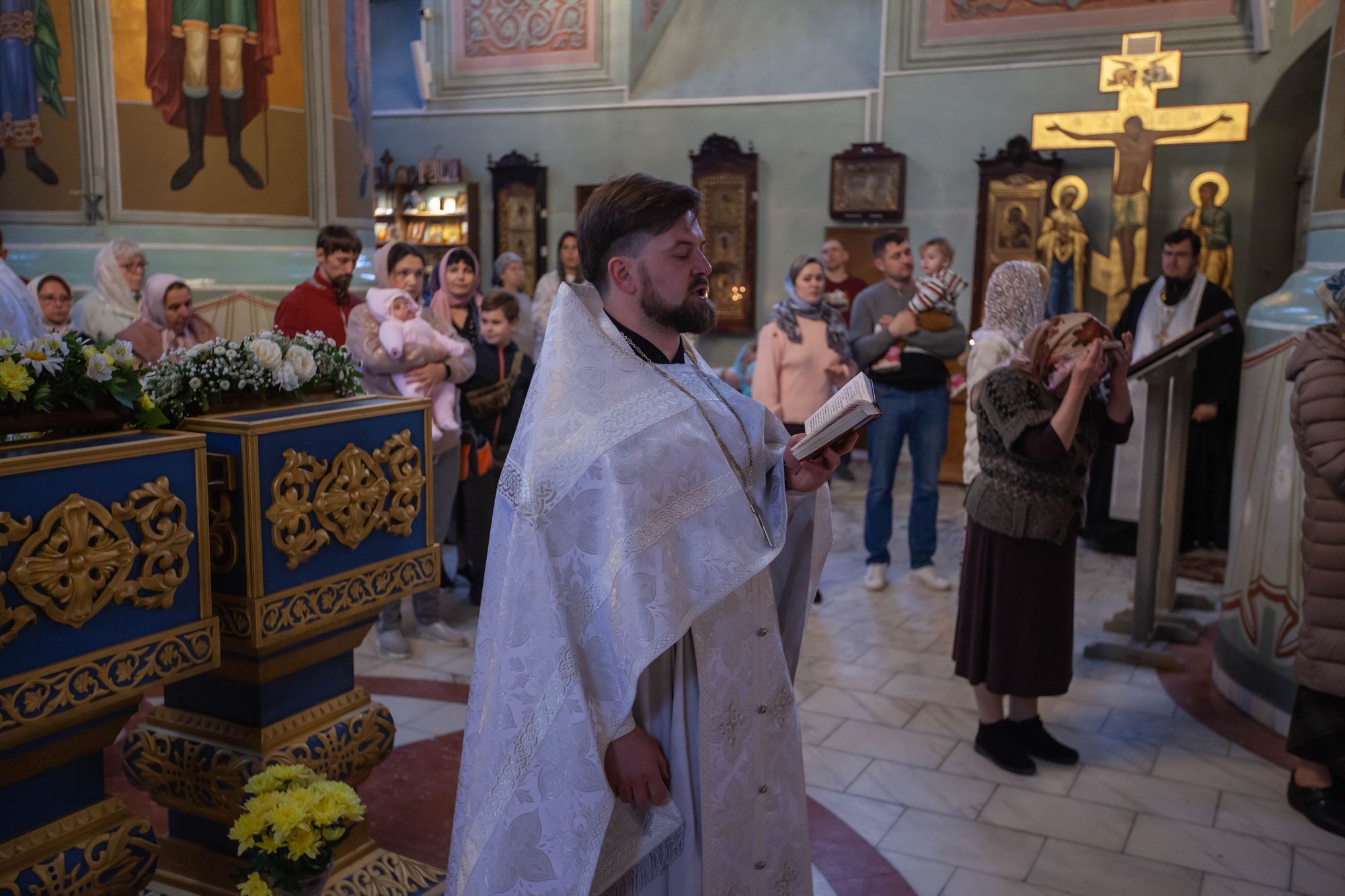 Богослужебные песнопения исполнил соборный хор под управлением Натальи Камышниковой.