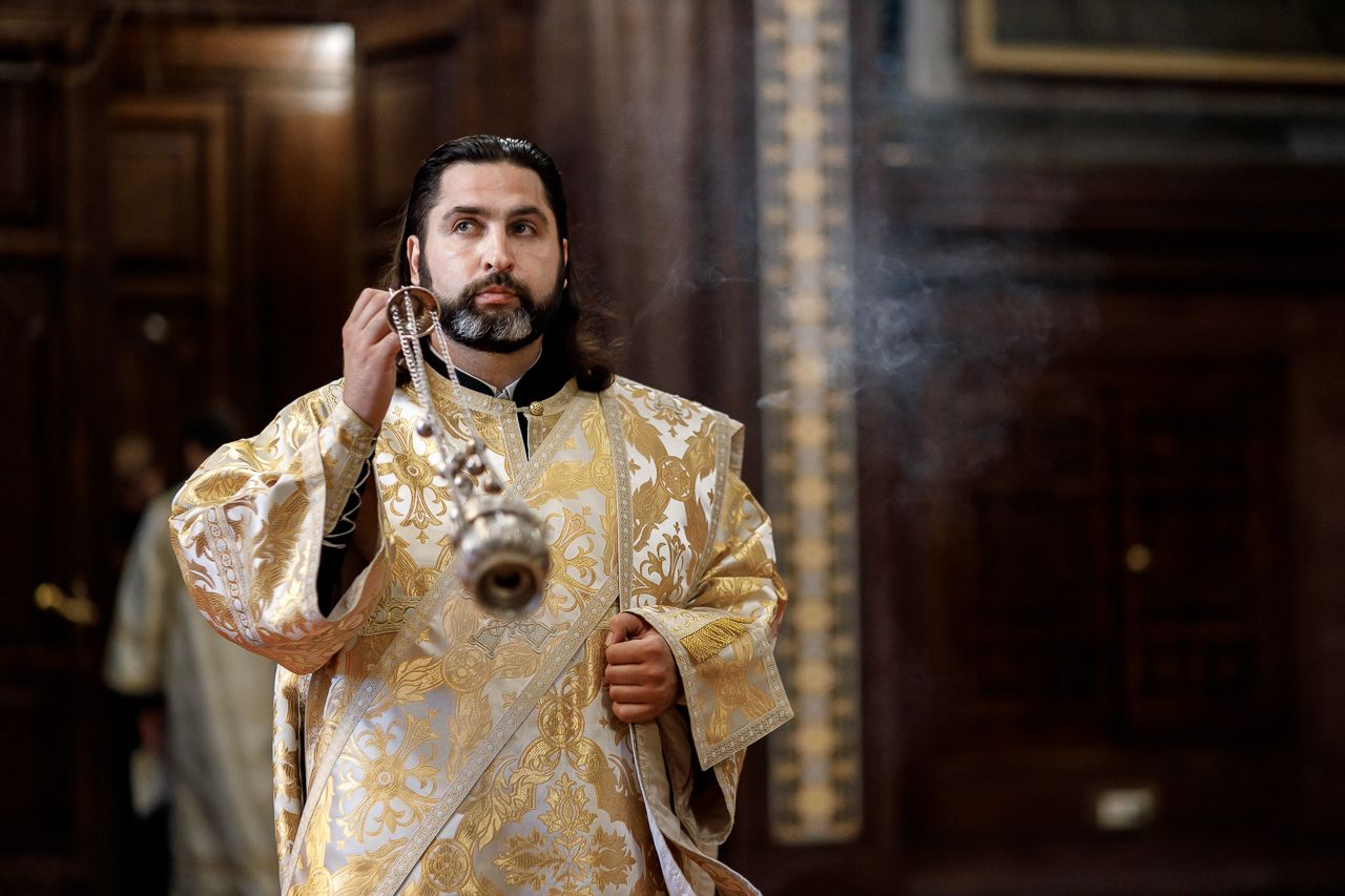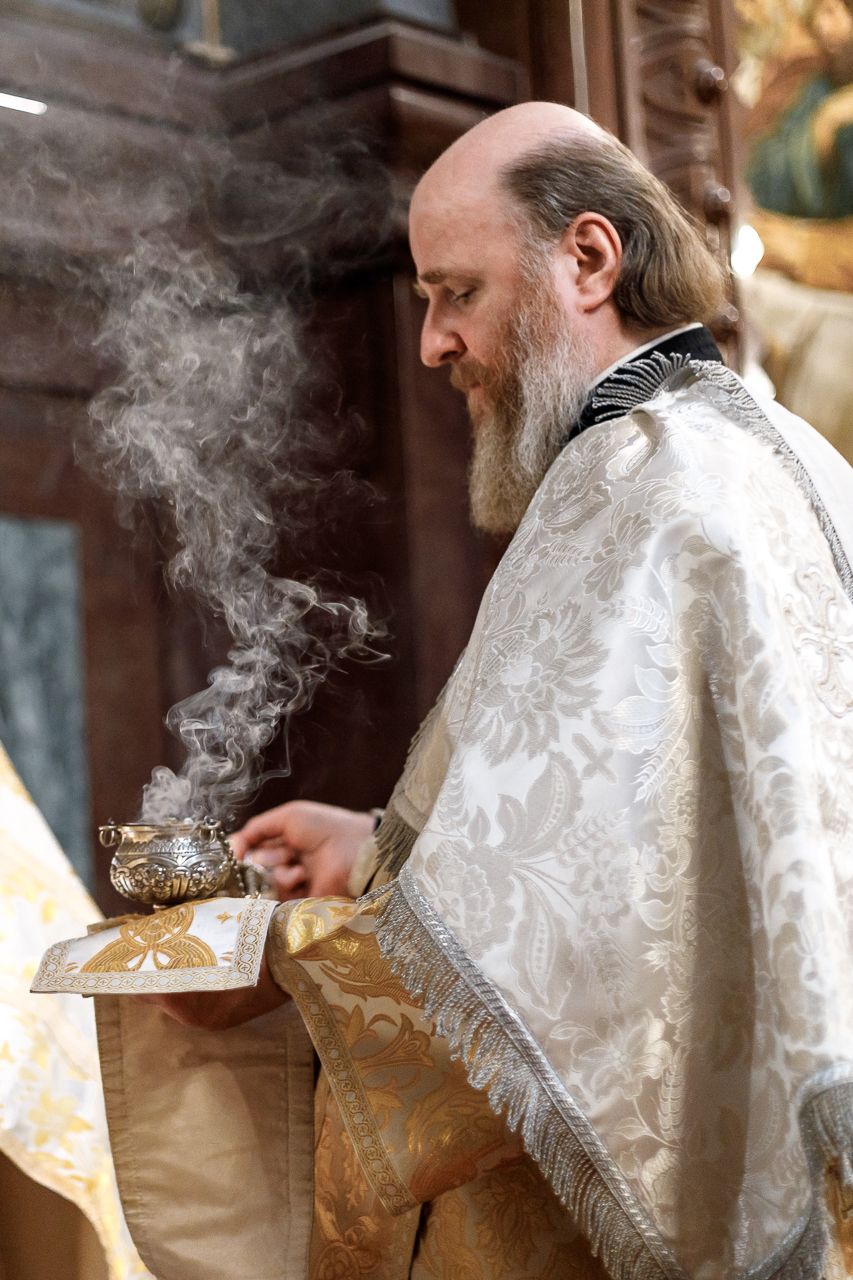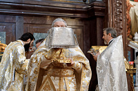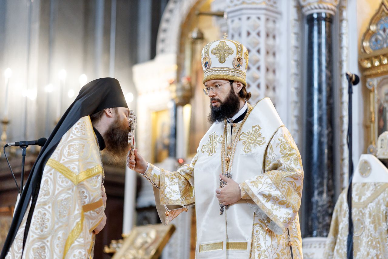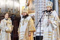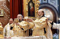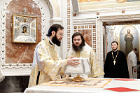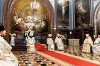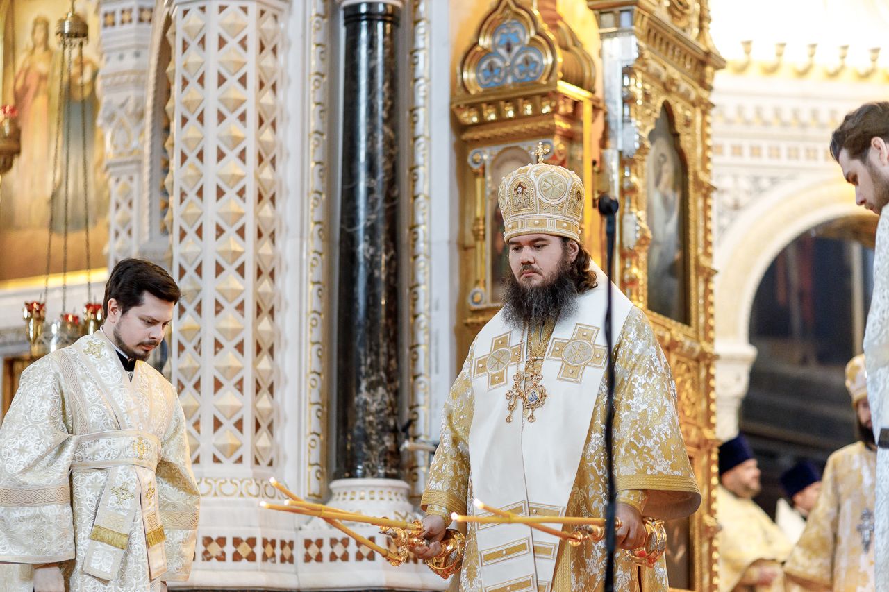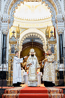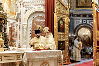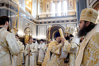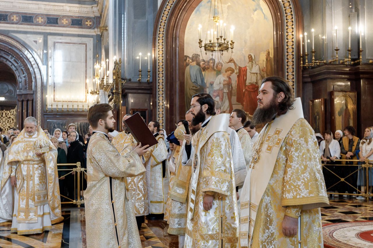 Божественную литургию возглавил председатель Отдела внешних церковных связей митрополит Волоколамский Антоний. Ему сослужили: митрополит Костромской и Нерехтский Ферапонт, епископ Сергиево-Посадский и Дмитровский Фома, ключарь Храма Христа Спасителя протоиерей Михаил Рязанцев, клирик собора Воскресения Христова на Дебре г. Костромы иеродиакон Иоасаф (Синявин), наместники ставропигиальных монастырей, благочинный Химкинского церковного округа протоиерей Артемий Гранкин, благочинный Долгопрудненского церковного округа протоиерей Андрей Хмызов, духовенство Троице-Сергиевой Лавры и Сергиево-Посадской епархии.