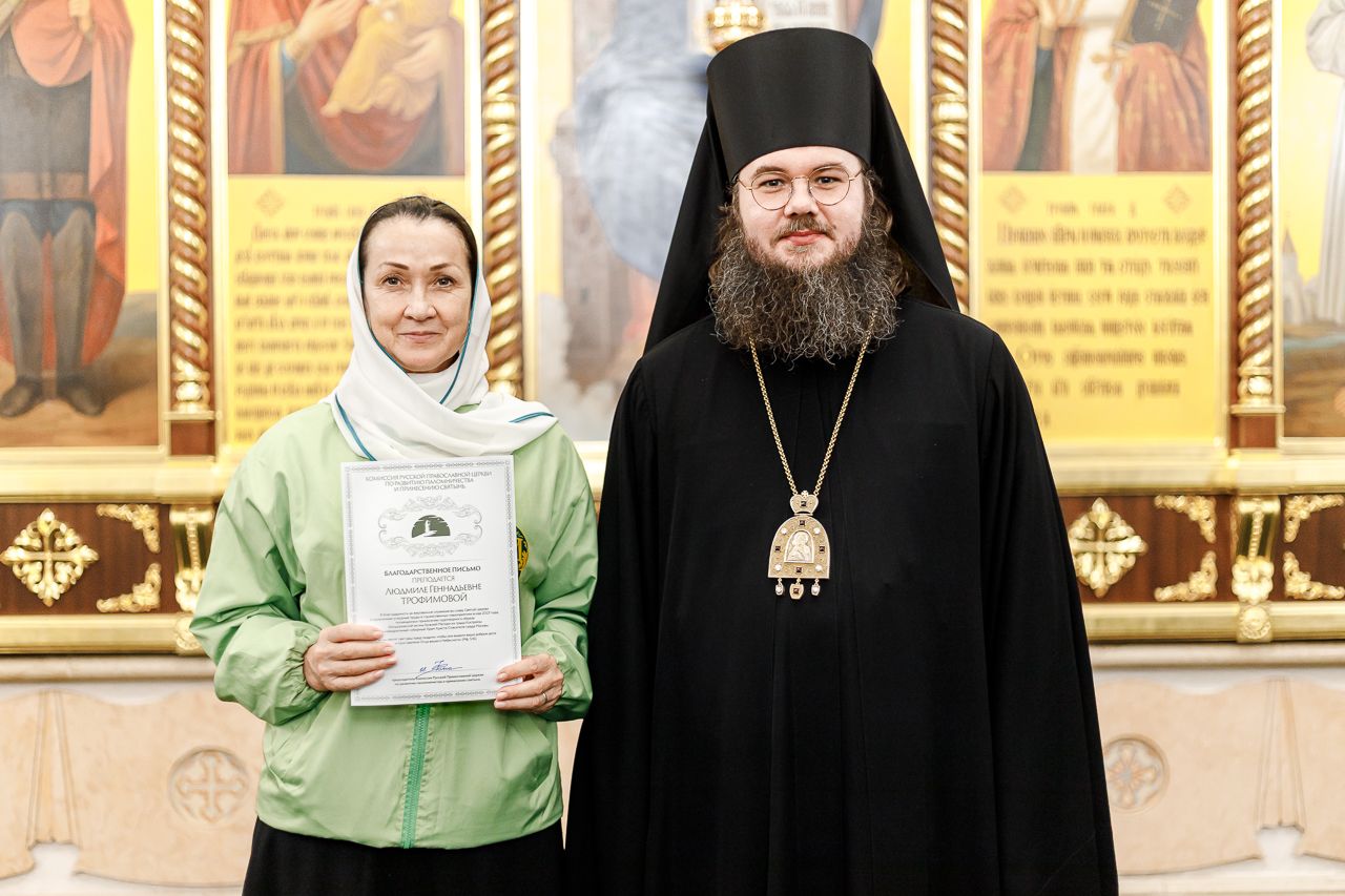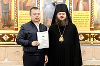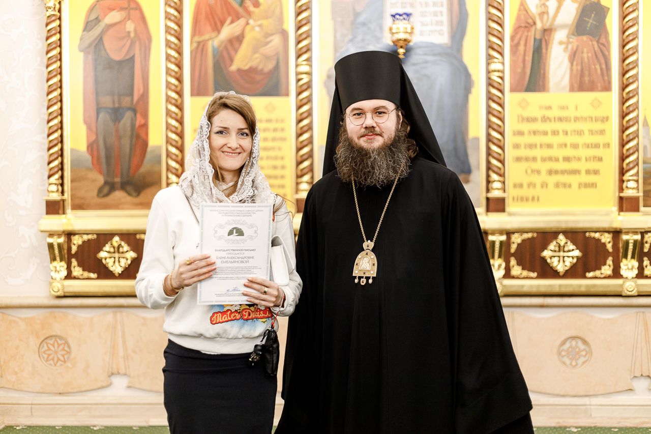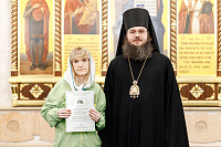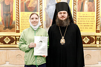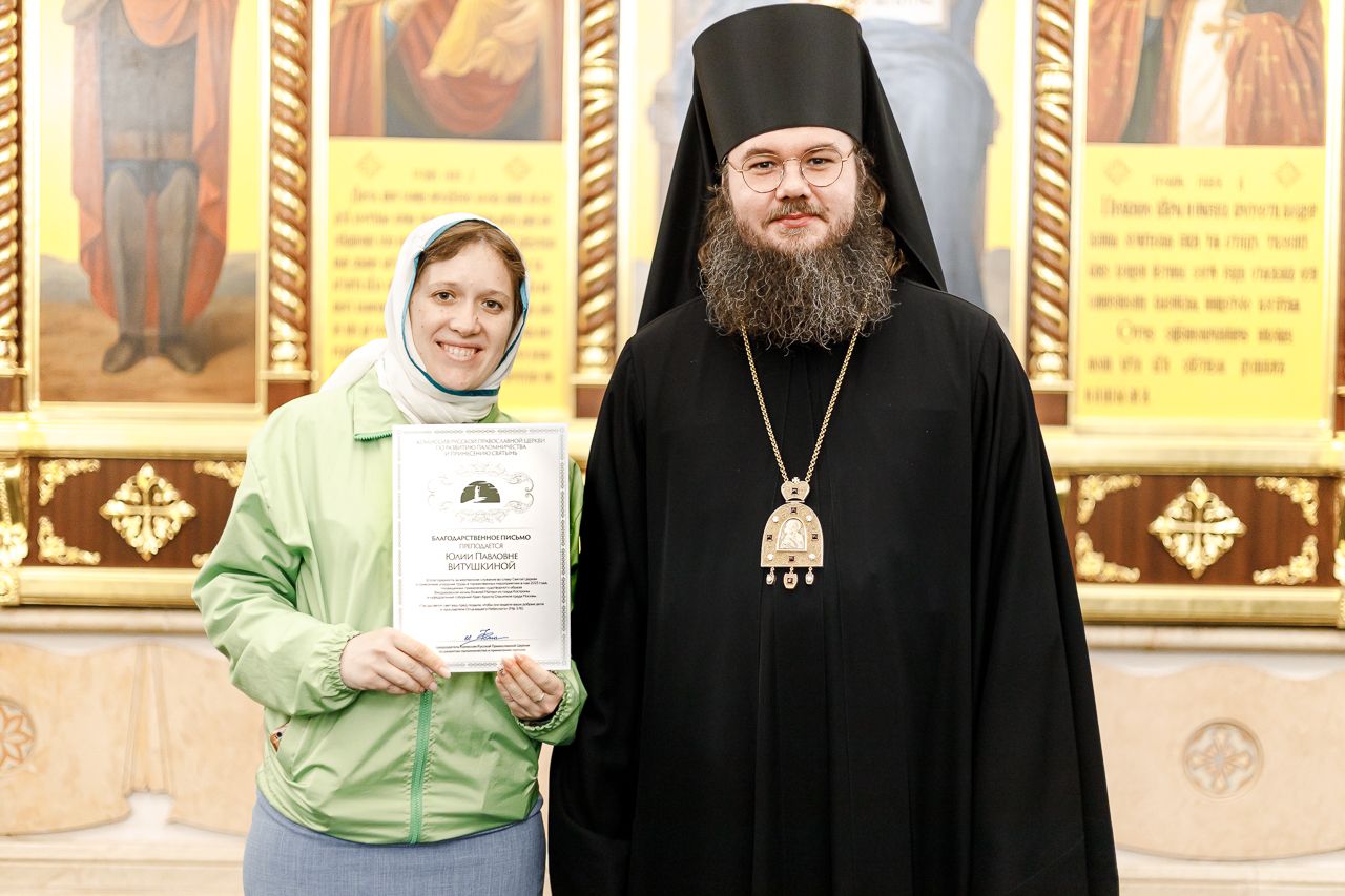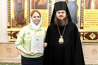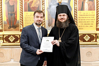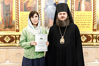 Также епископ Фома наградил благодарственными письмами патриарших православных добровольцев за их волонтерскую работу во время пребывания Феодоровской иконы в Храме Христа Спасителя. Перед вручением наград Владыка поблагодарил добровольцев за их самоотверженное служение. Епископ Фома подчеркнул, что труд на благо Церкви и ближнего – это свидетельство подлинной жизни во Христе и высшее счастье для верующего человека.