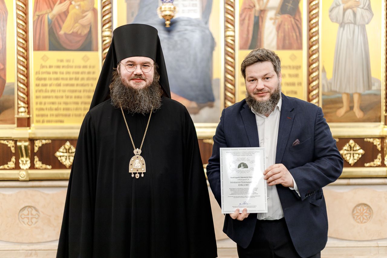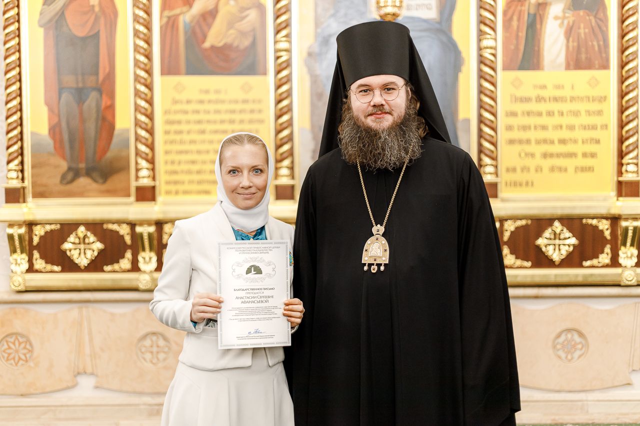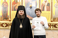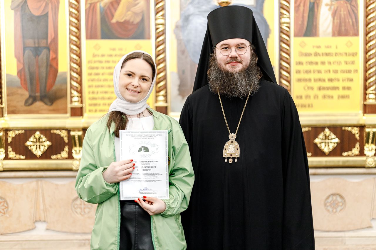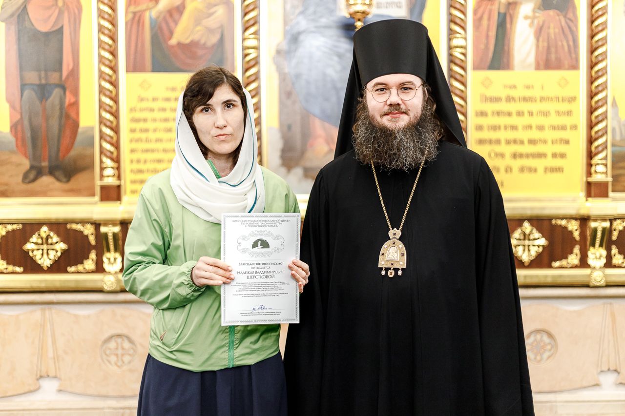 Также епископ Фома наградил благодарственными письмами патриарших православных добровольцев за их волонтерскую работу во время пребывания Феодоровской иконы в Храме Христа Спасителя. Перед вручением наград Владыка поблагодарил добровольцев за их самоотверженное служение. Епископ Фома подчеркнул, что труд на благо Церкви и ближнего – это свидетельство подлинной жизни во Христе и высшее счастье для верующего человека.