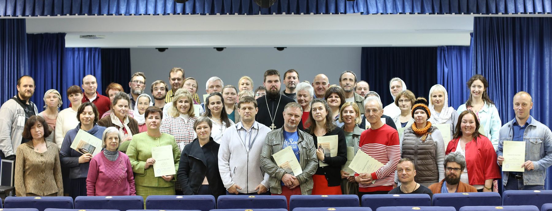 28 мая в центре культуры и искусств имени Калиниченко г. Ногинска состоялась заключительная встреча мирян, завершивших двухгодичный курс обучения и прошедших аттестацию на Библейско-богословских курсах имени преподобного Сергия Радонежского, организованных на базе Коломенской духовной семинарии.