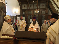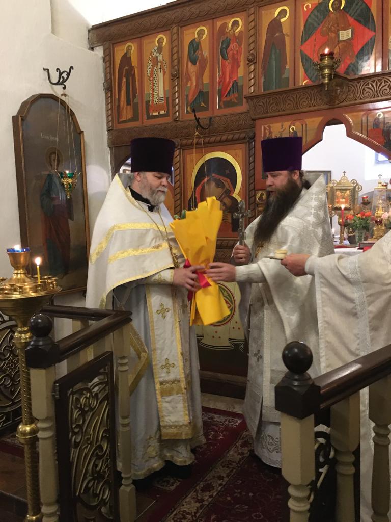 По окончании благочинный, духовенство и прихожане поздравили настоятеля храма отца Александра с днём тезоименитства и пожелали ему помощи Божией в его пастырских трудах.