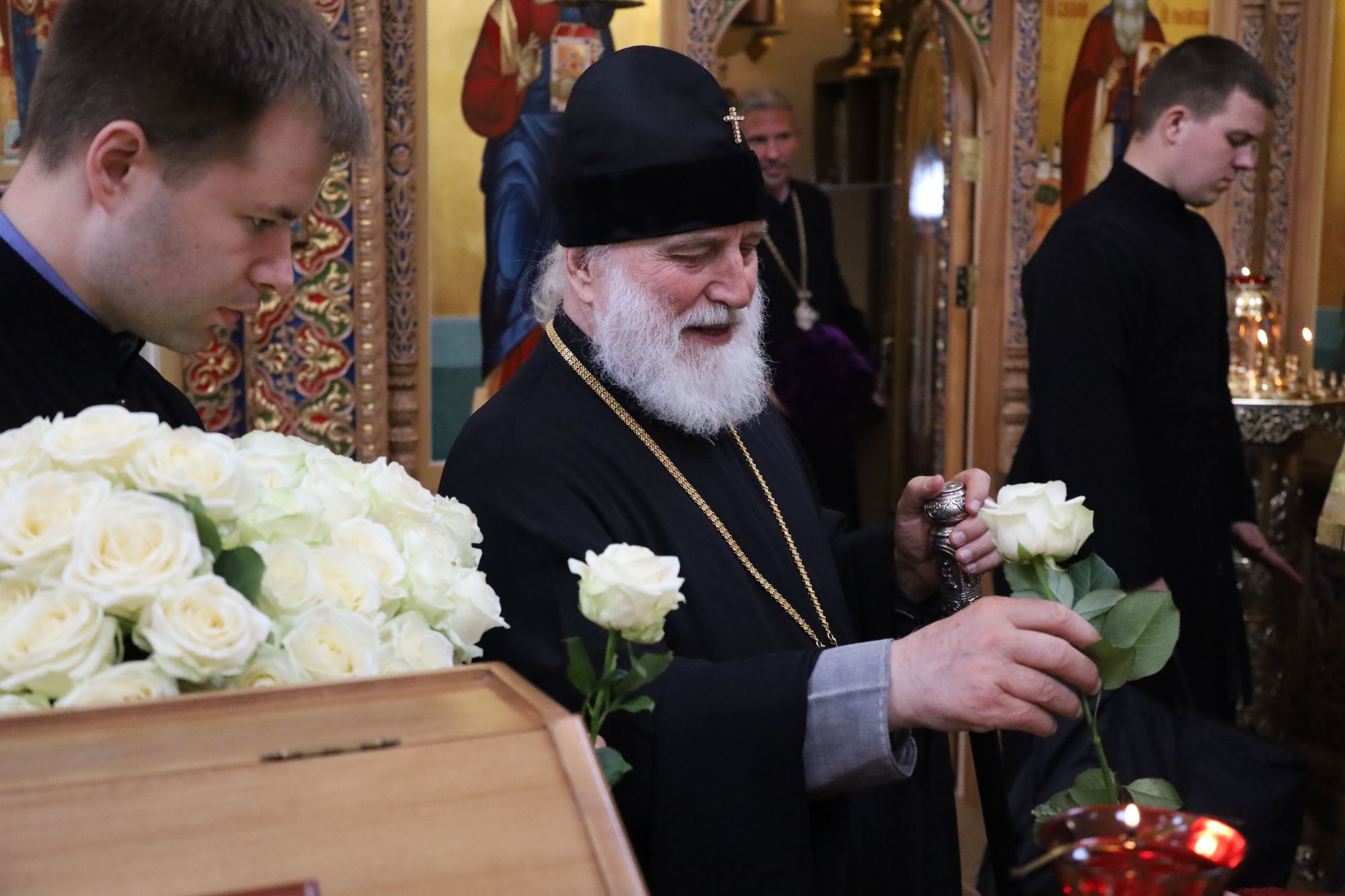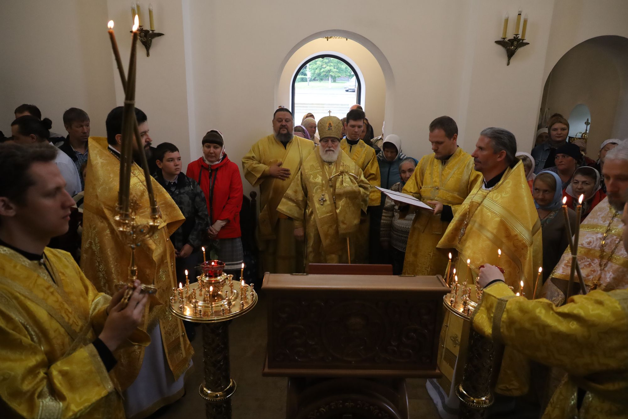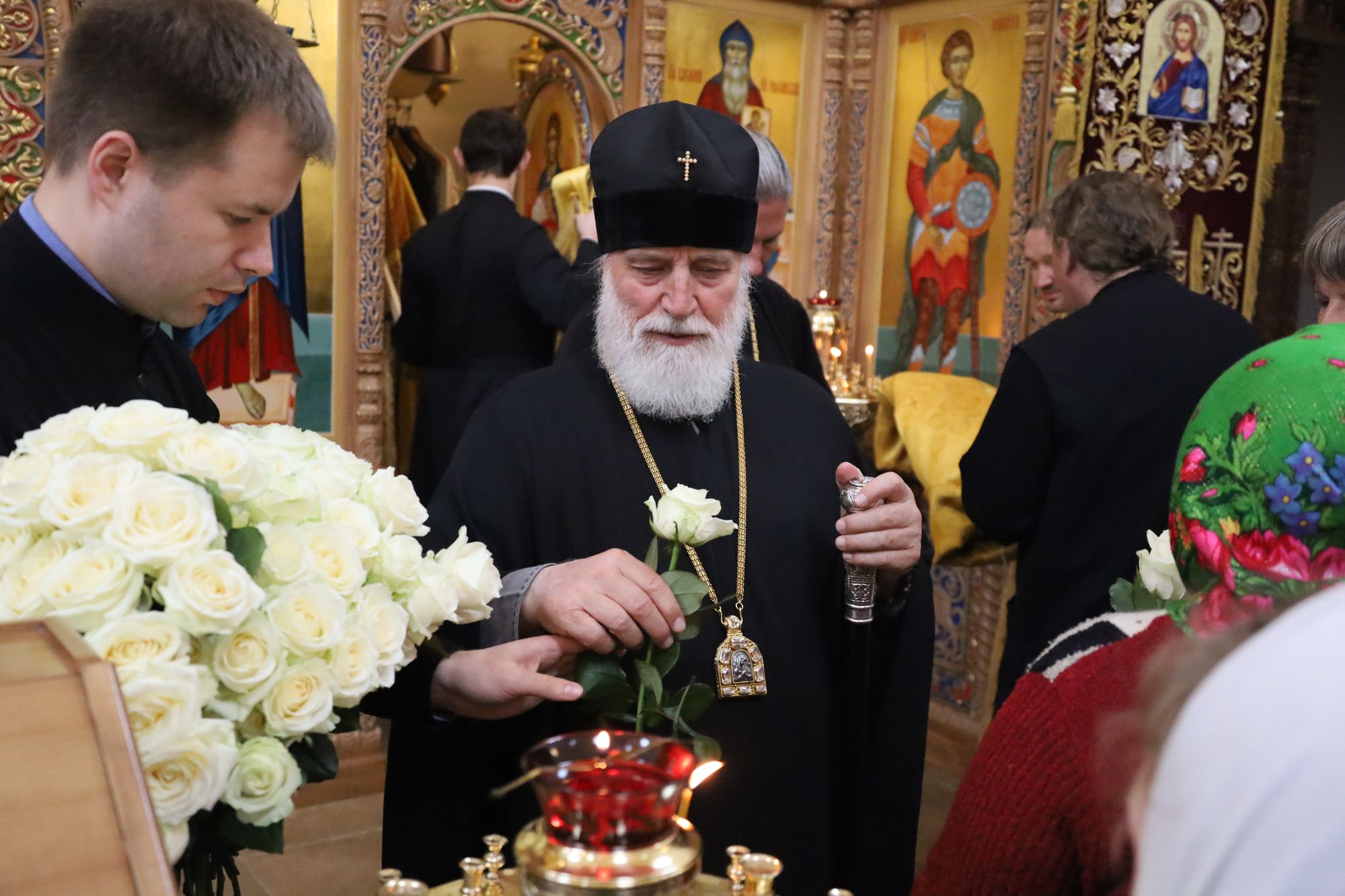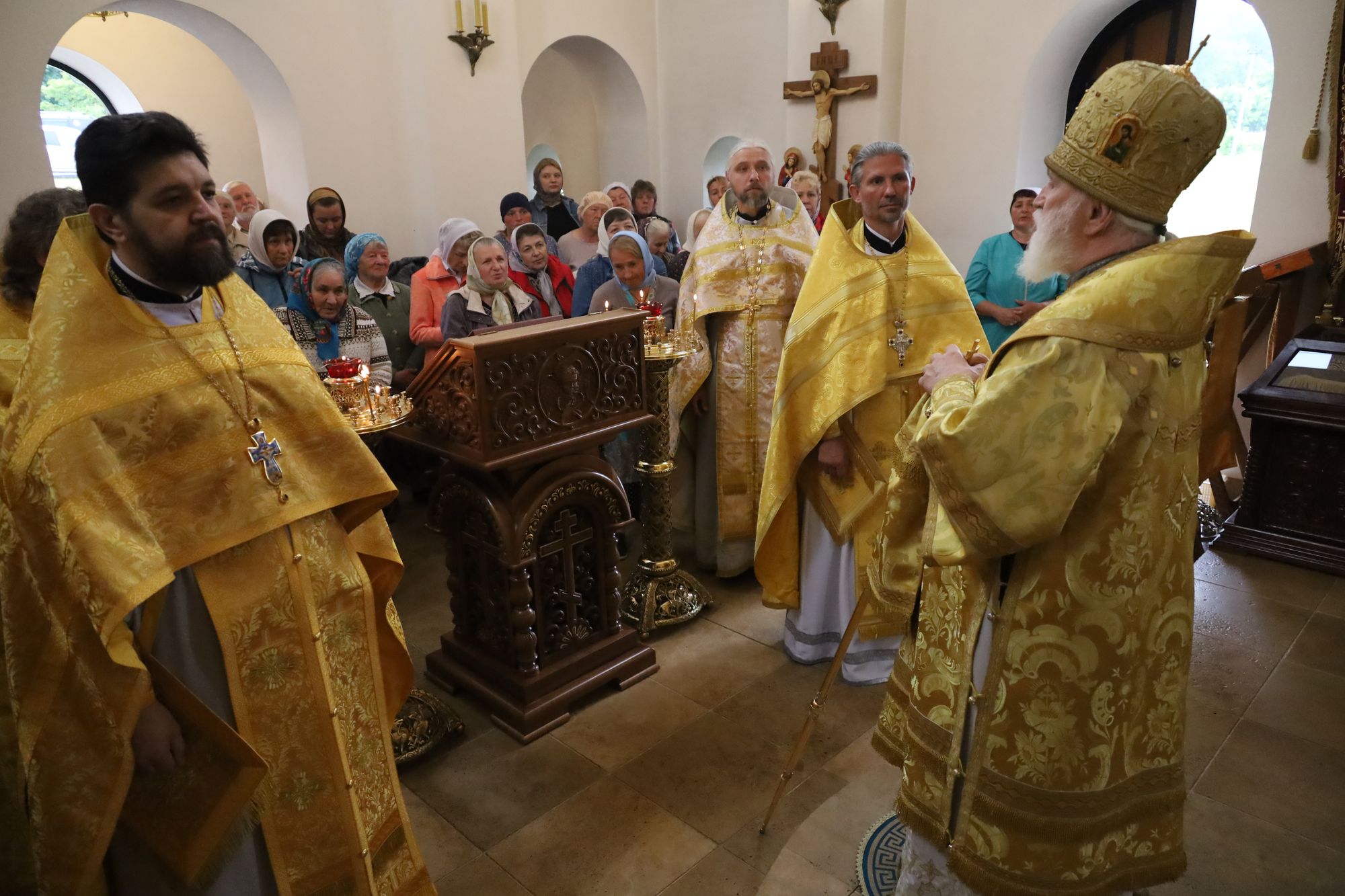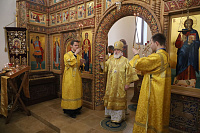 Его Высокопреосвященству сослужили: секретарь Коломенского епархиального управления протоиерей Андрей Рыбин, благочинный Зарайского округа, настоятель храма протоиерей Пётр Спиридонов, заместитель благочинного, настоятель Успенского храма дер. Рожново протоиерей Михаил Сокрутов и клирик храма иерей Георгий Пужалов.