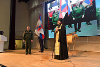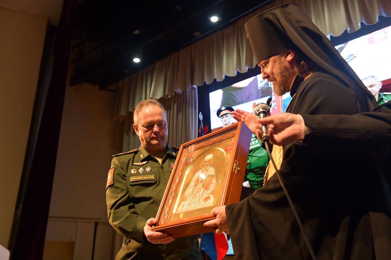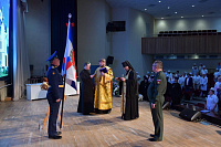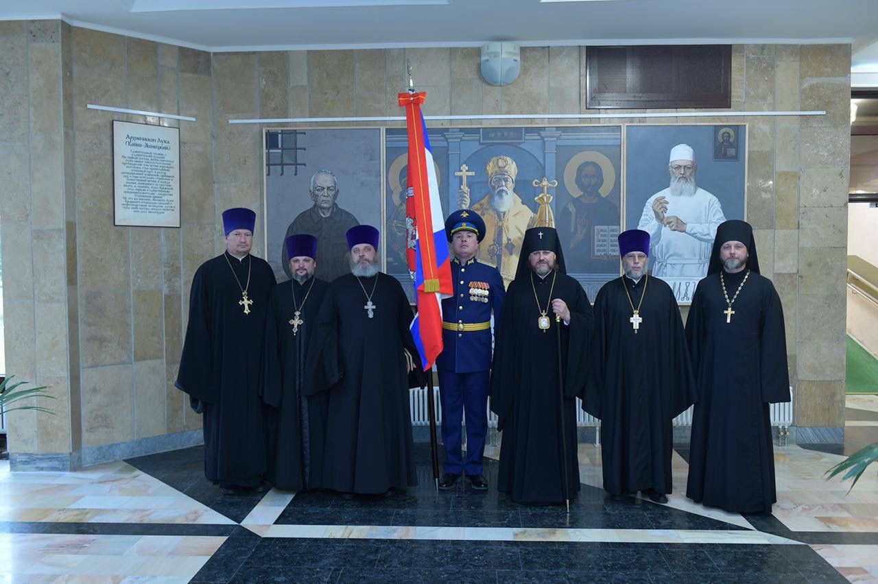 По окончании литургии в конференц-зале госпиталя состоялось торжественное освящение Почетного Знамени к ордену Александра Невского, которым Центральный военный клинический госпиталь имени А.А. Вишневского был награжден Указом президента России за большой вклад в развитие отечественной медицины и за высокие достижения по охране здоровья личного состава Вооруженных сил.