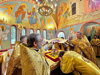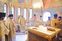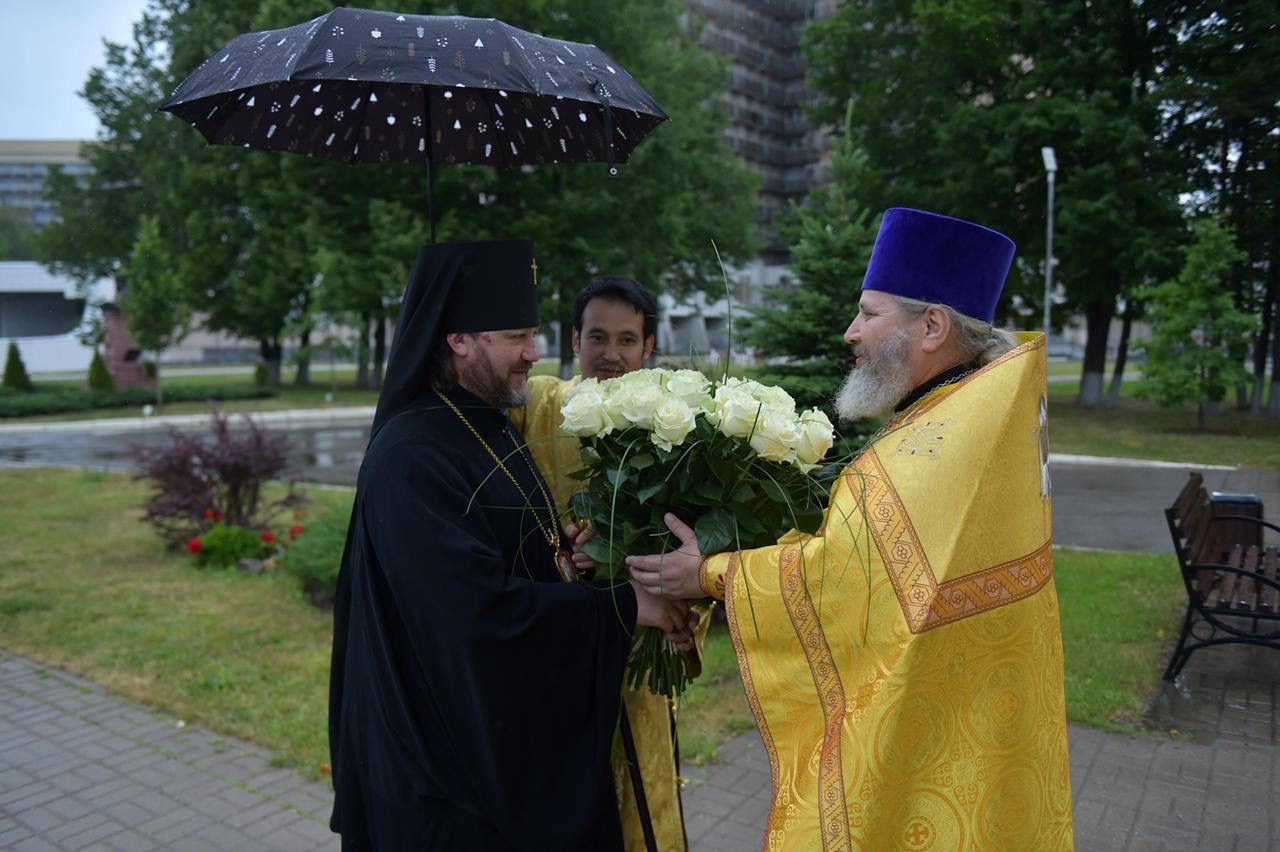 Высокопреосвященнейшему Владыке сослужили секретарь Патриарха Московского и всея Руси по Московской области, секретарь Одинцовского епархиального управления протоиерей Дионисий Казанцев, благочинный Красногорского благочиннического округа протоиерей Владимир Шафоростов, председатель Епархиальной комиссии по развитию православного паломничества протоиерей Игорь Смертин, настоятель храма священник Олег Мирошников и духовенство Одинцовской епархии.