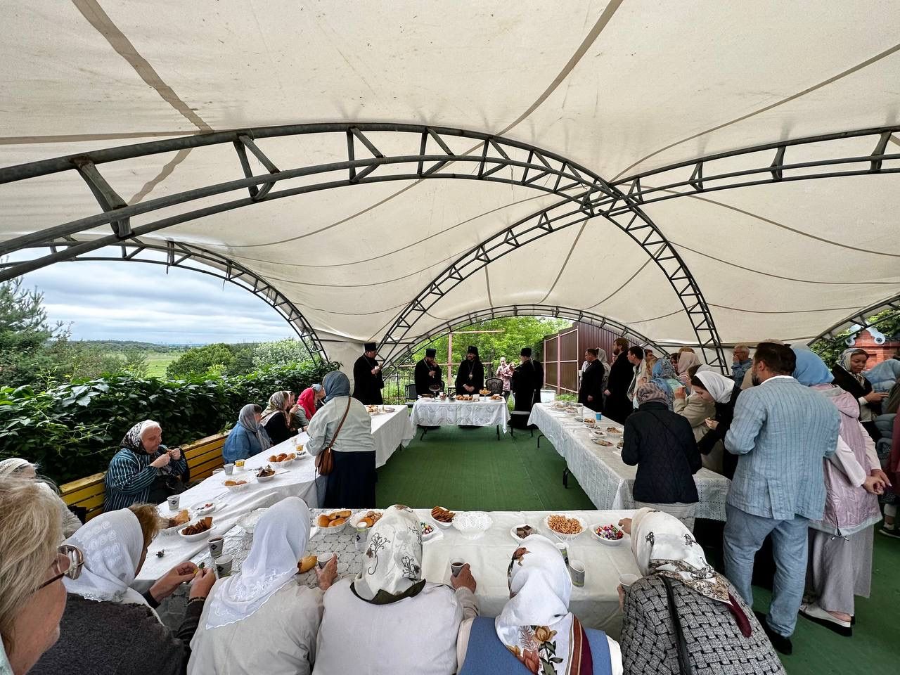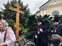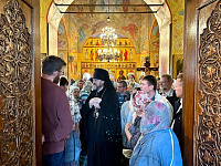 После Литургии на территории храма была организована общая трапеза, затем Владыка Фома посетил Знаменское кладбище.