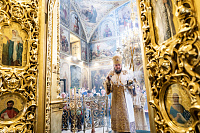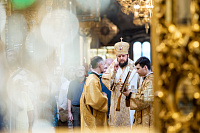 Его Высокопреосвященству сослужили клирики Троицкого собора. Богослужебные песнопения исполнил архиерейский хор под управлением Александра Веретенникова.