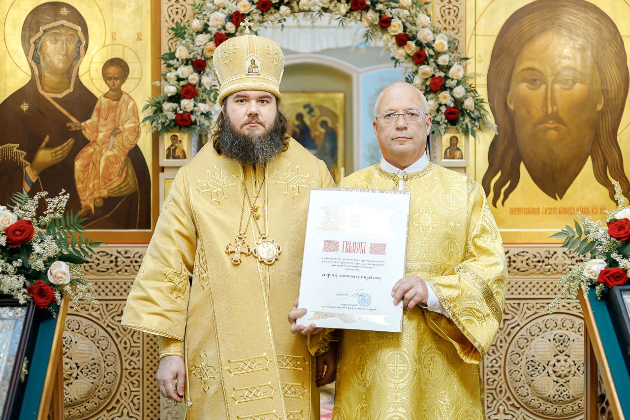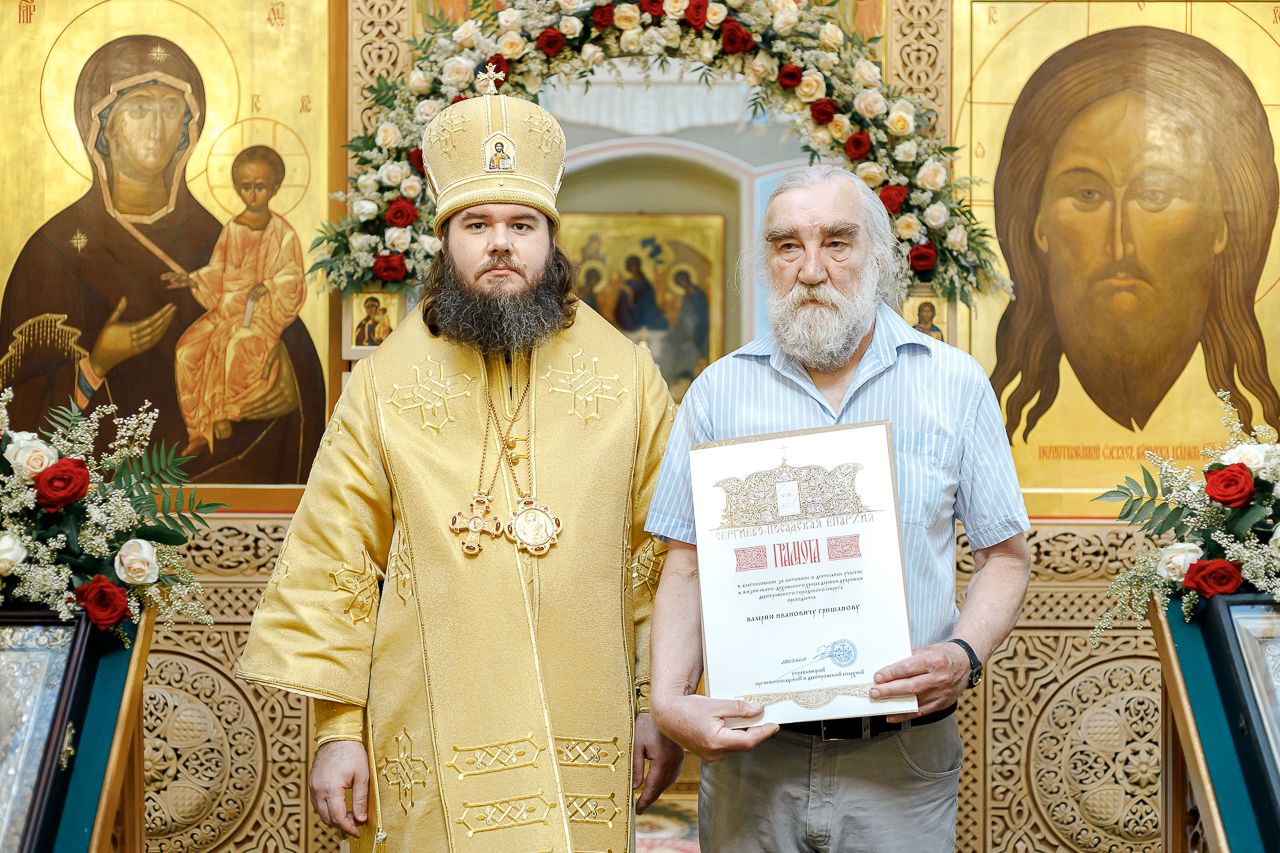 Также епископ Фома наградил грамотой Сергиево-Посадской епархии Михаила Алексеевича Михайлова, Валерия Ивановича Гришанова и Оксану Валентиновну Колупаеву.