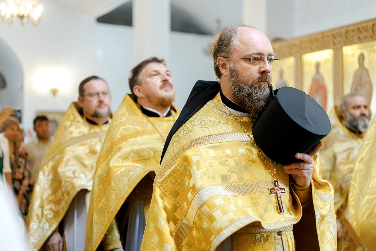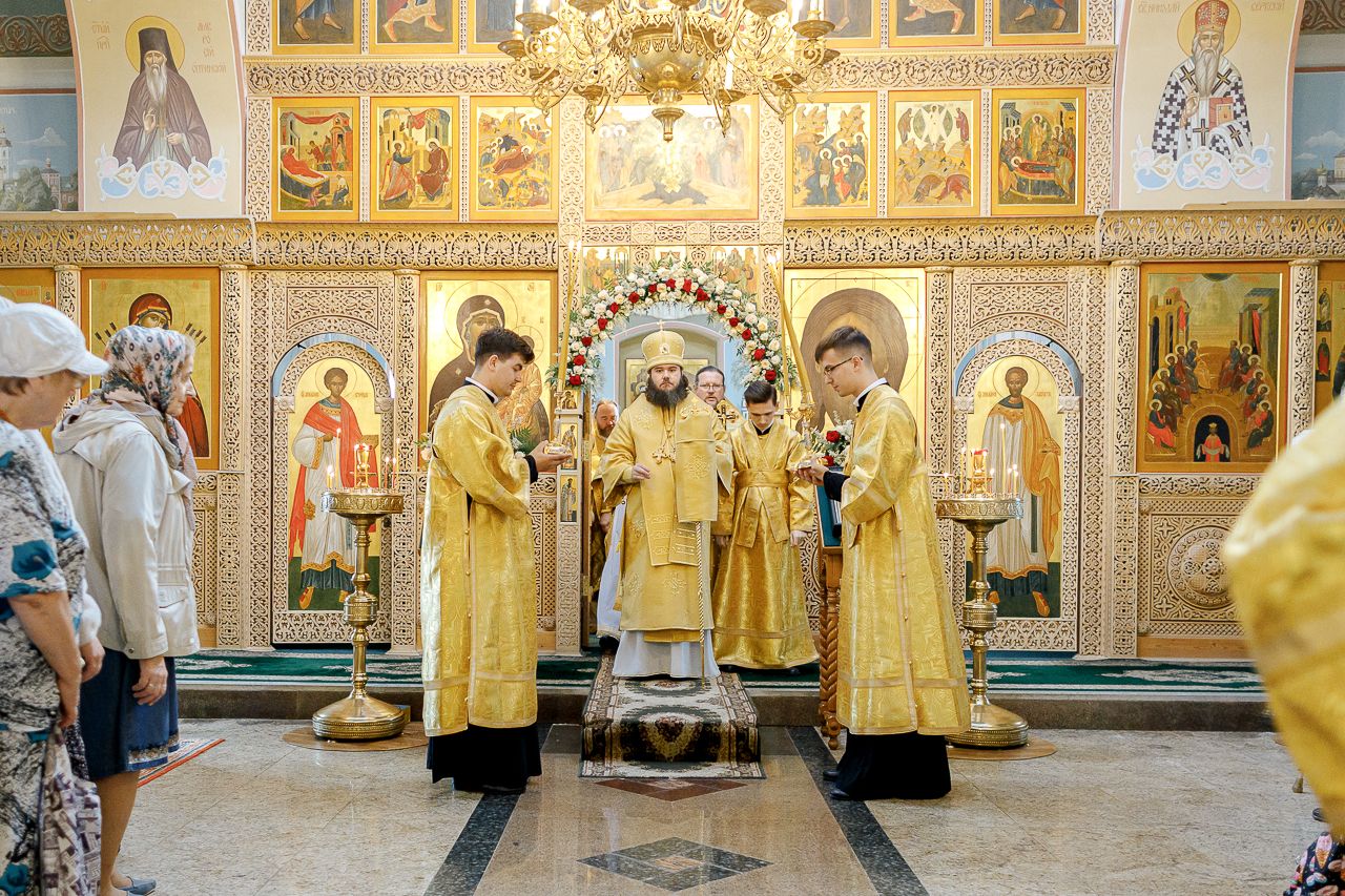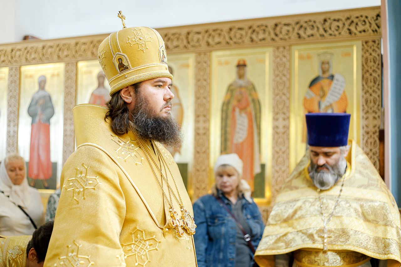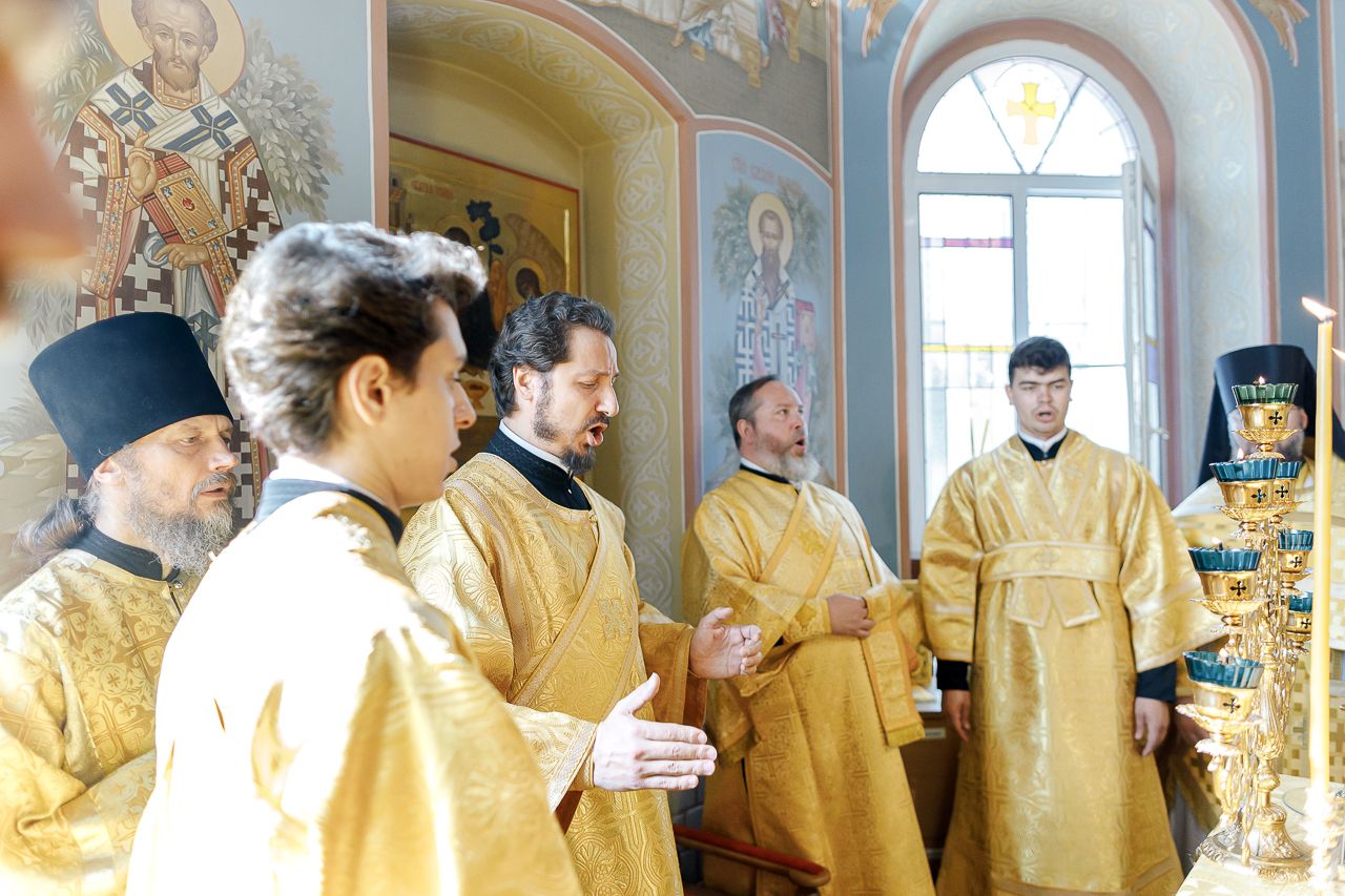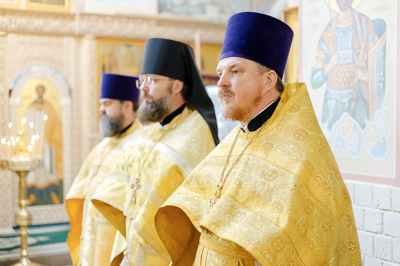 Преосвященному Владыке сослужили: Секретарь Сергиево-Посадской епархии благочинный Мытищинского церковного округа протоиерей Димитрий Оловянников, благочинный Яхромского церковного округа иерей Сергий Бернацкий, настоятель храма в честь Сошествия Святого Духа на апостолов протоиерей Димитрий Колупаев, благочинный Дмитровского церковного округа иеромонах Иосиф (Романов), благочинный Рогачевского церковного округа иерей Сергий Сафронов, наместник Борисо-Глебского мужского монастыря игумен Августин (Шорников), протоиерей Игорь Абрамов и иерей Олег Давидкевич.