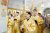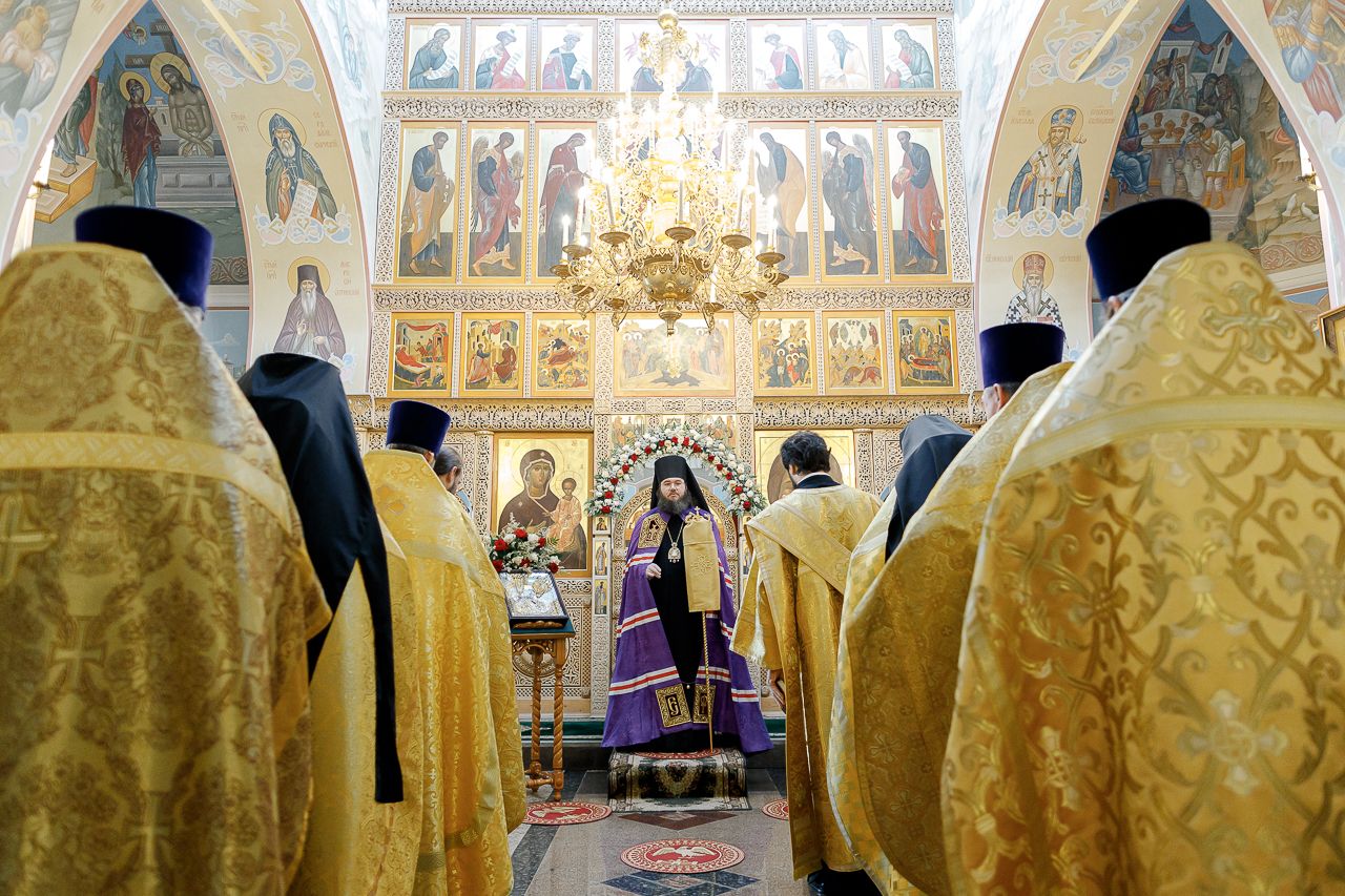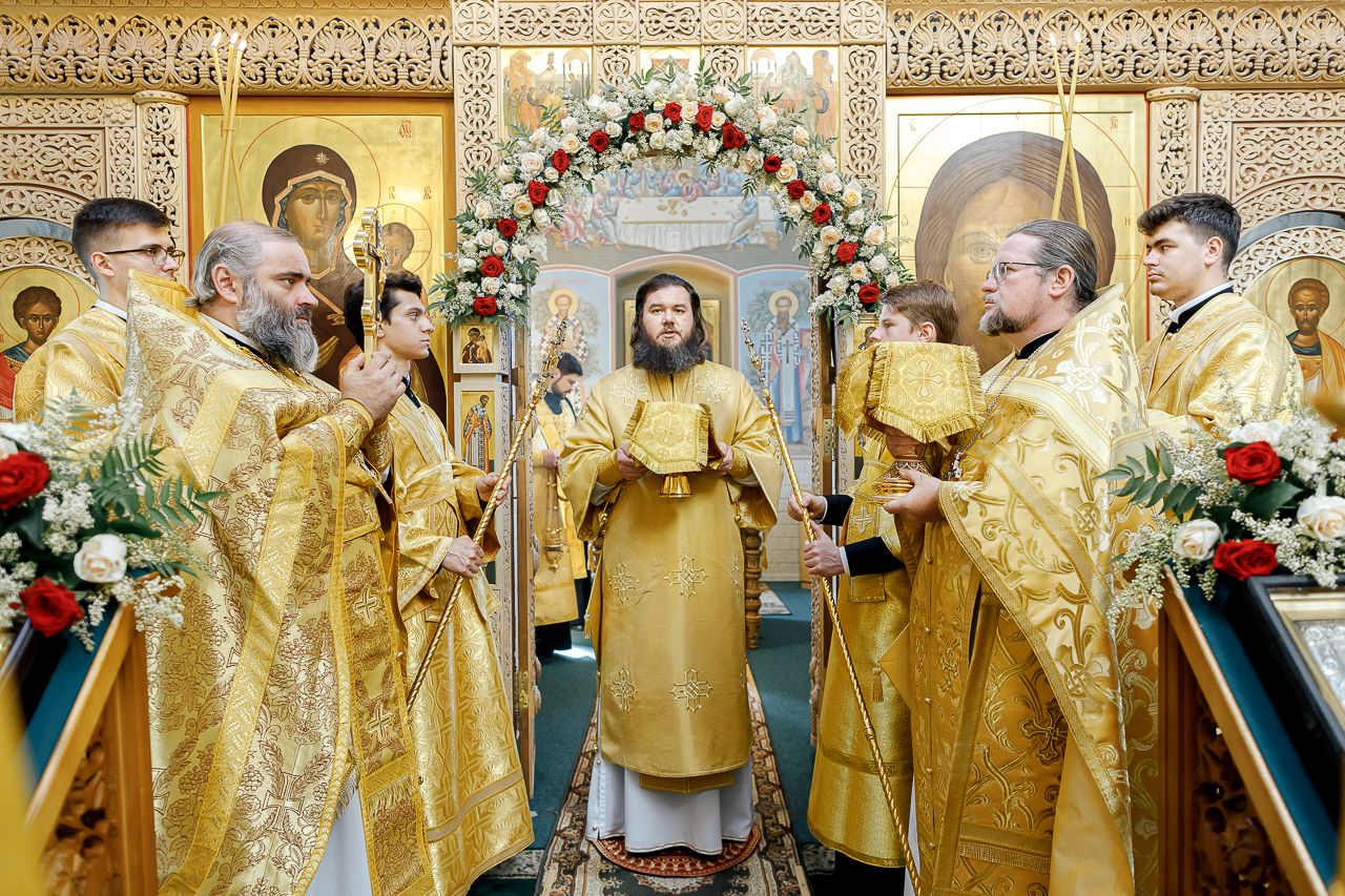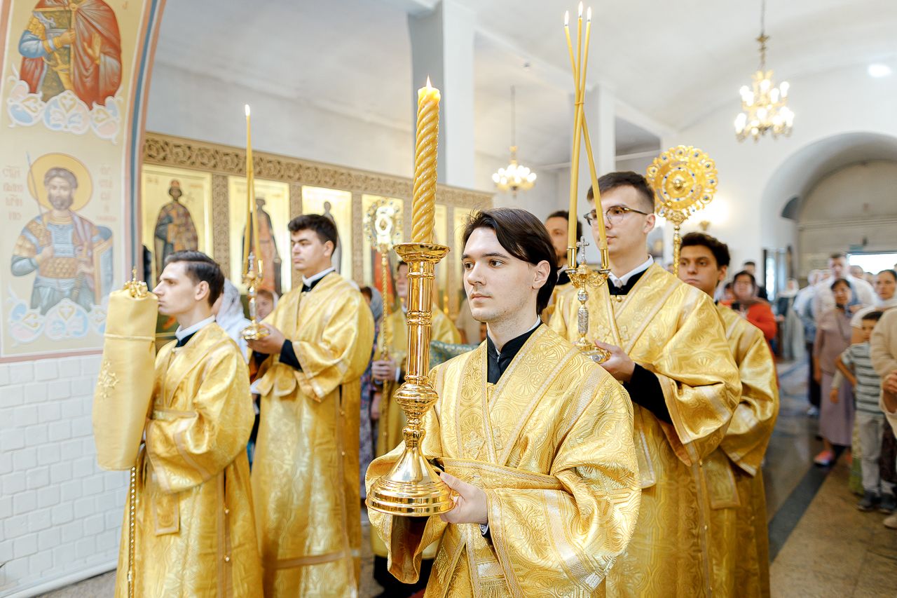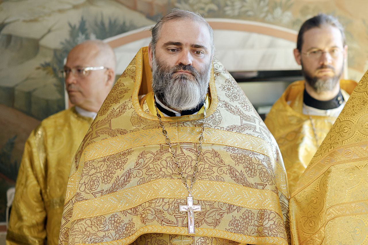Преосвященному Владыке сослужили: Секретарь Сергиево-Посадской епархии благочинный Мытищинского церковного округа протоиерей Димитрий Оловянников, благочинный Яхромского церковного округа иерей Сергий Бернацкий, настоятель храма в честь Сошествия Святого Духа на апостолов протоиерей Димитрий Колупаев, благочинный Дмитровского церковного округа иеромонах Иосиф (Романов), благочинный Рогачевского церковного округа иерей Сергий Сафронов, наместник Борисо-Глебского мужского монастыря игумен Августин (Шорников), протоиерей Игорь Абрамов и иерей Олег Давидкевич.