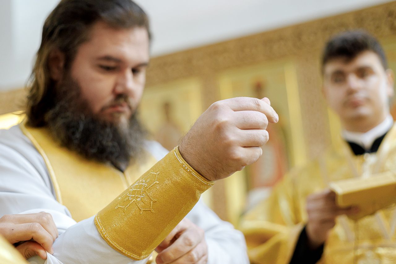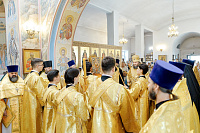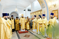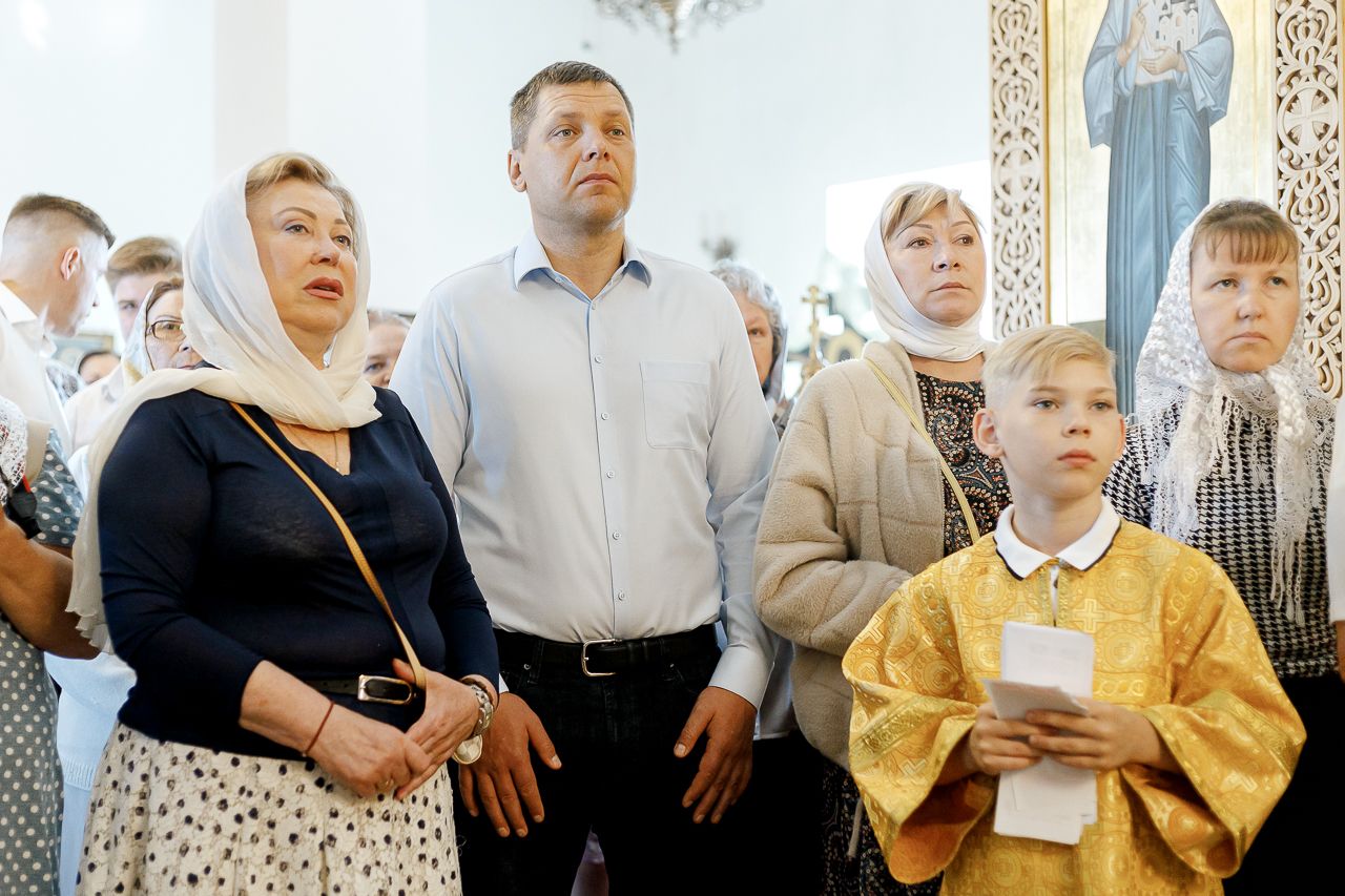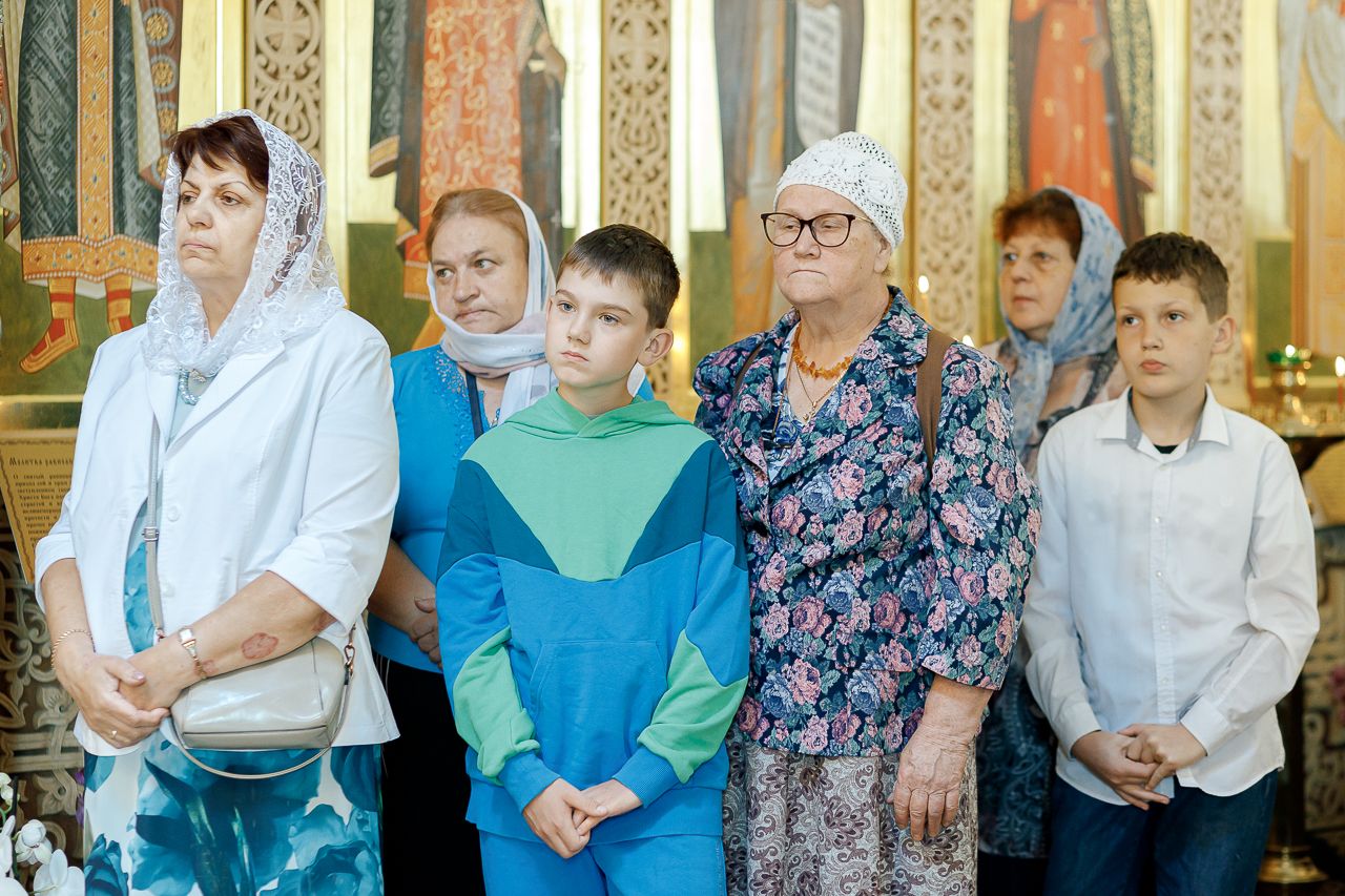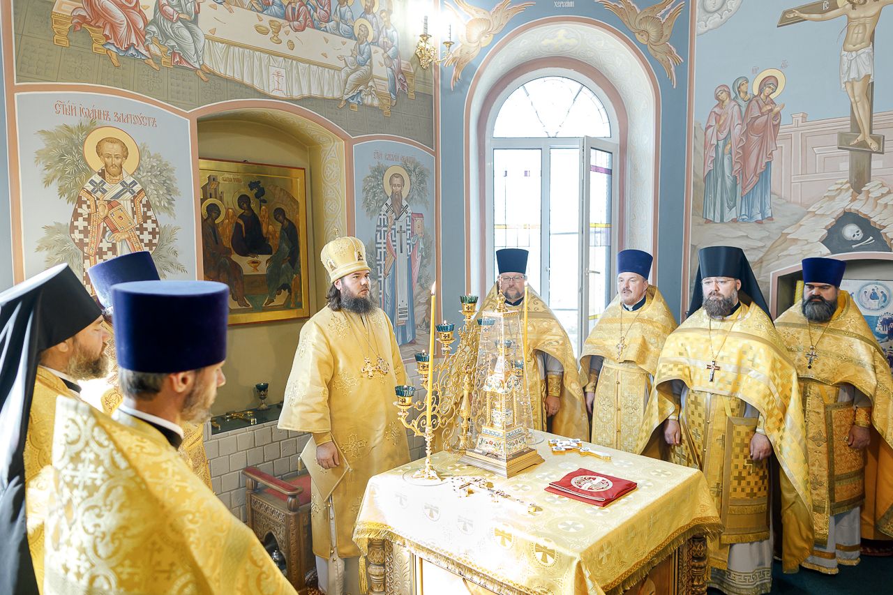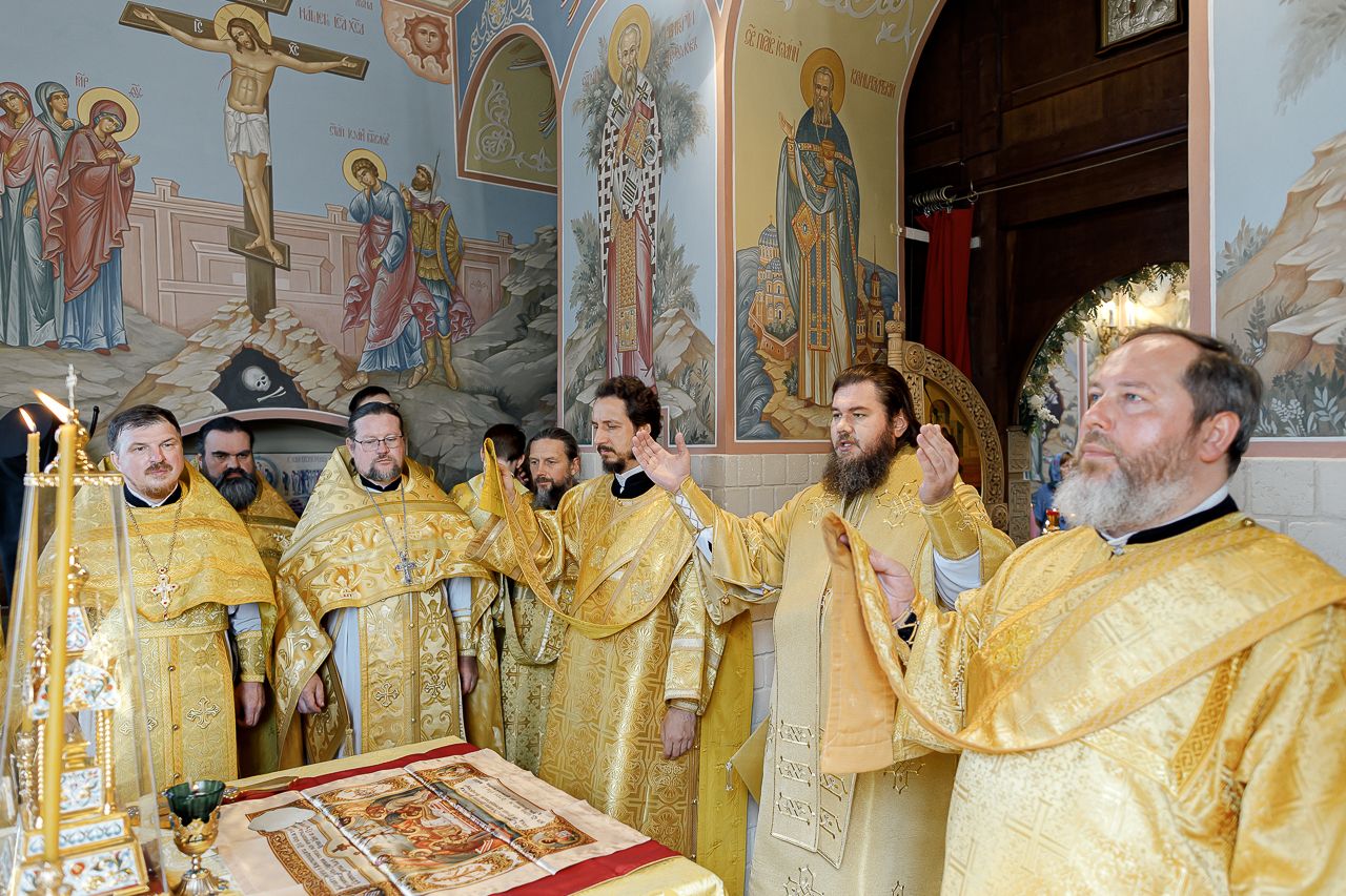 Преосвященному Владыке сослужили: Секретарь Сергиево-Посадской епархии благочинный Мытищинского церковного округа протоиерей Димитрий Оловянников, благочинный Яхромского церковного округа иерей Сергий Бернацкий, настоятель храма в честь Сошествия Святого Духа на апостолов протоиерей Димитрий Колупаев, благочинный Дмитровского церковного округа иеромонах Иосиф (Романов), благочинный Рогачевского церковного округа иерей Сергий Сафронов, наместник Борисо-Глебского мужского монастыря игумен Августин (Шорников), протоиерей Игорь Абрамов и иерей Олег Давидкевич.