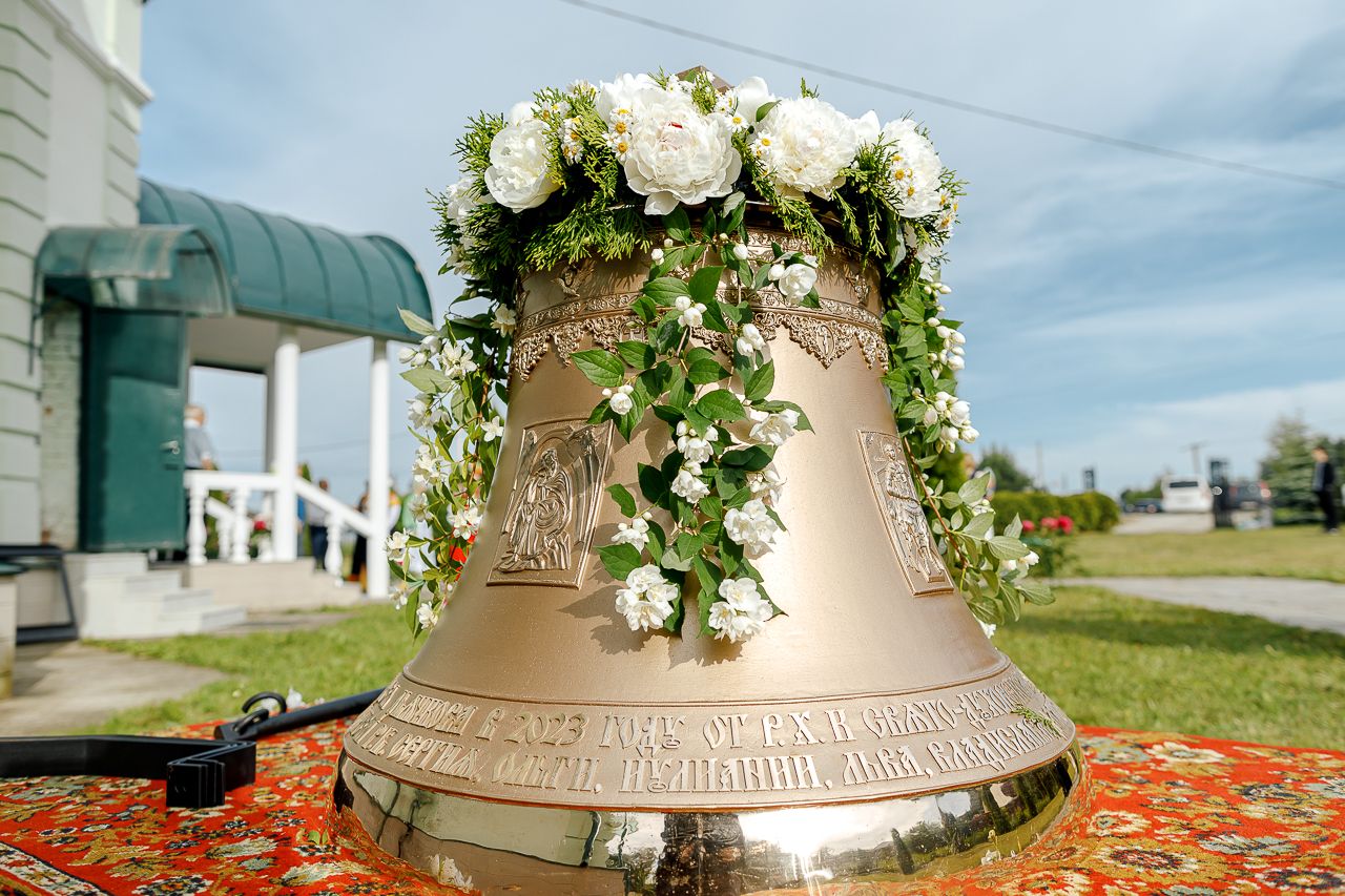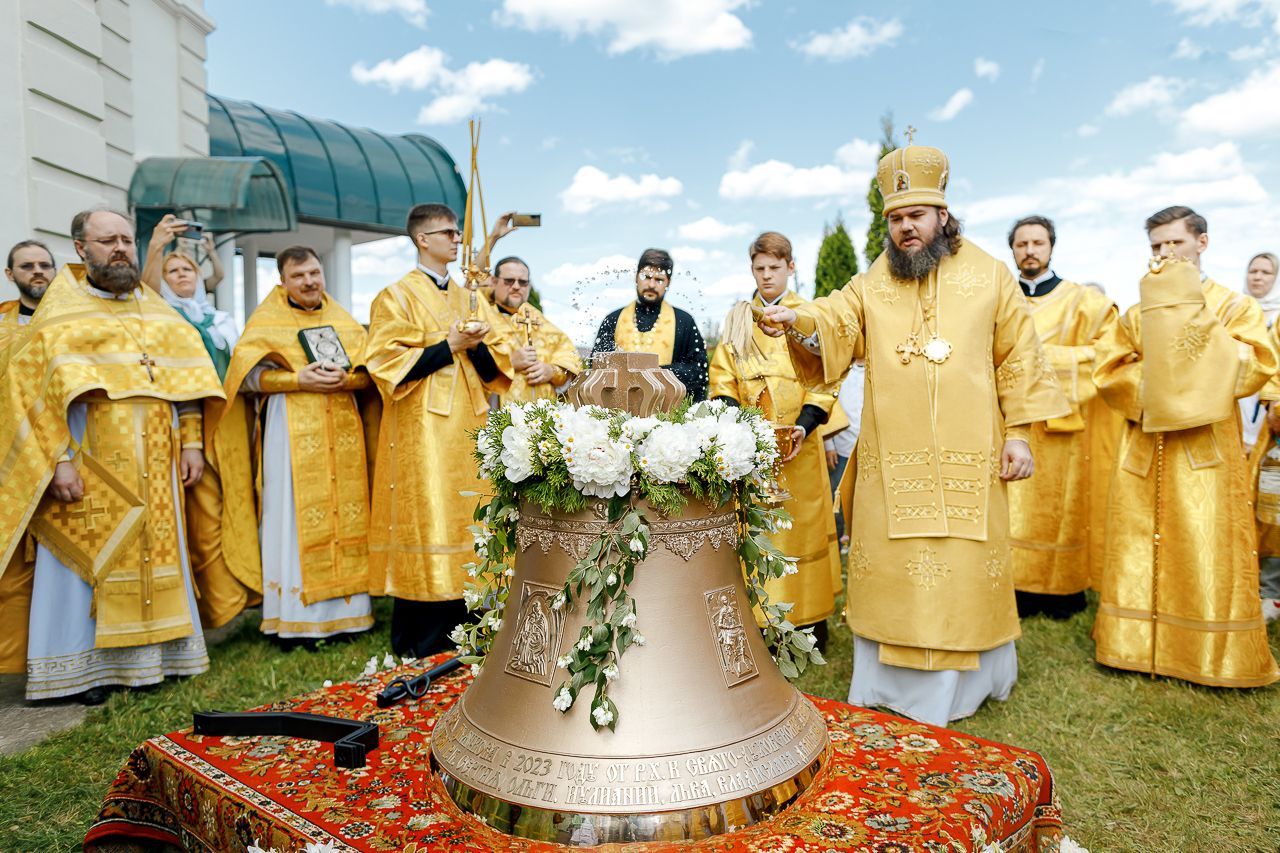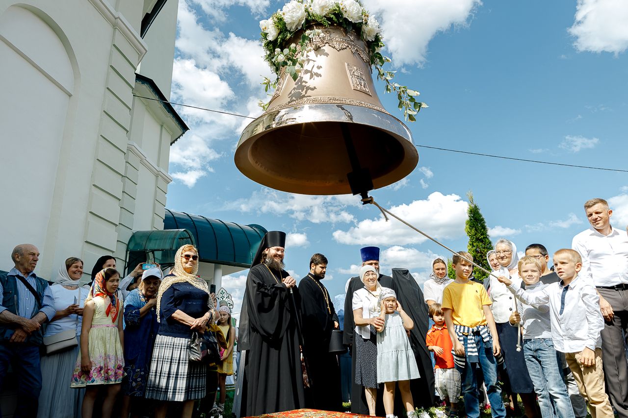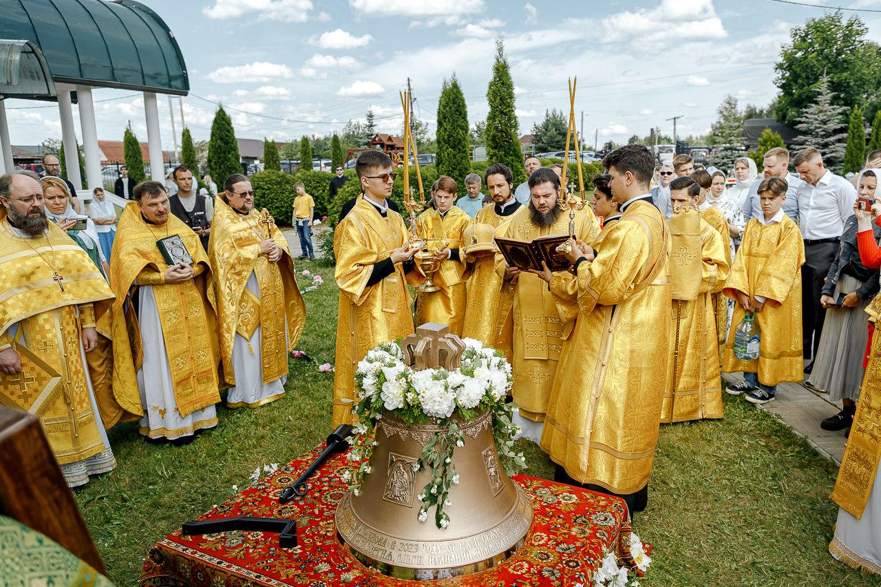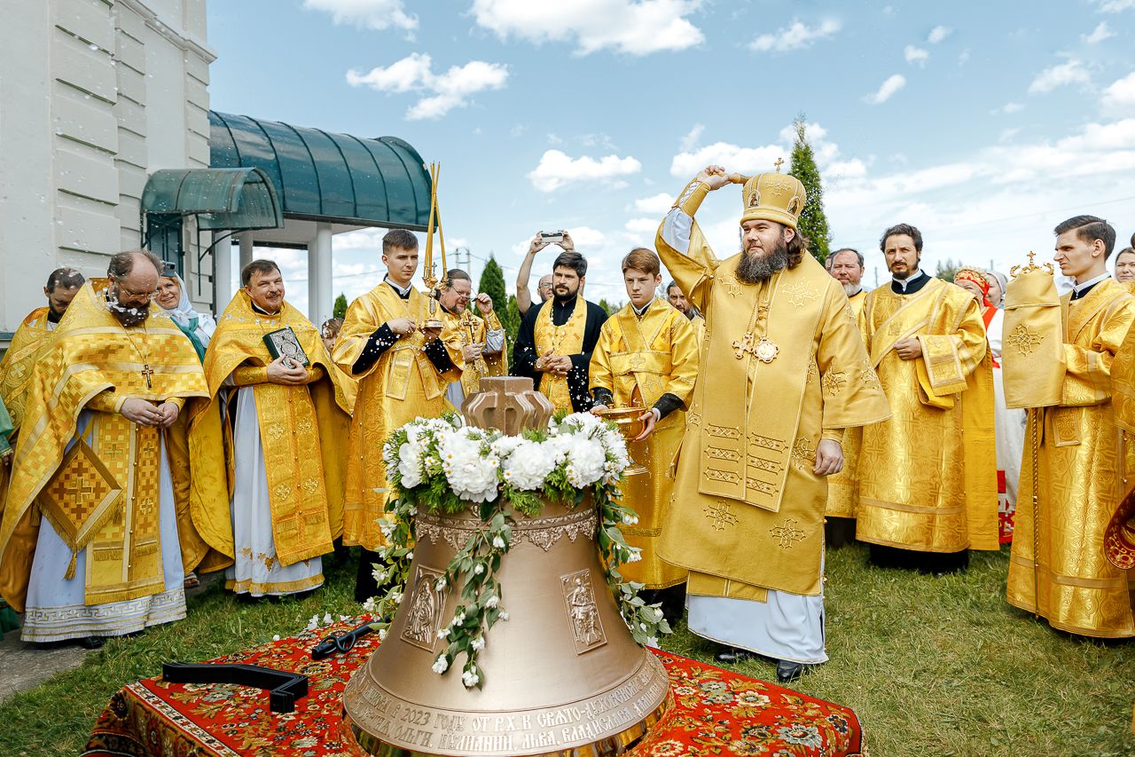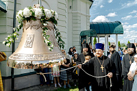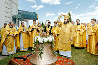 После Литургии Владыка совершил крестный ход вокруг храма и освятил новый 400-килограммовый колокол для колокольни.