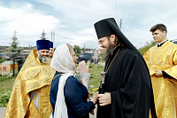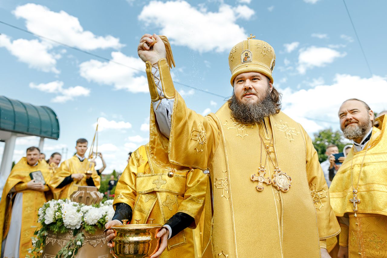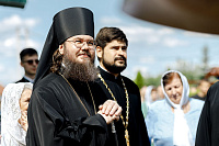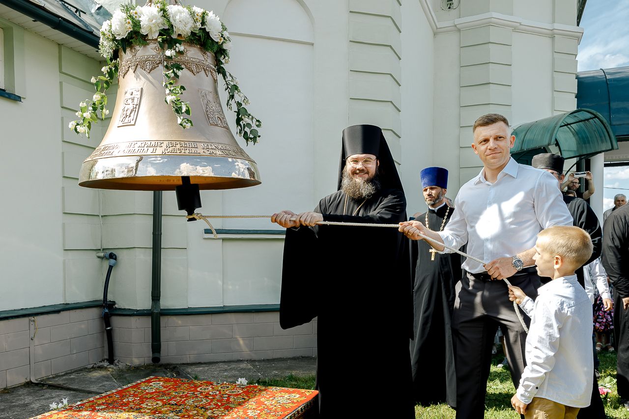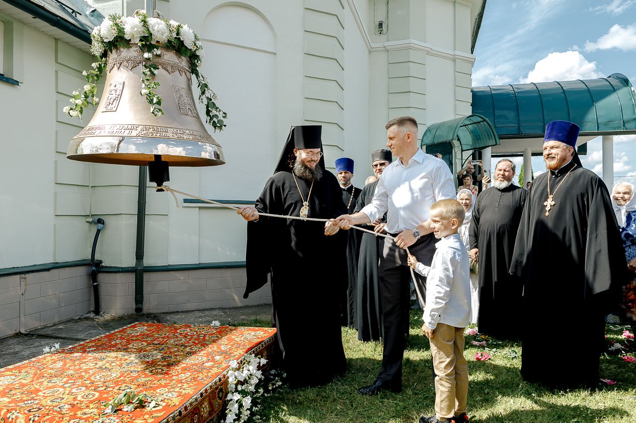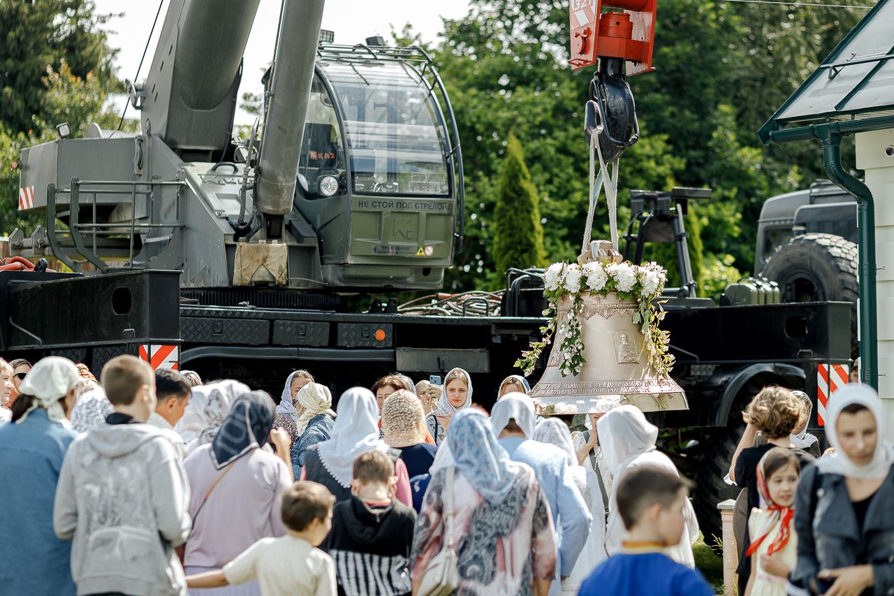 После Литургии Владыка совершил крестный ход вокруг храма и освятил новый 400-килограммовый колокол для колокольни.