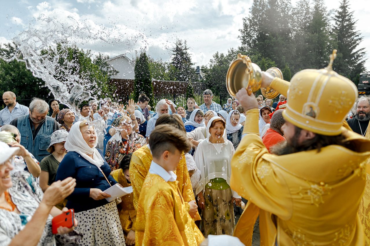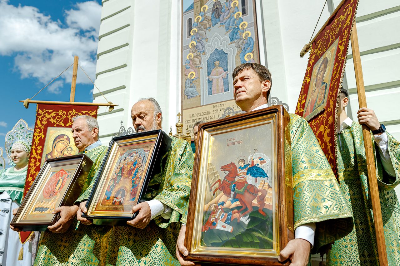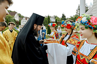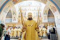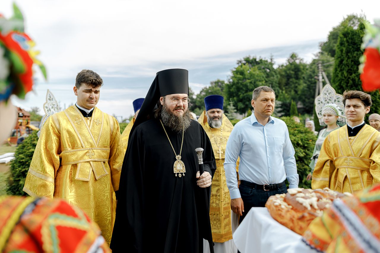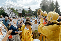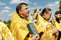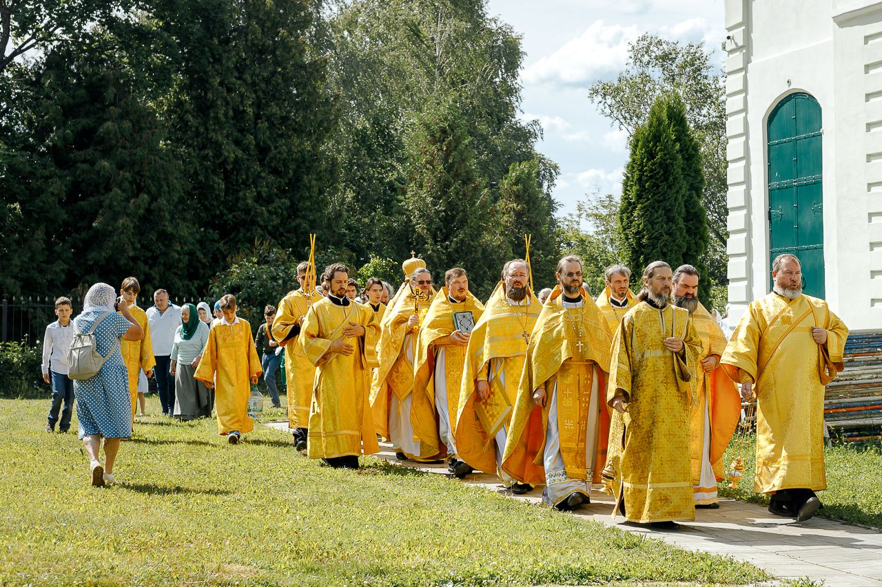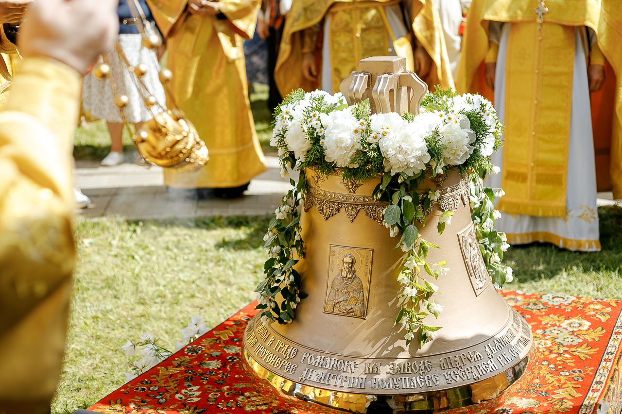 После Литургии Владыка совершил крестный ход вокруг храма и освятил новый 400-килограммовый колокол для колокольни.