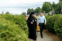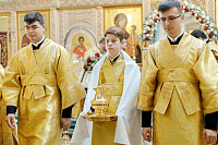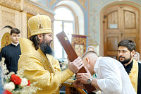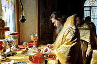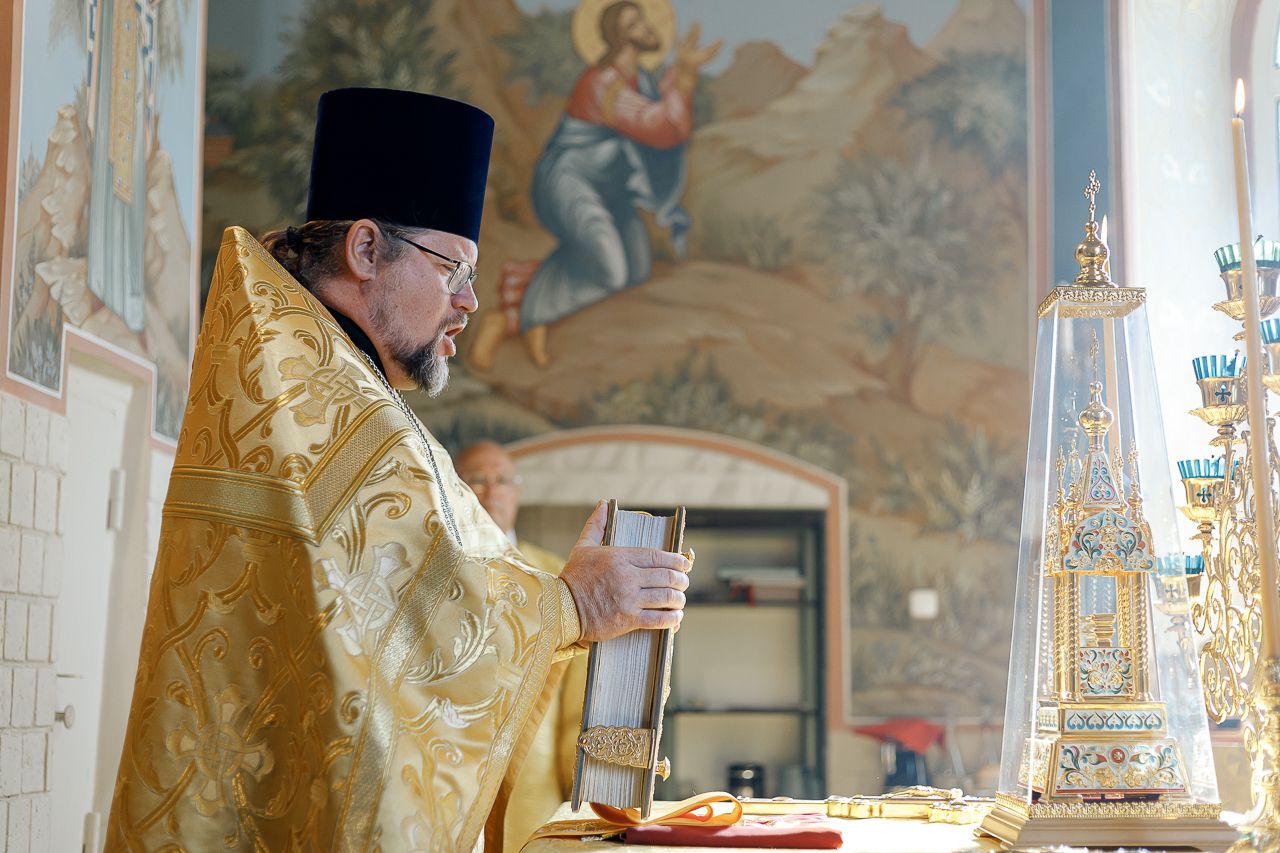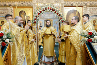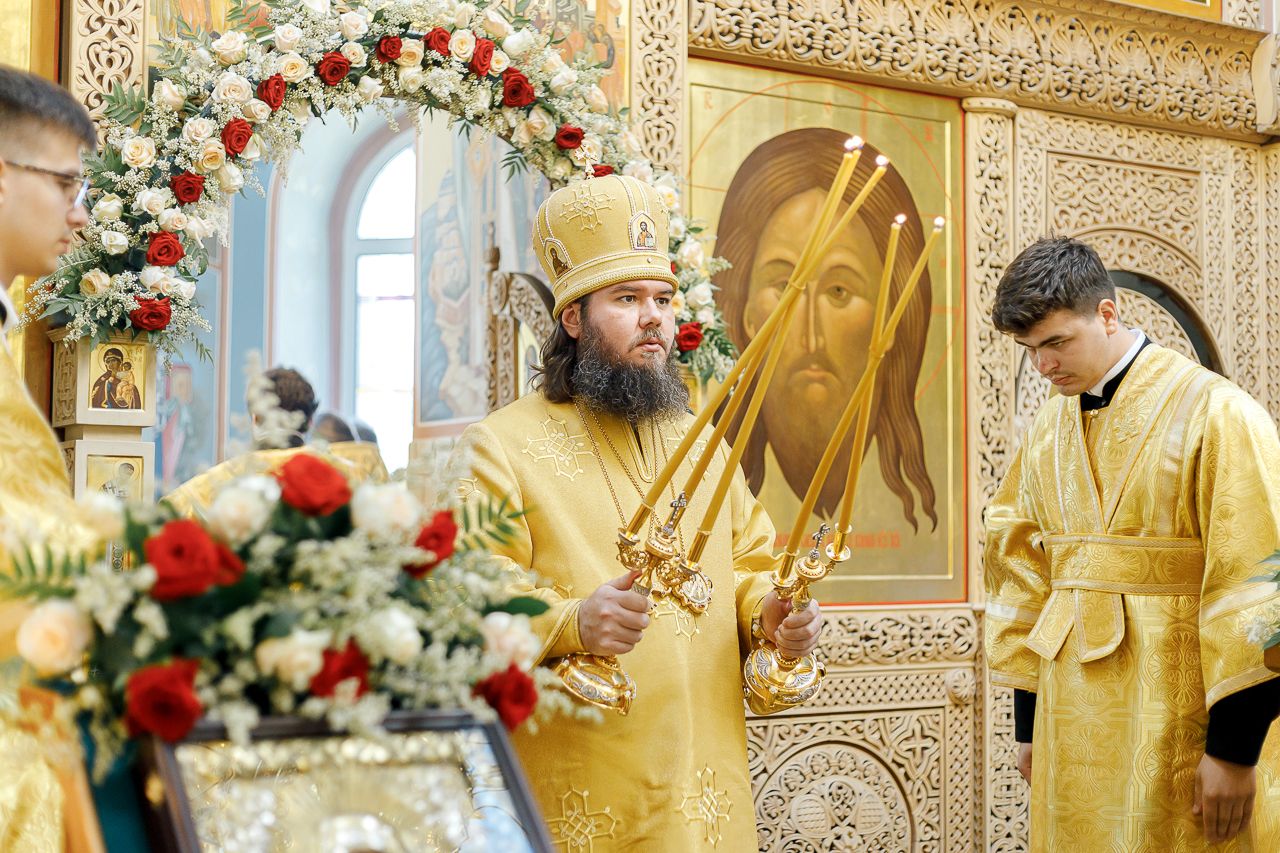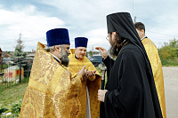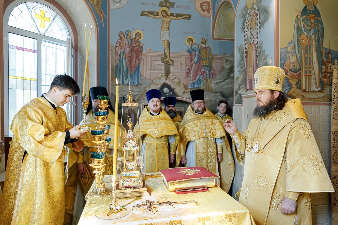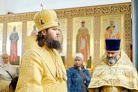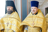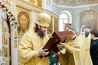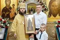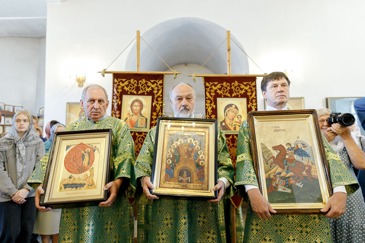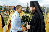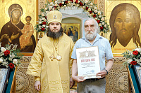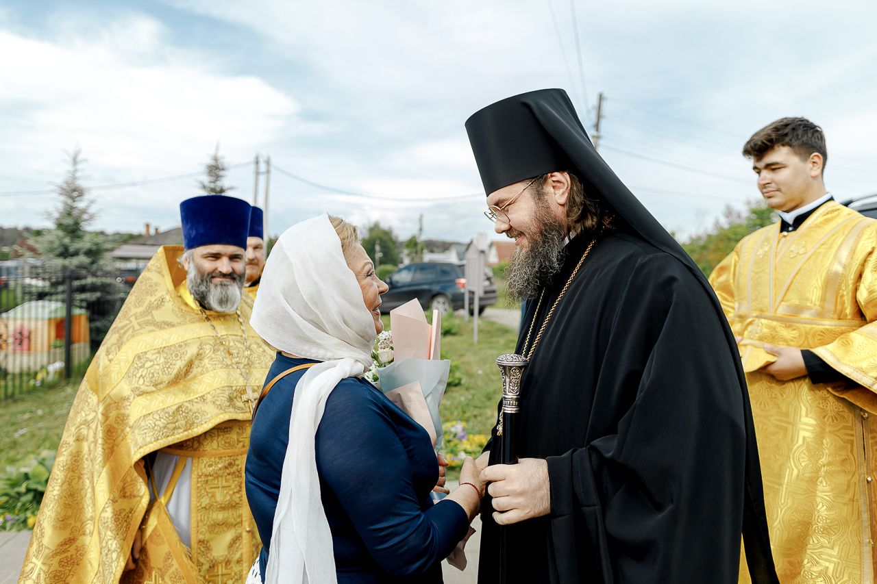 В конце богослужения настоятель храма поблагодарил епископа Фому за архипастырский визит и вручил на молитвенную память икону Божией Матери «Достойно есть». В ответном слове Владыка поблагодарил протоиерея Димитрия за совместное богослужение, а затем передал ктитору храма Сергею Владимировичу Гусеву икону преподобного Сергия Радонежского.