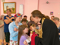 После Причастия детей отец Иоанн побеседовал с их родителями.
