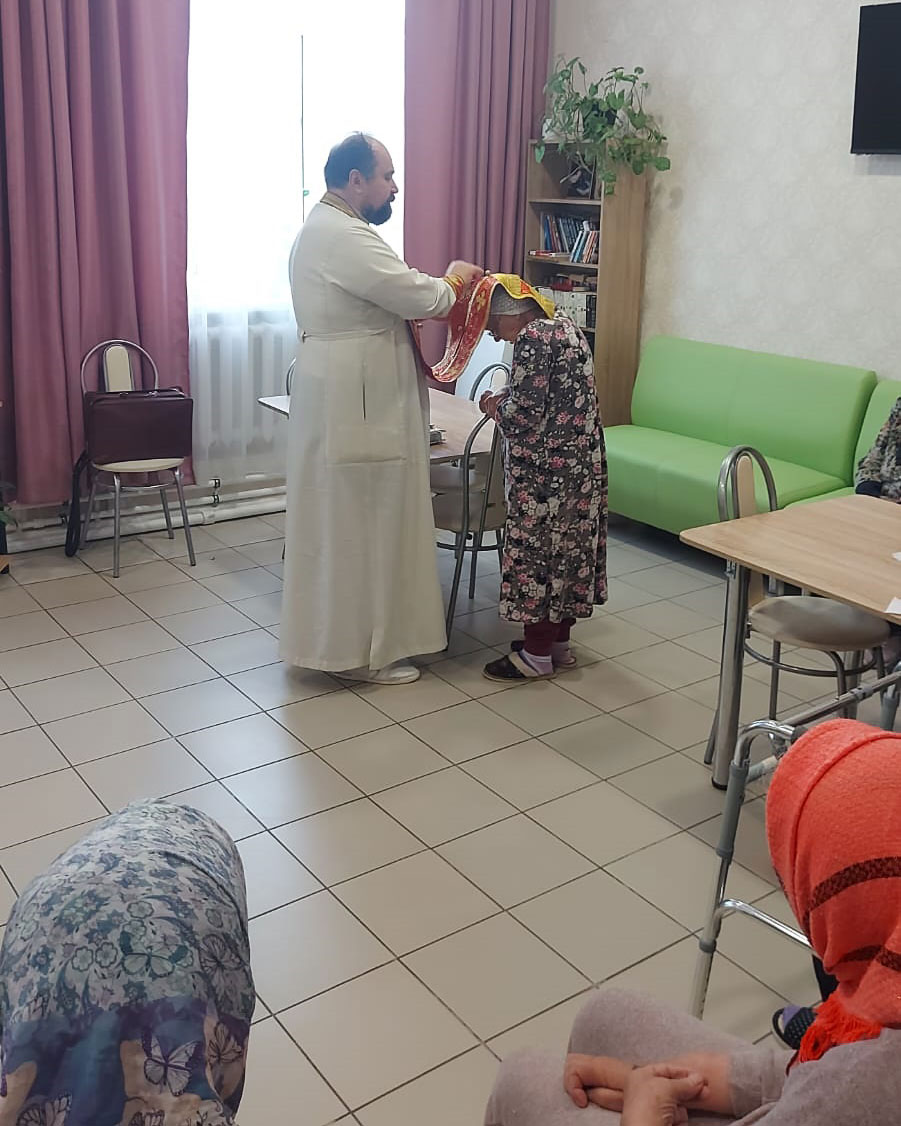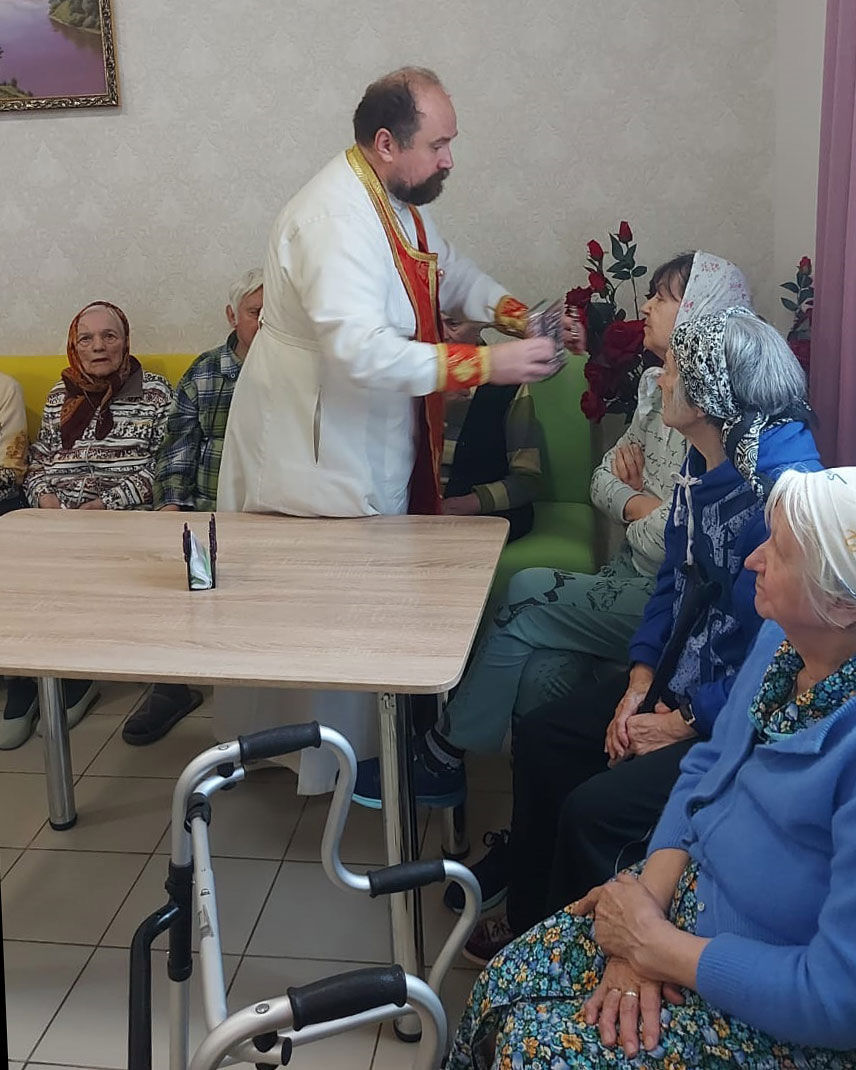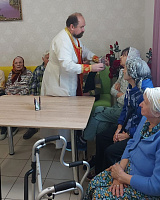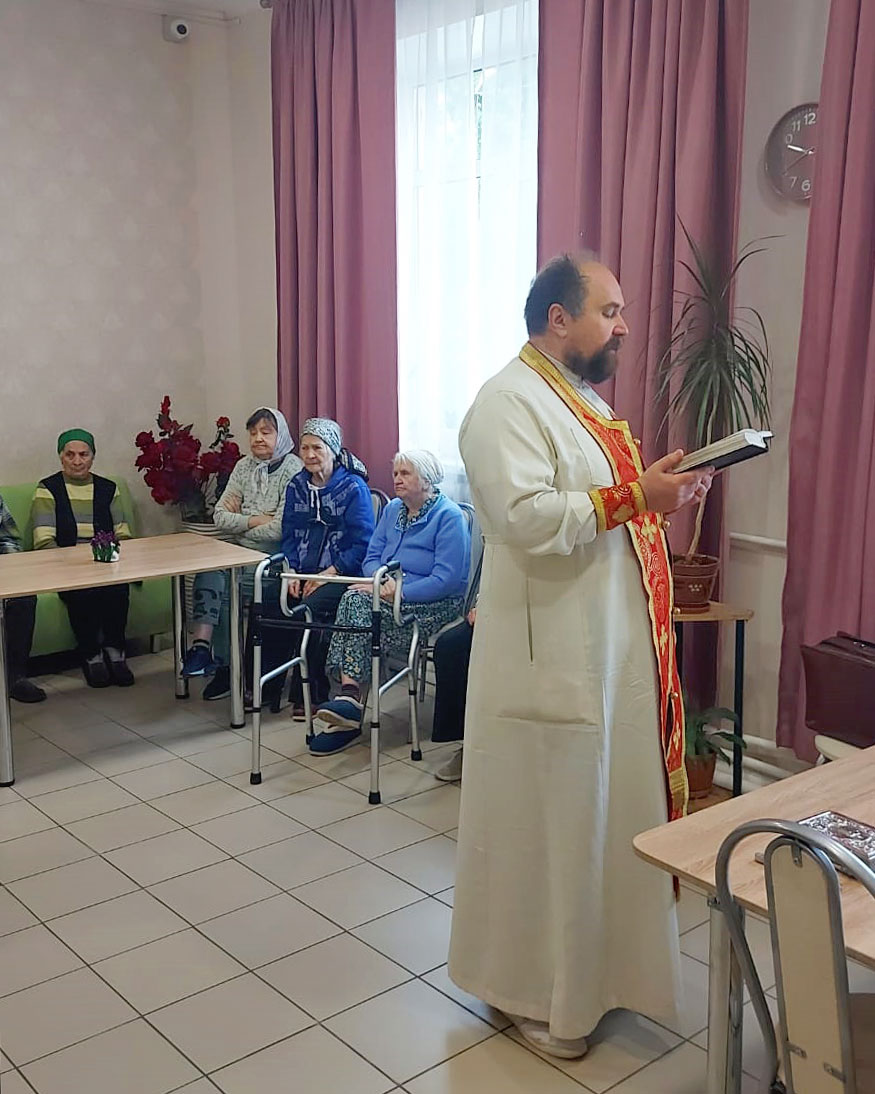 30 июня настоятель Серафимовского храма г. Королёва протоиерей Александр Бекещенко и священник Даниил Акимов навестили постояльцев ГБСУ СО МО «Королёвский дом‑интернат для престарелых и инвалидов «Дом ветеранов».