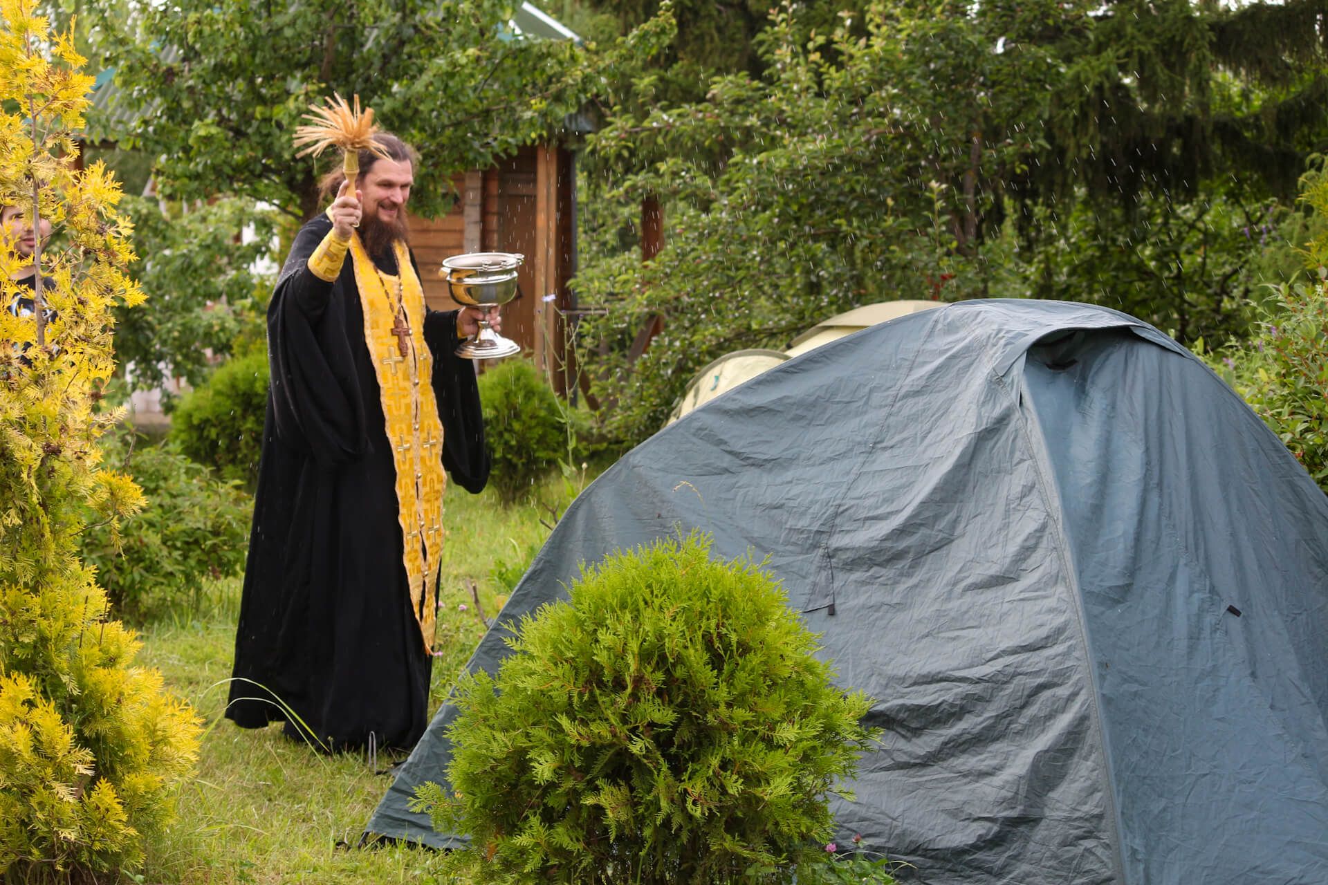 Благочинный протоиерей Сергий Рыбаков и настоятель Ильинского храма протоиерей Михаил Пшеничный совершил молебен перед началом всякого дела. В знак благословения окропили детей, организаторов и палаточный городок святой водой.