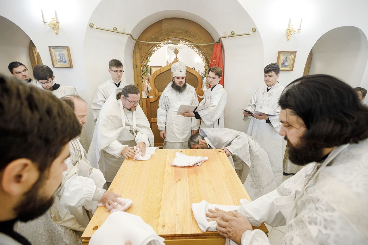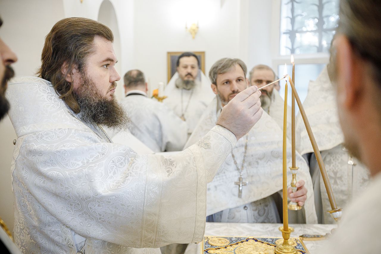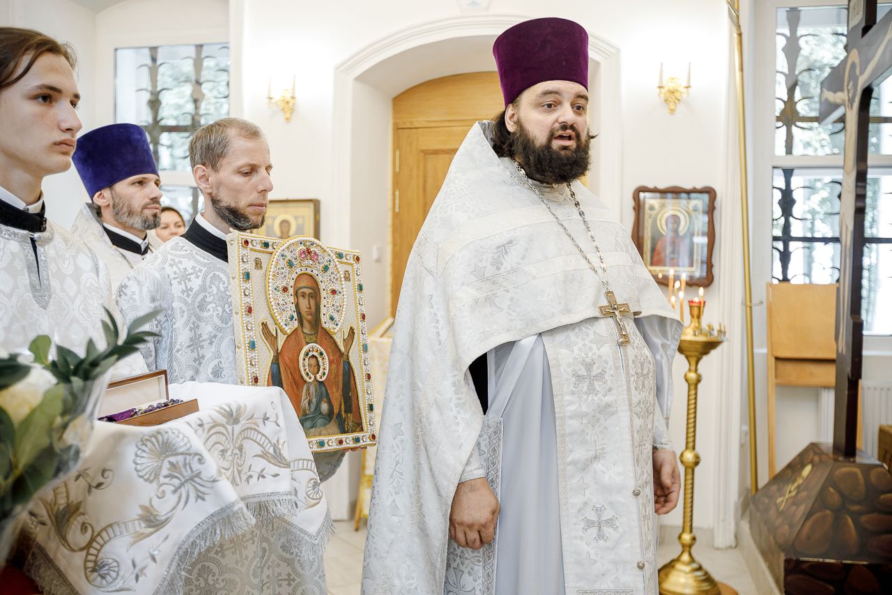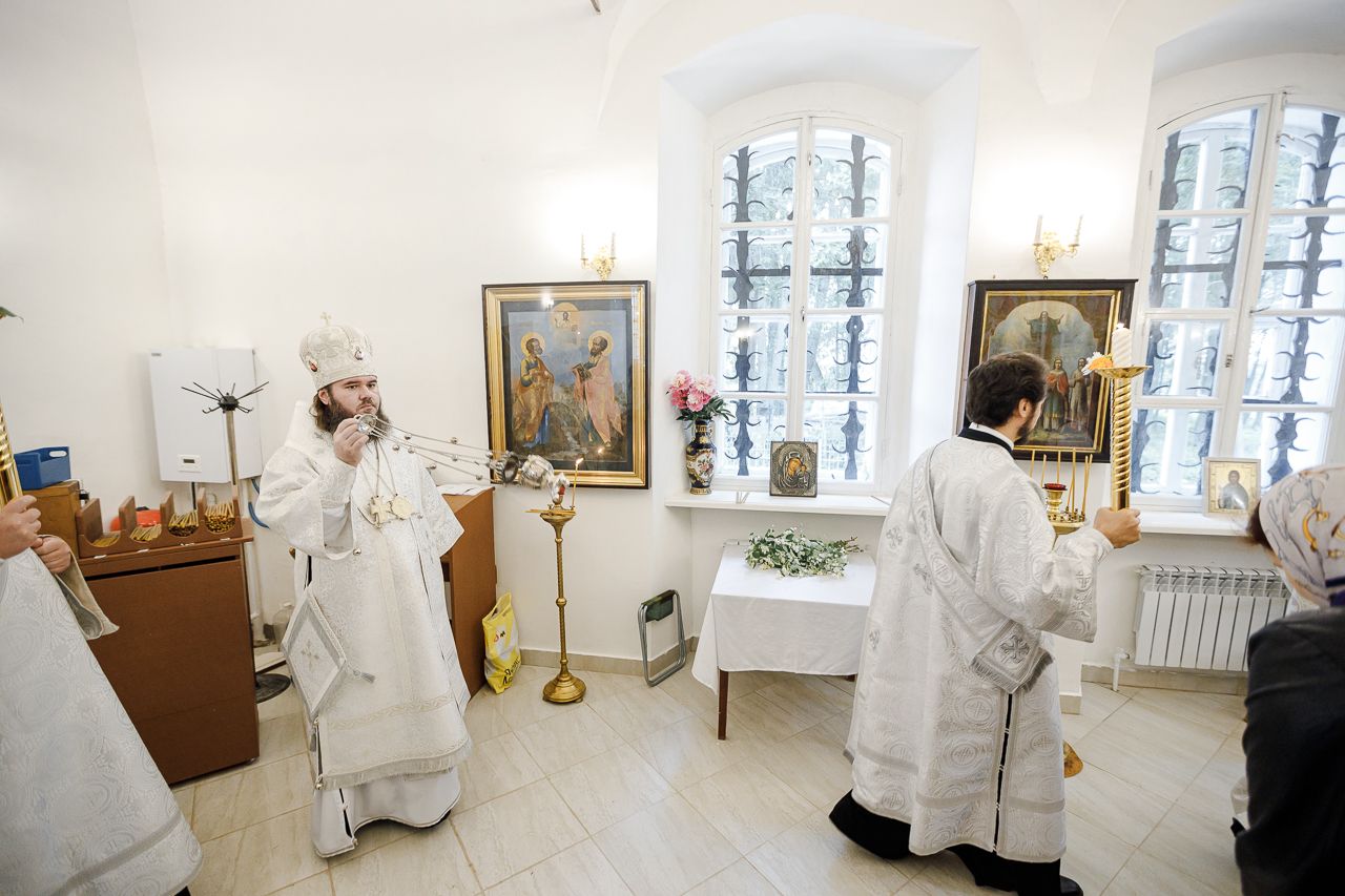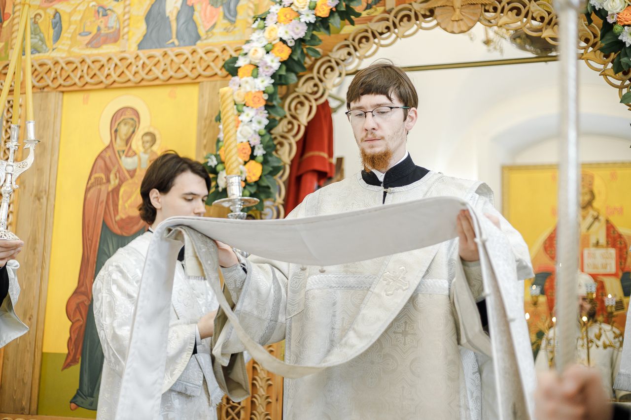 Его Преосвященству сослужили: Секретарь Сергиево-Посадской епархии благочинный Мытищинского церковного округа протоиерей Димитрий Оловянников, благочинный Рогачевского церковного округа иерей Сергий Сафронов, благочинный Долгопрудненского церковного округа протоиерей Андрей Хмызов, благочинный Химкинского церковного округа протоиерей Артемий Гранкин, благочинный Яхромского церковного округа иерей Сергий Бернацкий, настоятель храма в честь иконы Божией Матери «Знамение» иерей Дионисий Хропот и приглашенное духовенство.