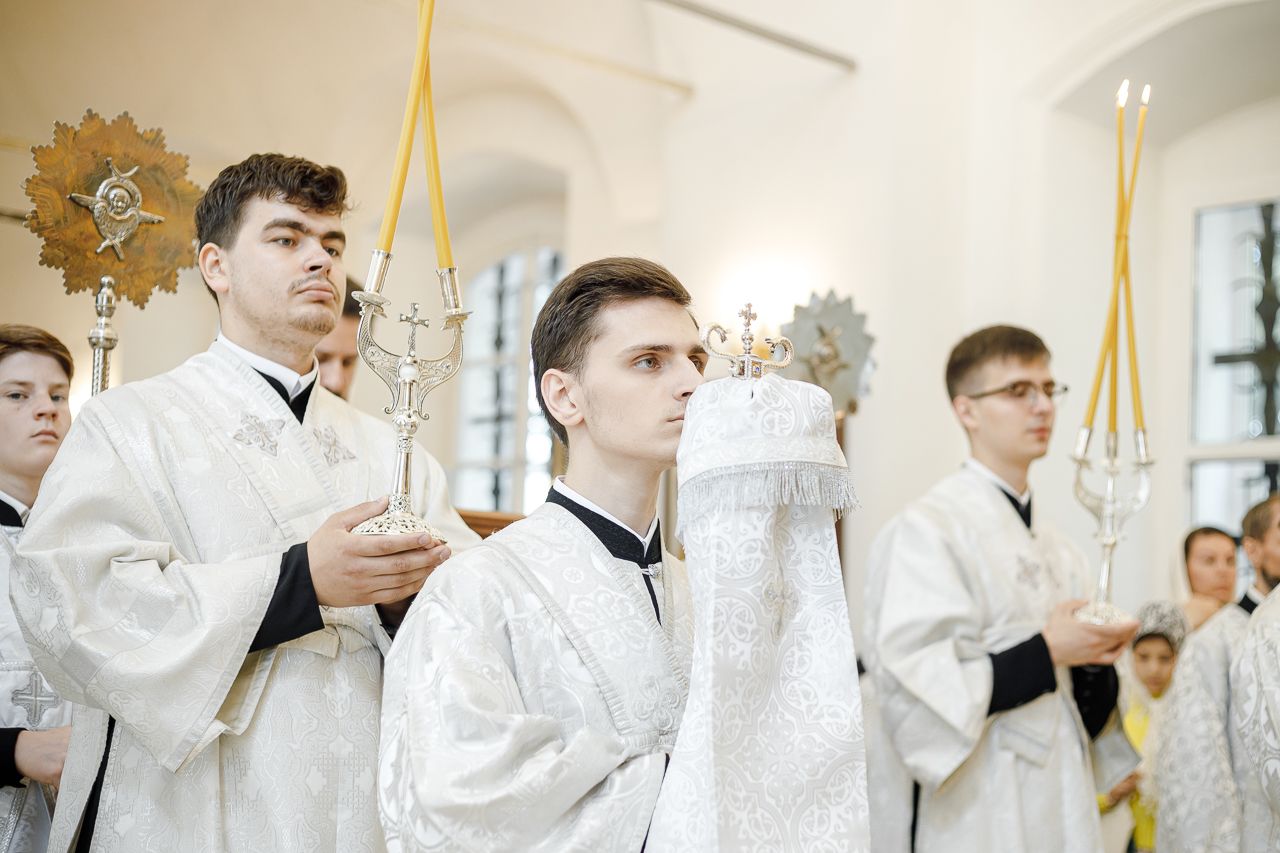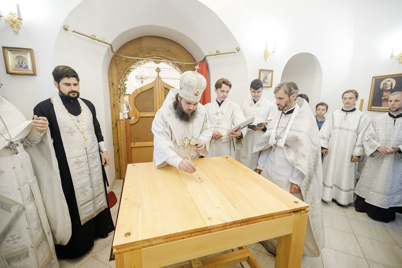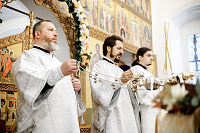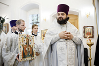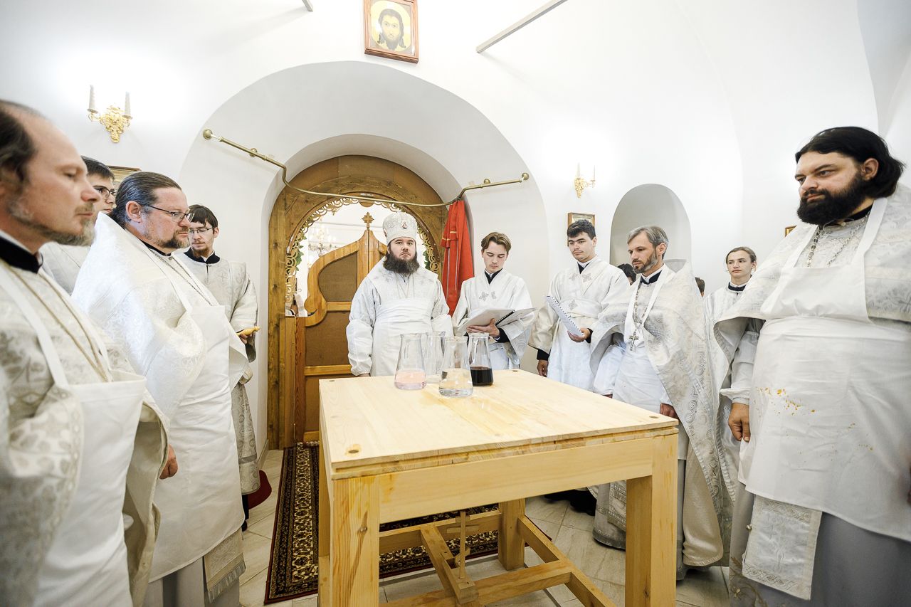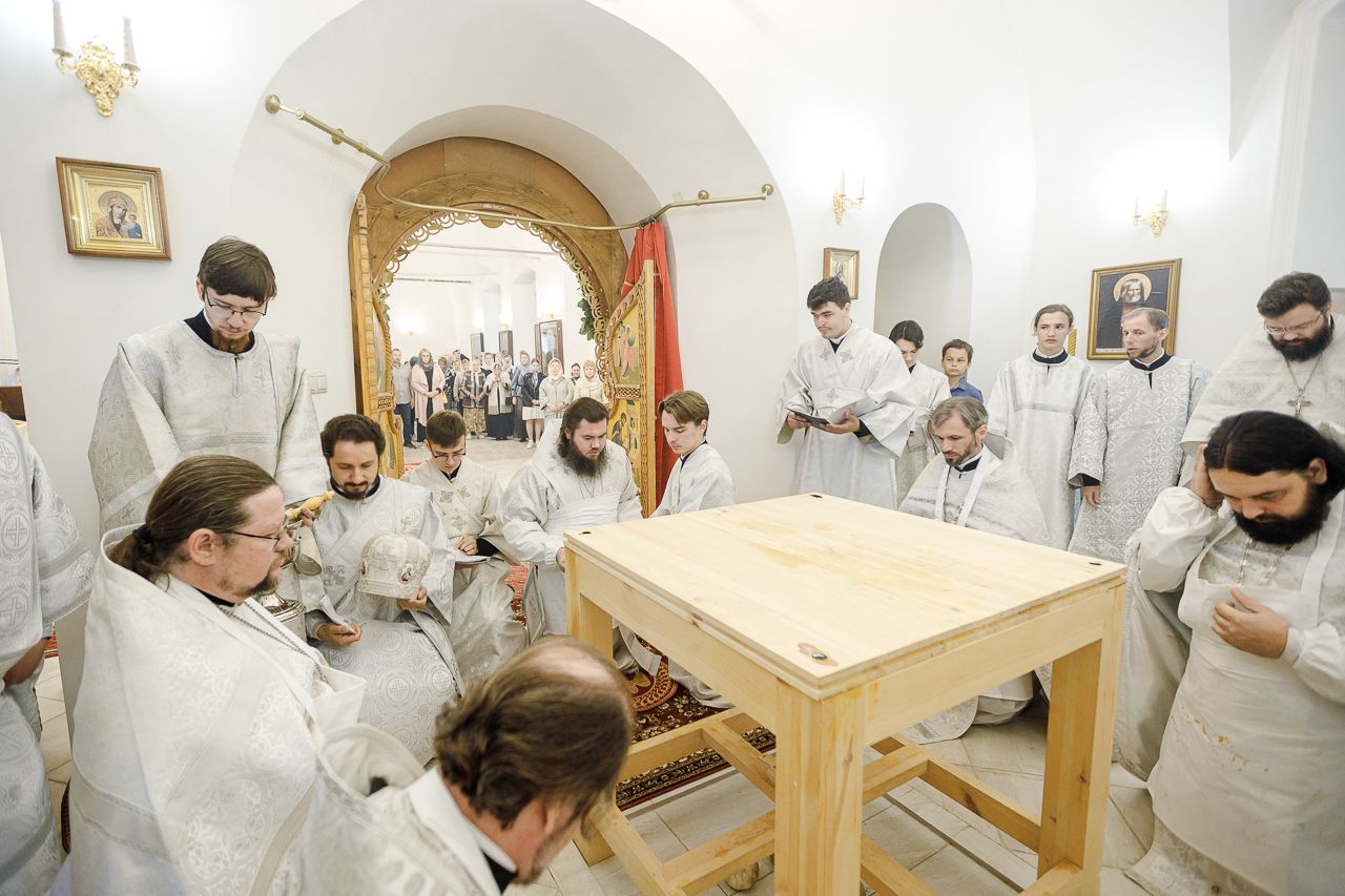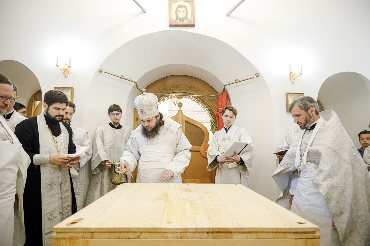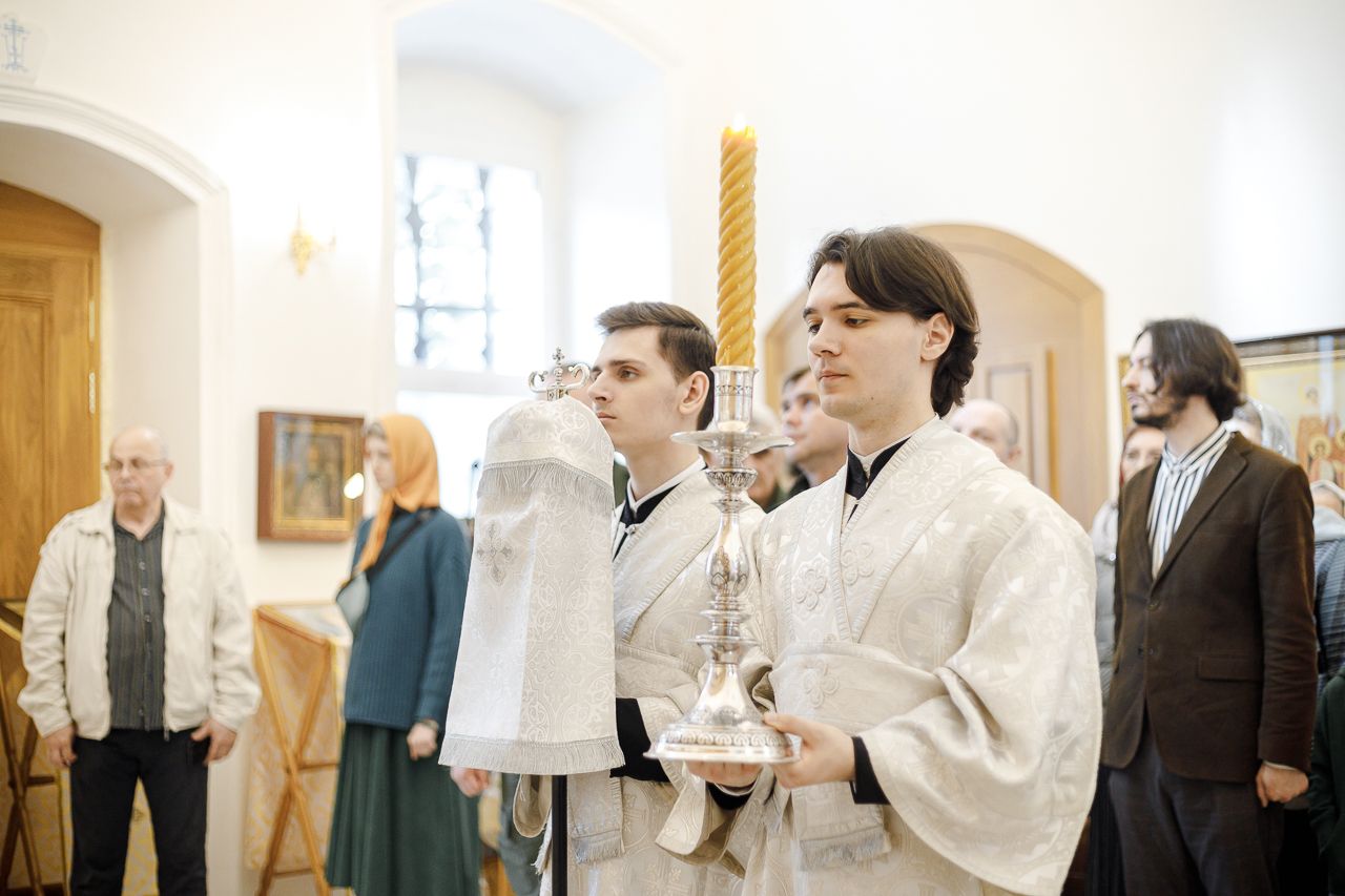 Его Преосвященству сослужили: Секретарь Сергиево-Посадской епархии благочинный Мытищинского церковного округа протоиерей Димитрий Оловянников, благочинный Рогачевского церковного округа иерей Сергий Сафронов, благочинный Долгопрудненского церковного округа протоиерей Андрей Хмызов, благочинный Химкинского церковного округа протоиерей Артемий Гранкин, благочинный Яхромского церковного округа иерей Сергий Бернацкий, настоятель храма в честь иконы Божией Матери «Знамение» иерей Дионисий Хропот и приглашенное духовенство.