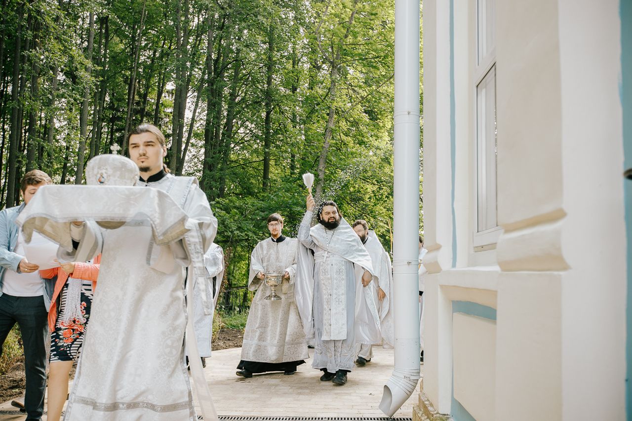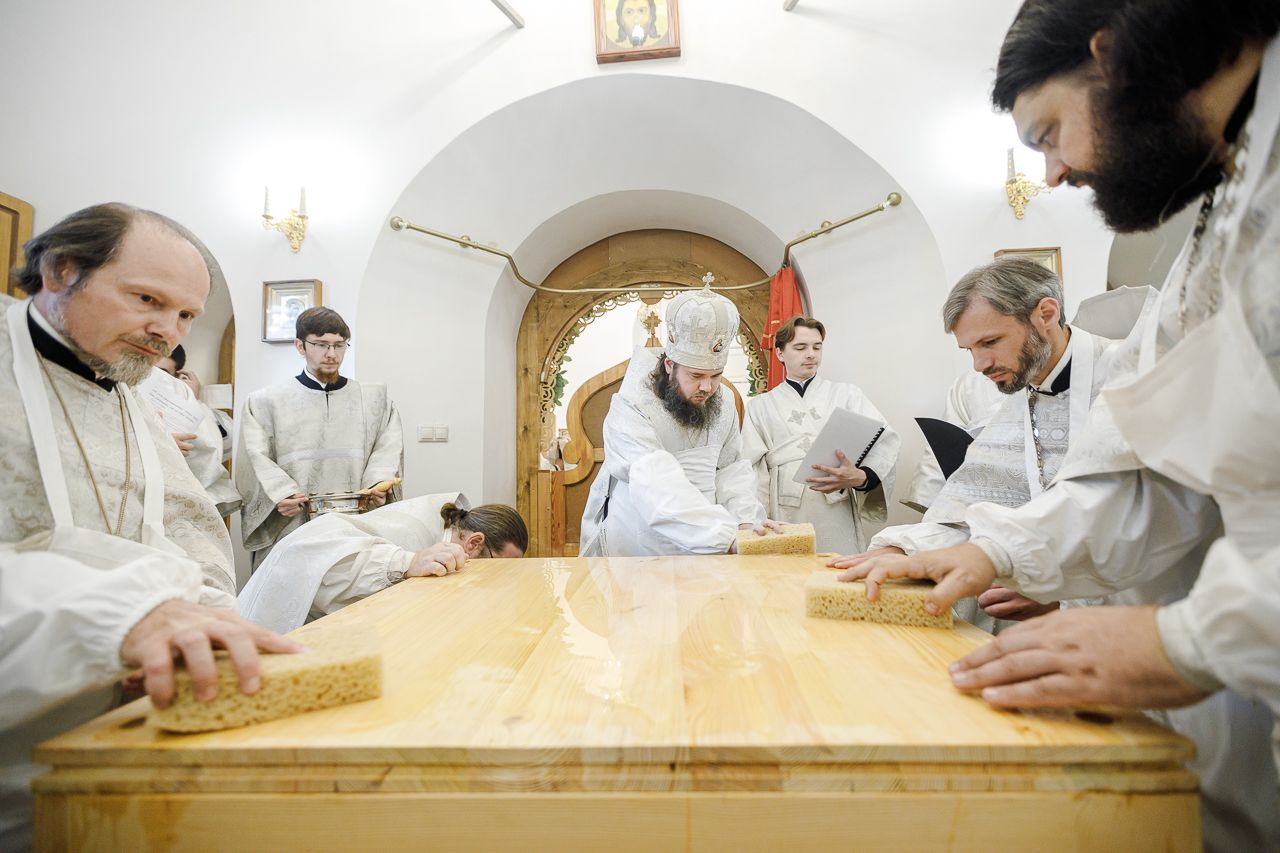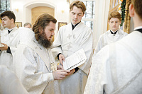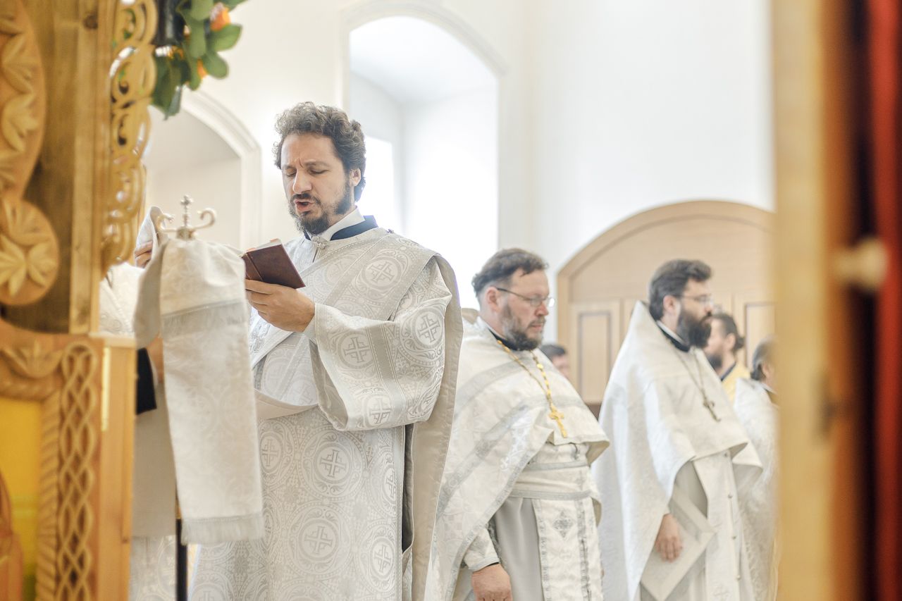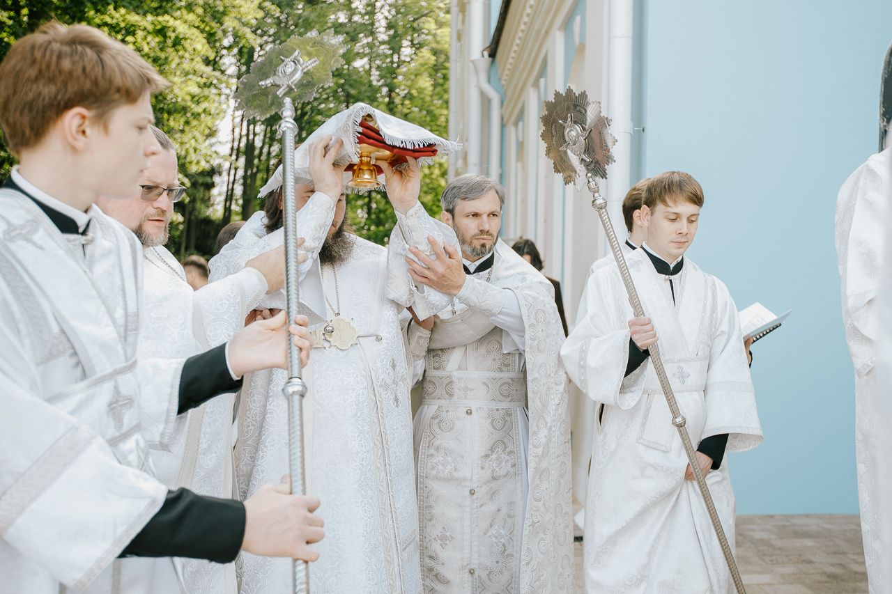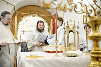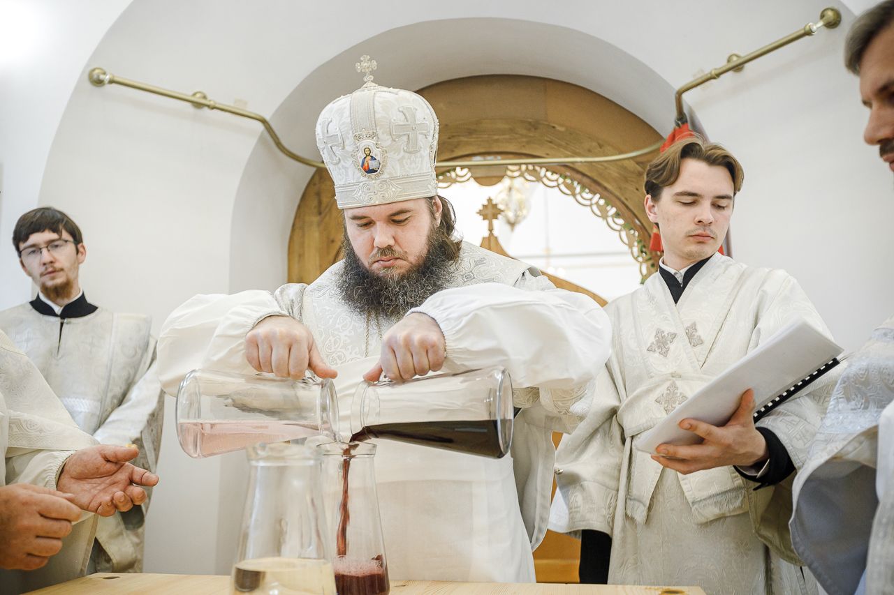 Его Преосвященству сослужили: Секретарь Сергиево-Посадской епархии благочинный Мытищинского церковного округа протоиерей Димитрий Оловянников, благочинный Рогачевского церковного округа иерей Сергий Сафронов, благочинный Долгопрудненского церковного округа протоиерей Андрей Хмызов, благочинный Химкинского церковного округа протоиерей Артемий Гранкин, благочинный Яхромского церковного округа иерей Сергий Бернацкий, настоятель храма в честь иконы Божией Матери «Знамение» иерей Дионисий Хропот и приглашенное духовенство.