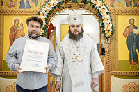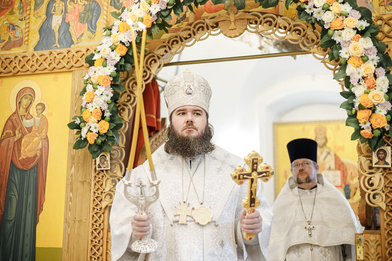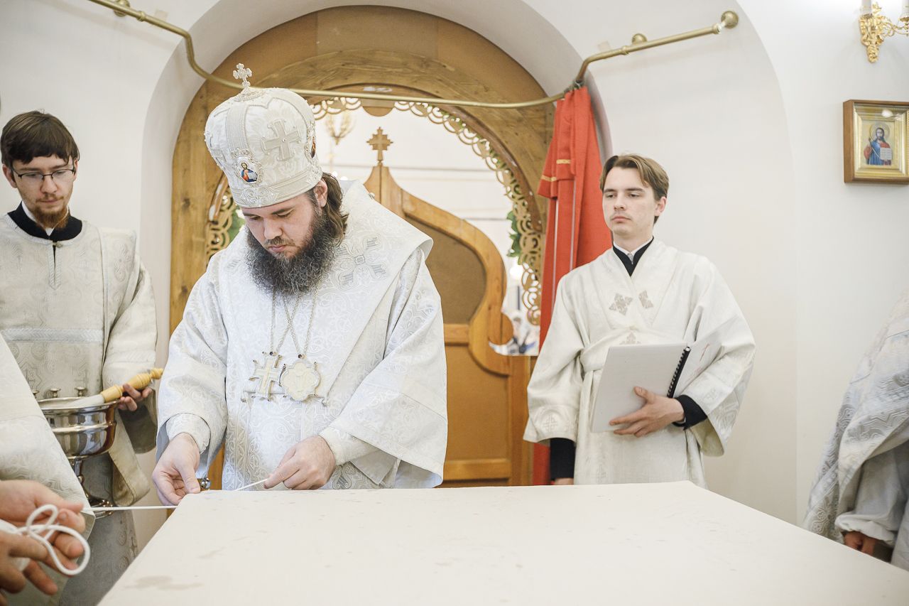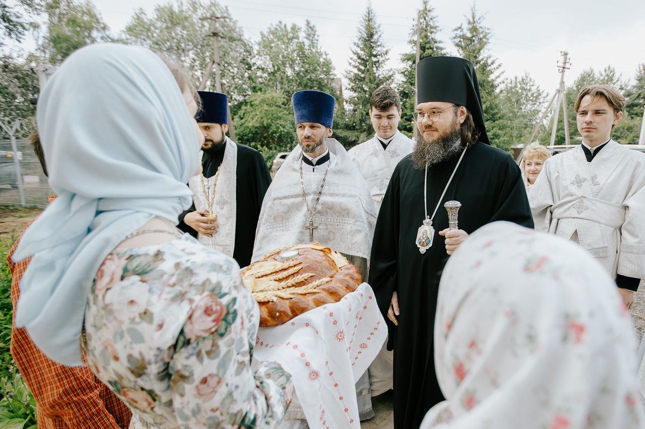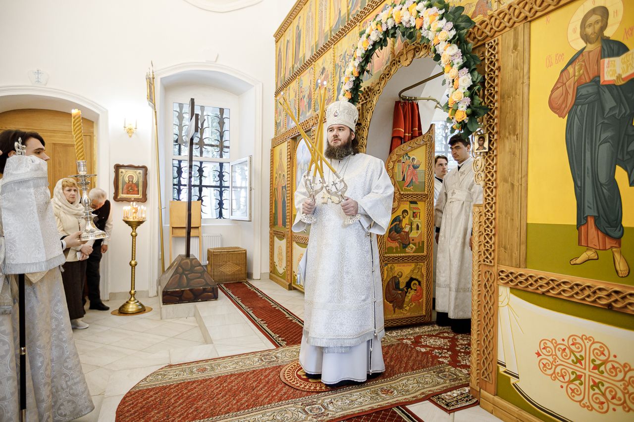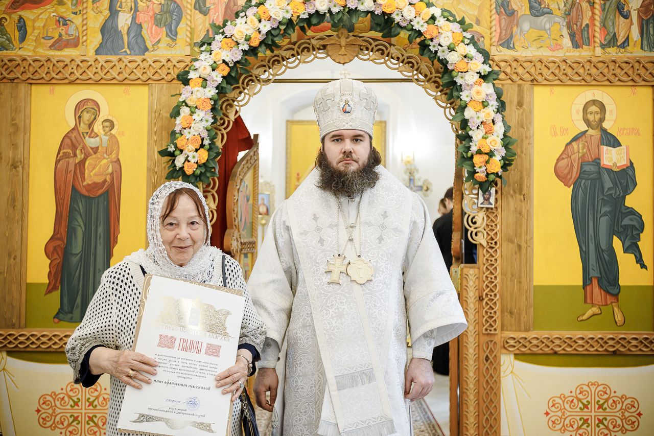 После Литургии настоятель храма поблагодарил Владыку за архипастырский визит и вручил памятный подарок. В ответном слове епископ Фома выразил благодарность иерею Дионисию за совместное богослужение и вручил в дар храму богослужебные покровцы, изготовленные в золотошвейной мастерской Троице-Сергиевой Лавры, и набор богослужебных копий. Также Владыка обратился с архипастырским словом ко всем присутствовавшим.