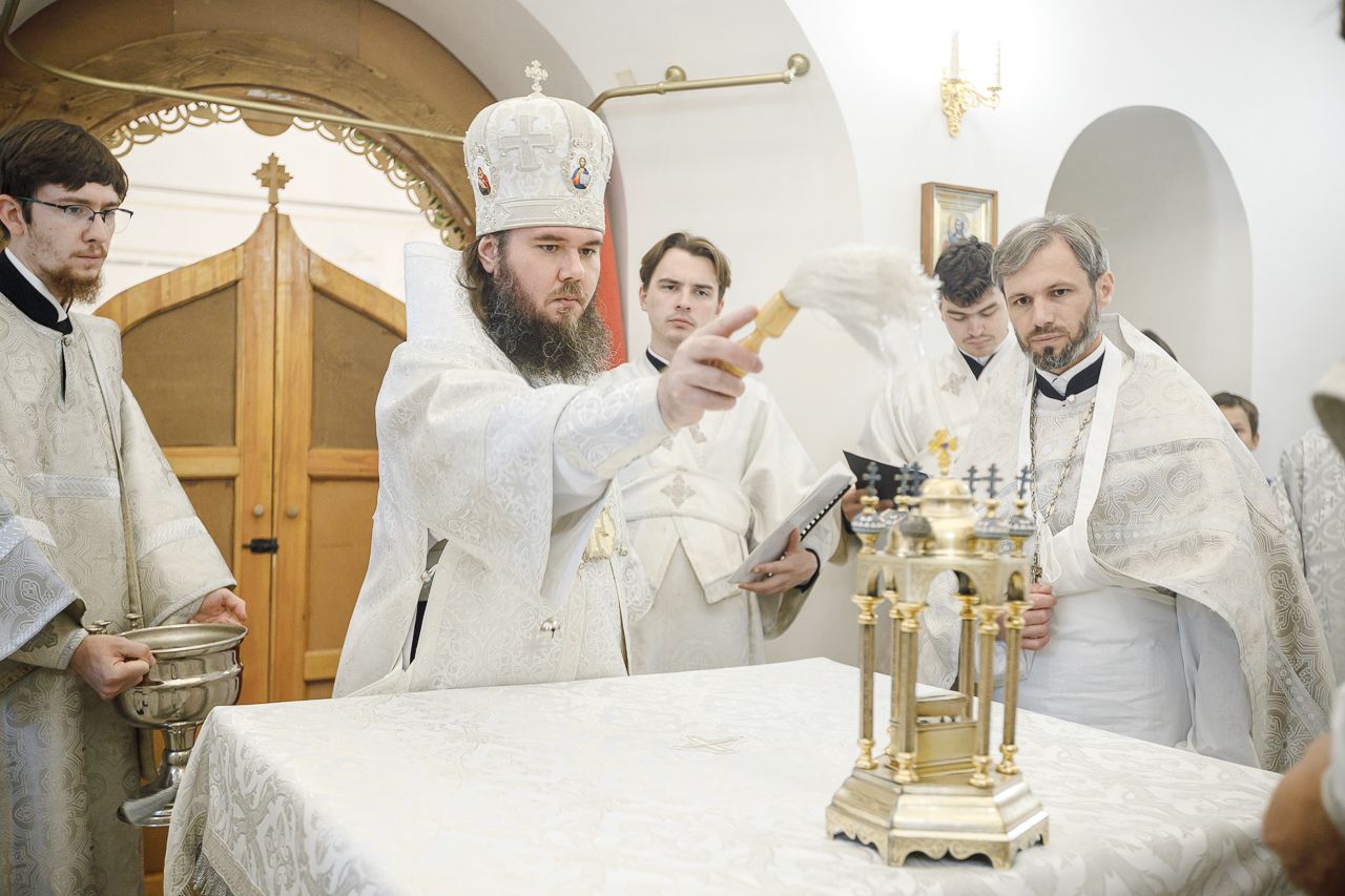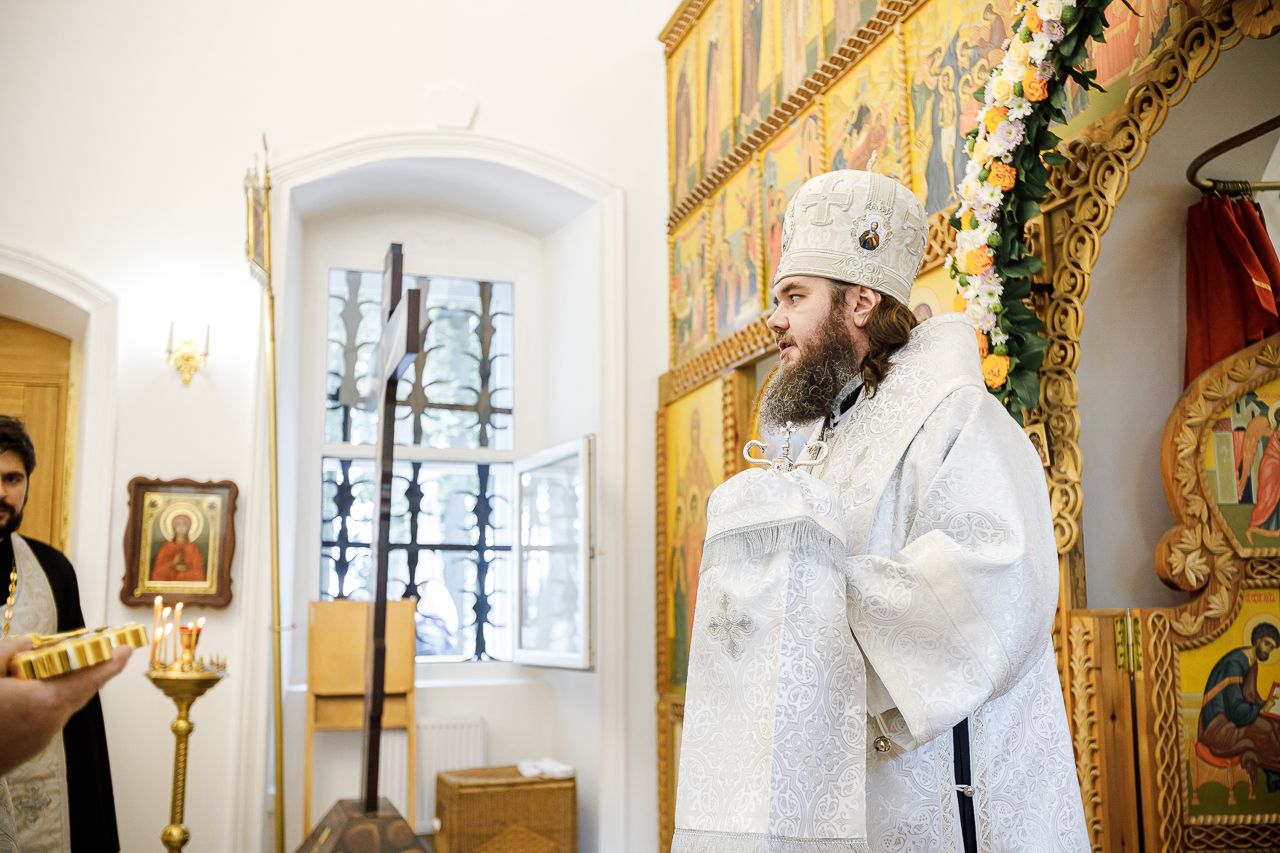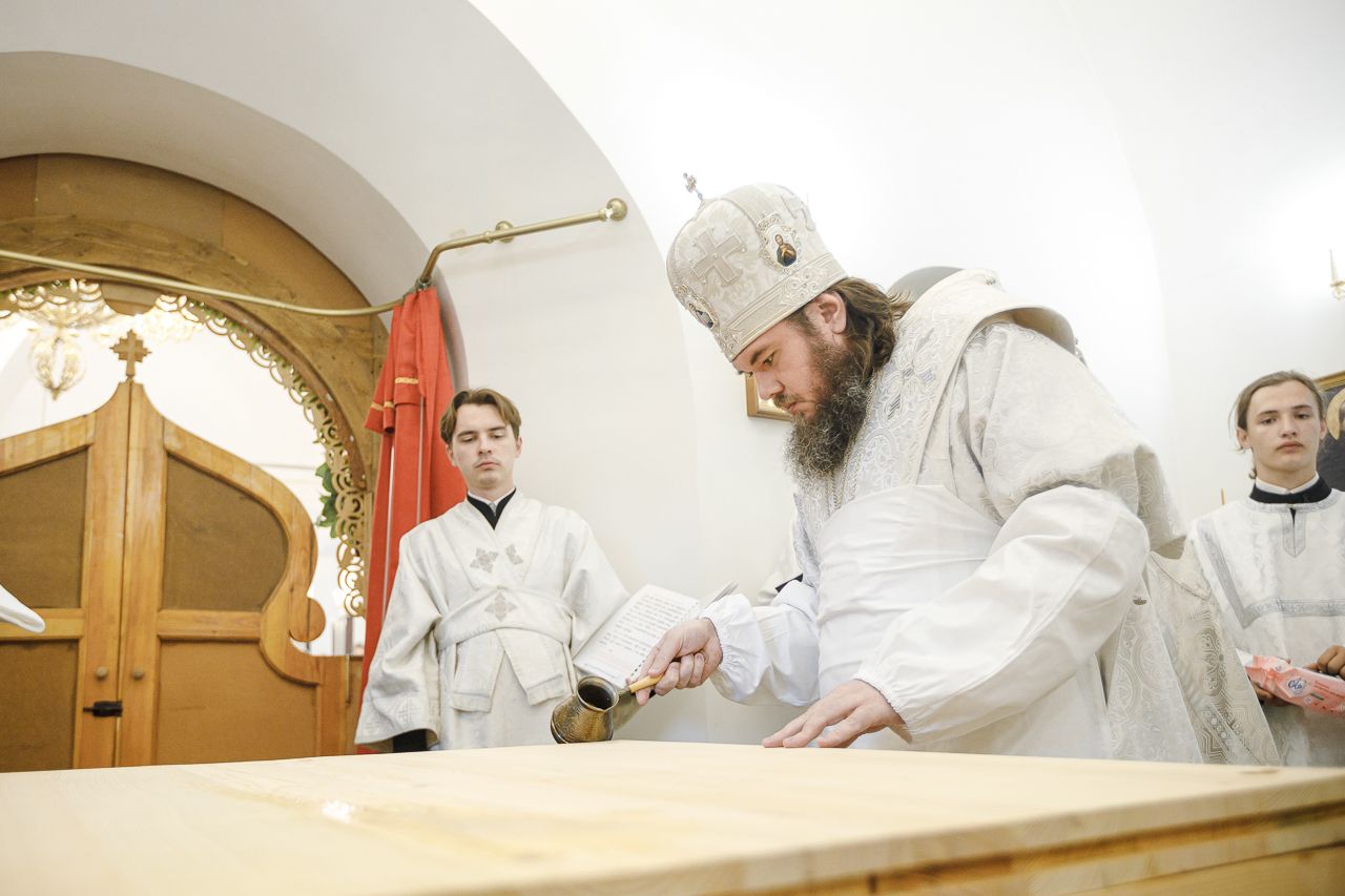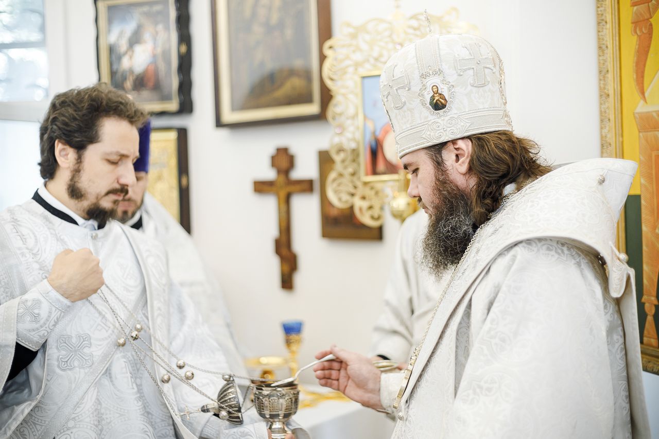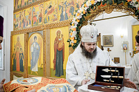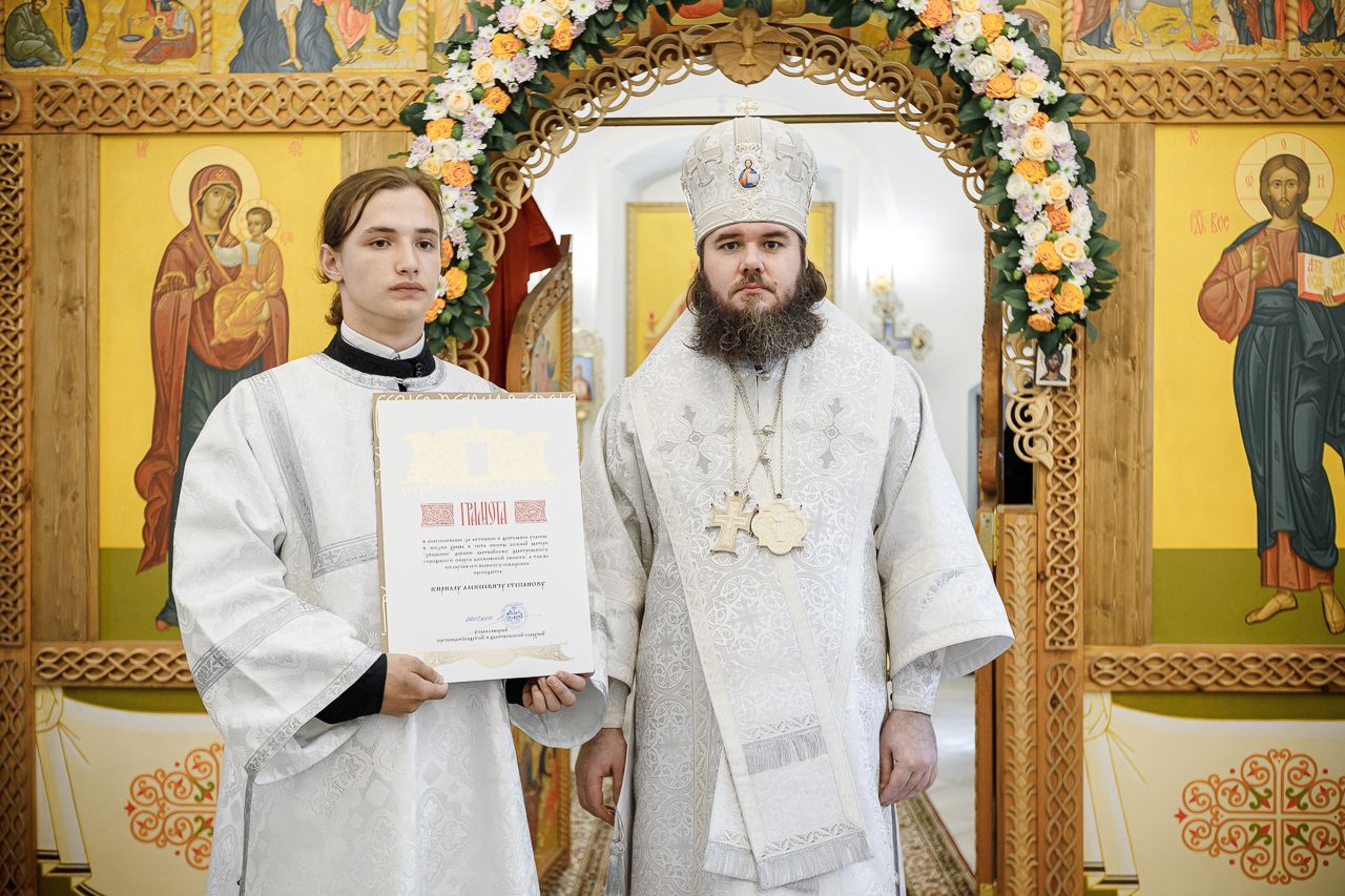 После Литургии настоятель храма поблагодарил Владыку за архипастырский визит и вручил памятный подарок. В ответном слове епископ Фома выразил благодарность иерею Дионисию за совместное богослужение и вручил в дар храму богослужебные покровцы, изготовленные в золотошвейной мастерской Троице-Сергиевой Лавры, и набор богослужебных копий. Также Владыка обратился с архипастырским словом ко всем присутствовавшим.