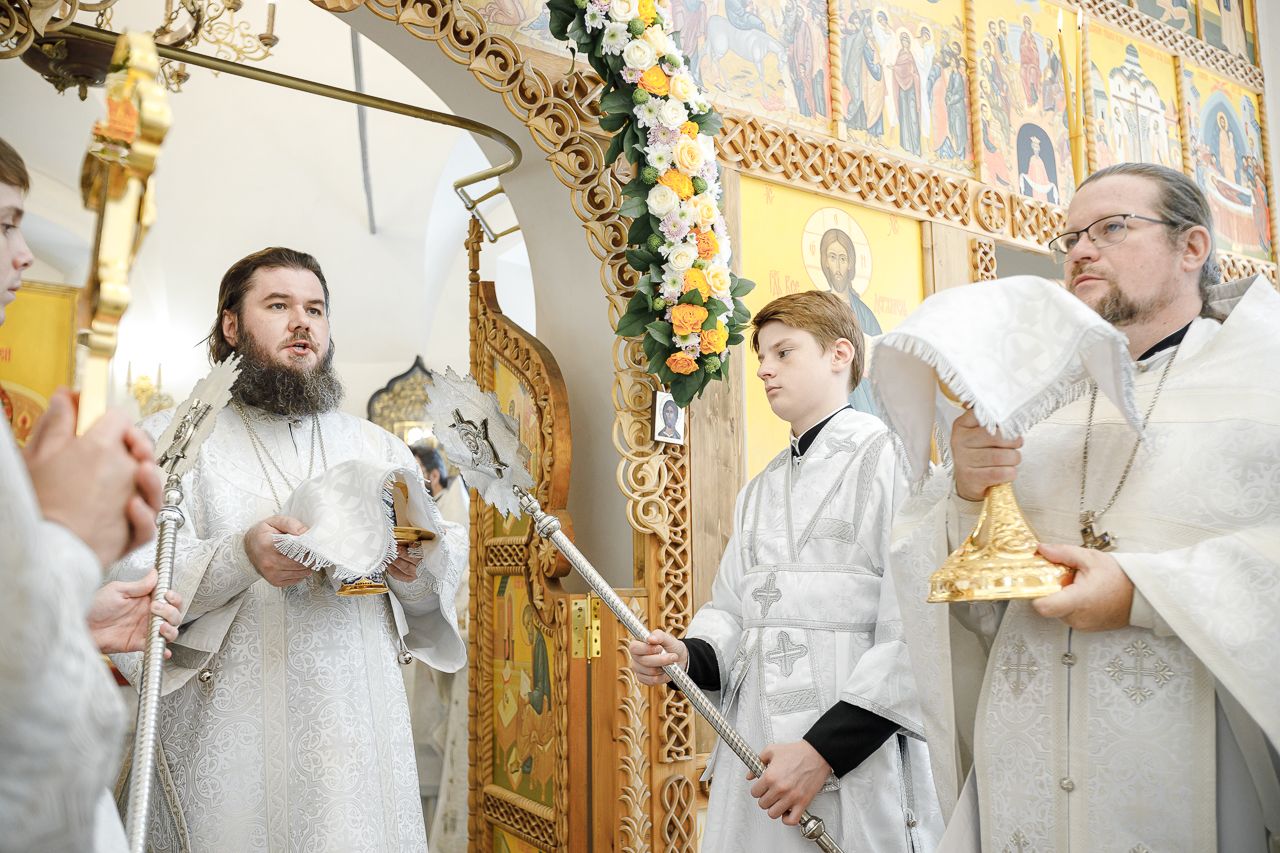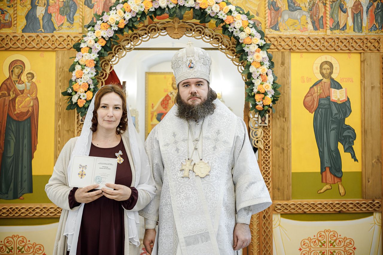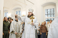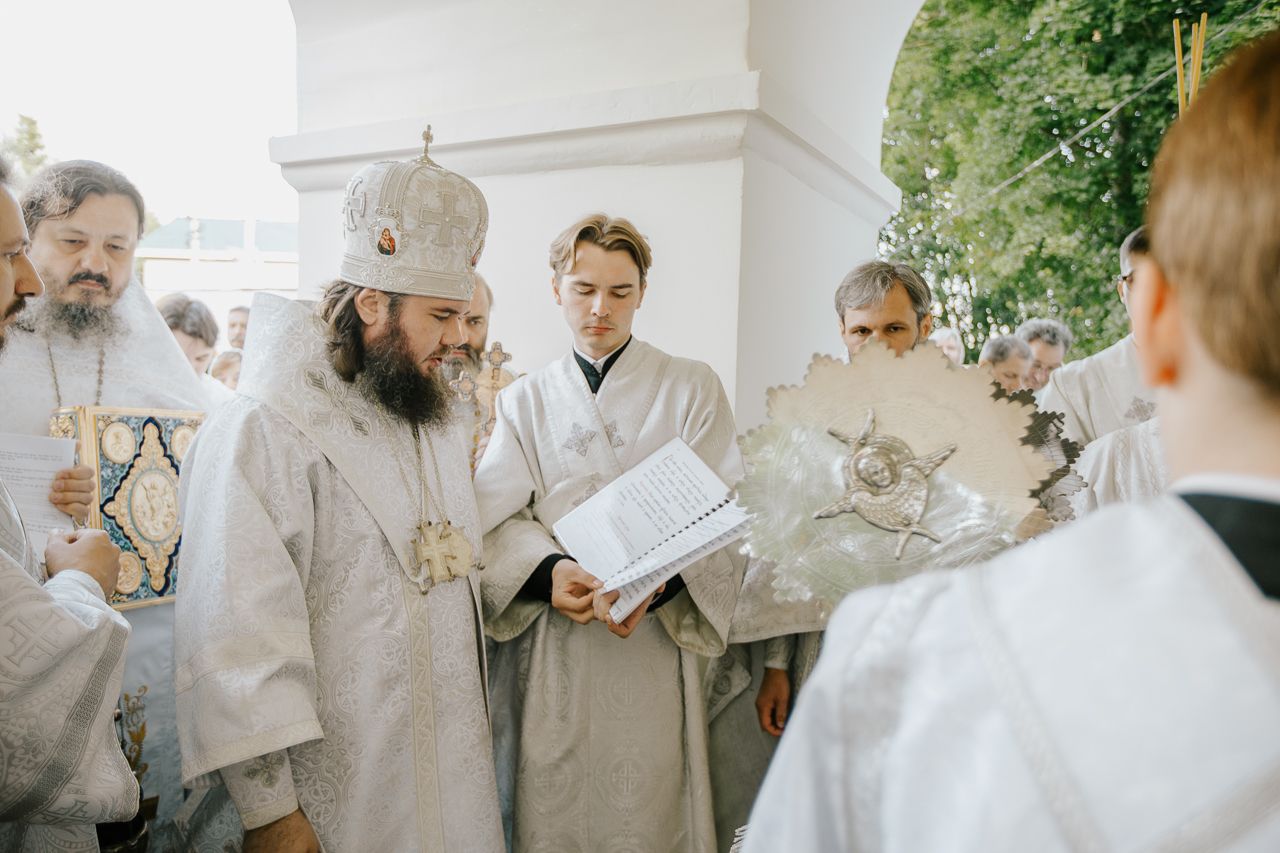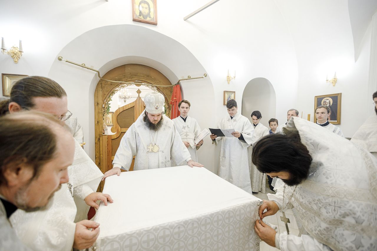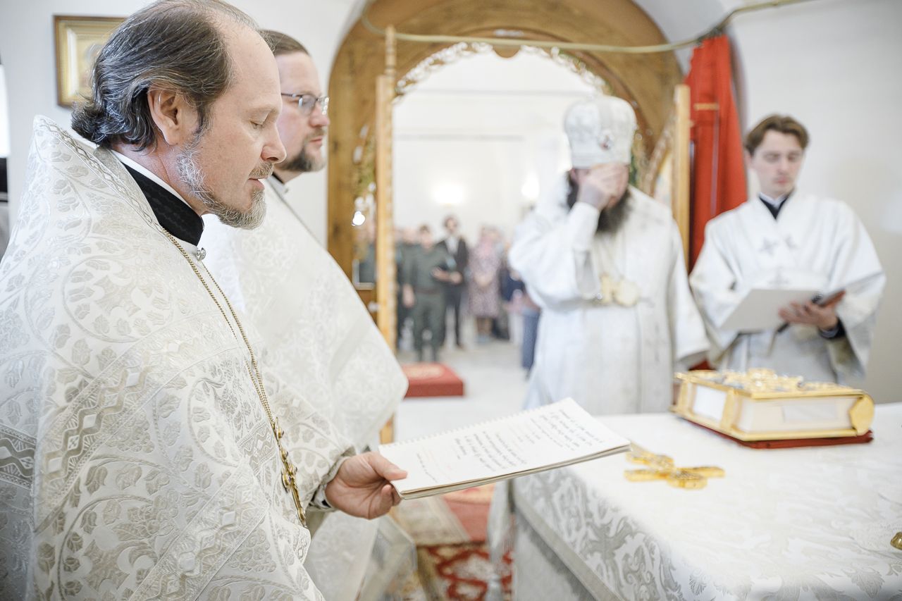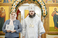 После Литургии настоятель храма поблагодарил Владыку за архипастырский визит и вручил памятный подарок. В ответном слове епископ Фома выразил благодарность иерею Дионисию за совместное богослужение и вручил в дар храму богослужебные покровцы, изготовленные в золотошвейной мастерской Троице-Сергиевой Лавры, и набор богослужебных копий. Также Владыка обратился с архипастырским словом ко всем присутствовавшим.