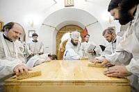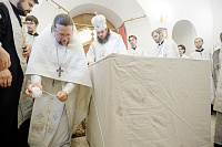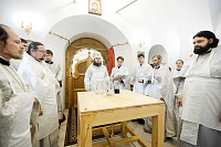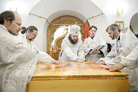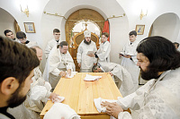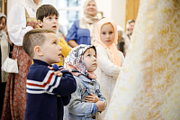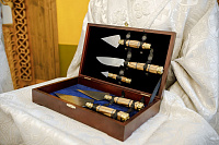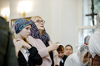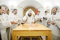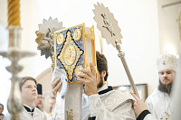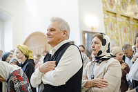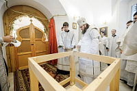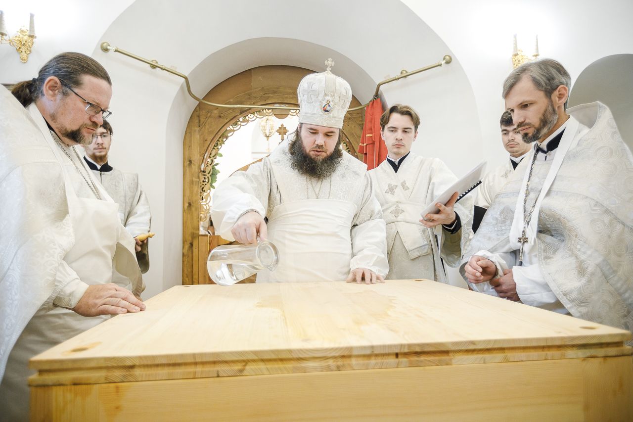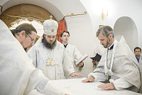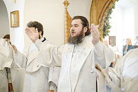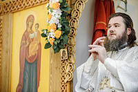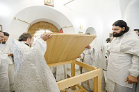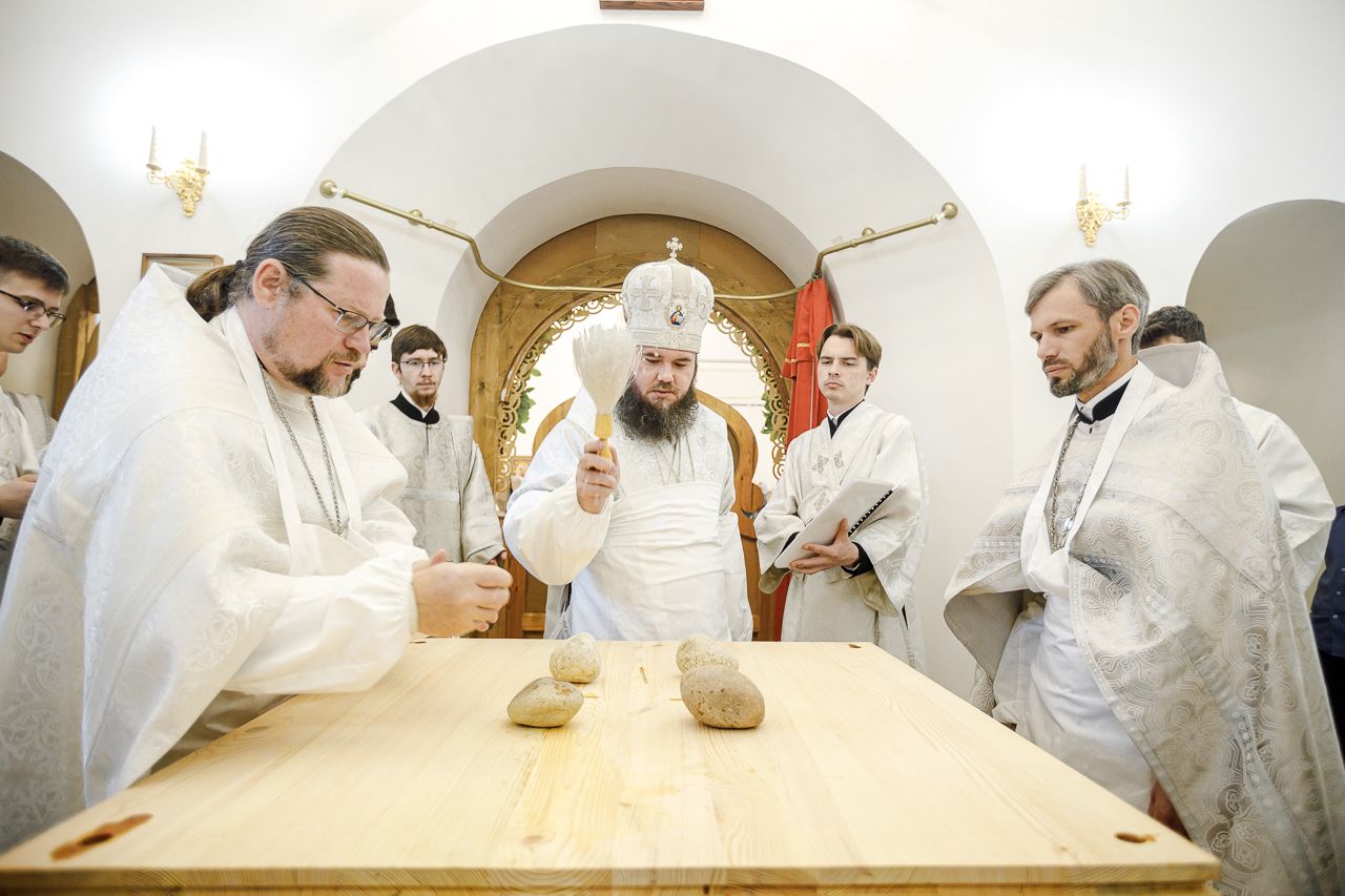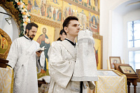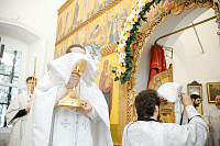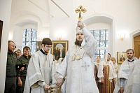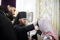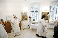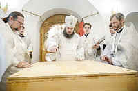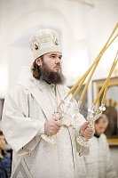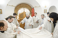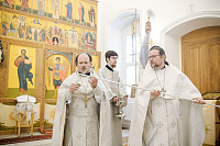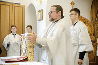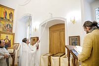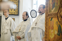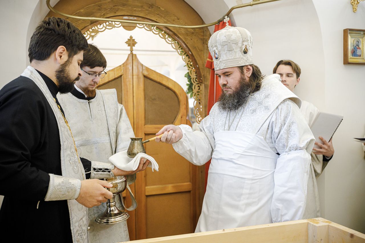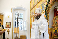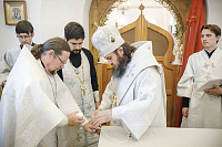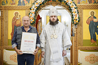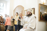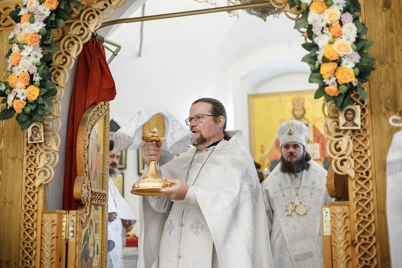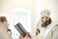 После Литургии настоятель храма поблагодарил Владыку за архипастырский визит и вручил памятный подарок. В ответном слове епископ Фома выразил благодарность иерею Дионисию за совместное богослужение и вручил в дар храму богослужебные покровцы, изготовленные в золотошвейной мастерской Троице-Сергиевой Лавры, и набор богослужебных копий. Также Владыка обратился с архипастырским словом ко всем присутствовавшим.