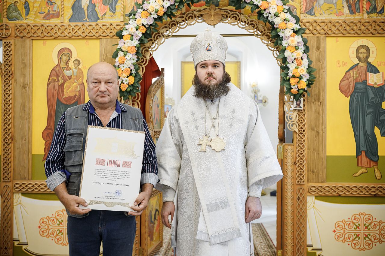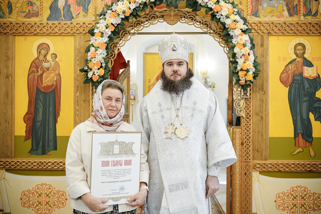 Грамоту Сергиево-Посадской епархии: Анатолию Анатольевичу Юсипову, Ольге Владимировне Кузьмичевой, Нине Афанасьевне Прытковой, Ивану Денисовичу Хропоту, Светлане Евгеньевне Антоновой, Кириллу Алексеевичу Степанову, Виктору Васильевичу Роговскому.