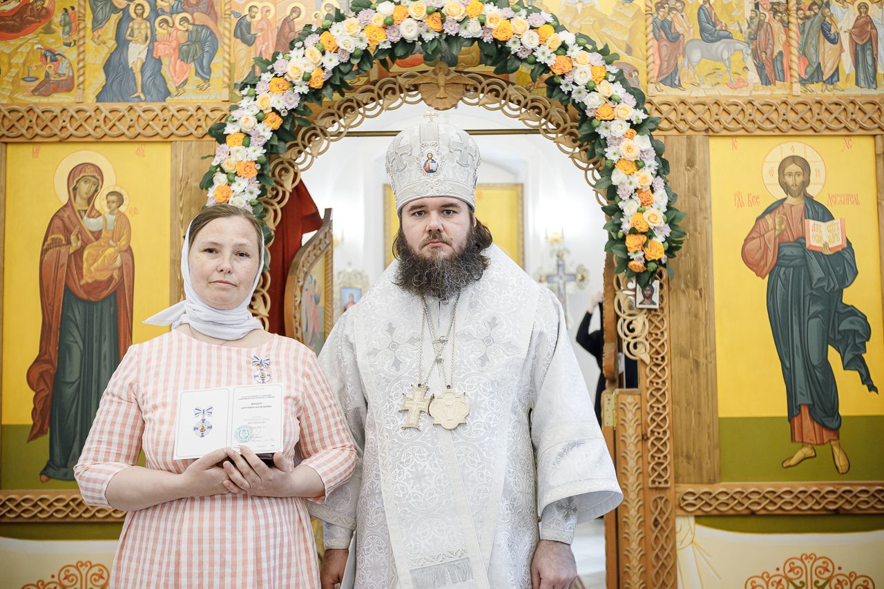 Патриарший знак материнства II степени: Антонине Васильевне Хропот, Наталье Александровне Зиновьевой.