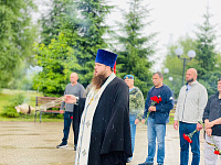 Отец Александр обратился к собравшимся с приветственным словом и совершил заупокойную литию по усопшим воинам.