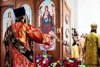 По окончании богослужения архиепископ Фома совершил славление новомученикам и исповедникам Шаховским, а также освятил новую икону Шаховских новомучеников, написанную на средства прихожан Воскресенского храма. После владыка обратился к собравшимся с архипастырским словом.