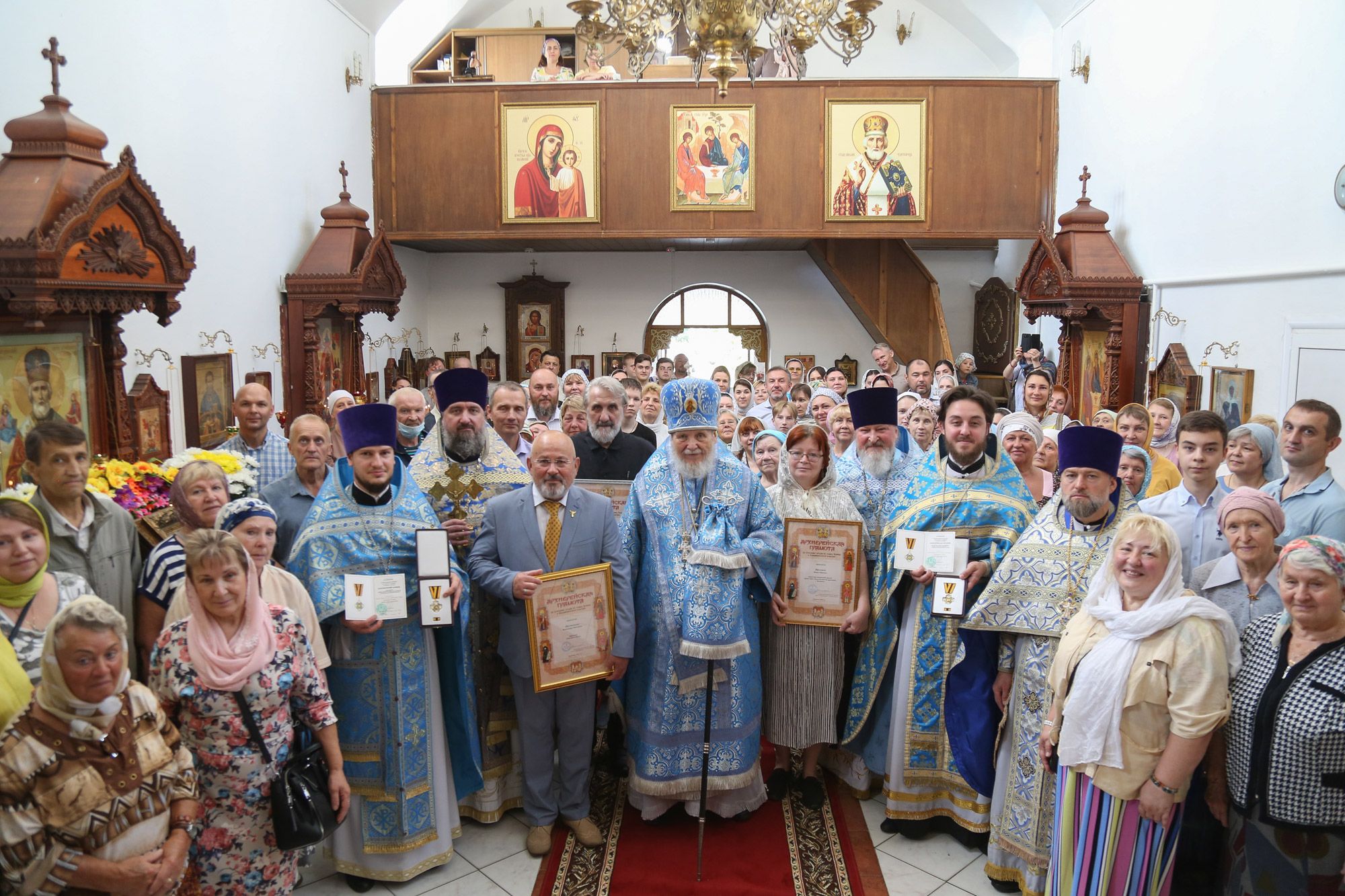 По окончании Литургии перед Владимирской иконой Божией Матери было совершено славление, после чего Владыка Николай вручил священникам Богородского благочиния Василию Алфееву и Вячеславу Краснову медали ордена Русской Православной Церкви святого благоверного князя Димитрия Донского, которых они были удостоены Святейшим Патриархом Кириллом за совершение командировок в зону проведения Специальной военной операции с целью духовного окормления военнослужащих в 2022 году. Благотворители и труженики храма были награждены архиерейскими грамотами Балашихинской епархии.