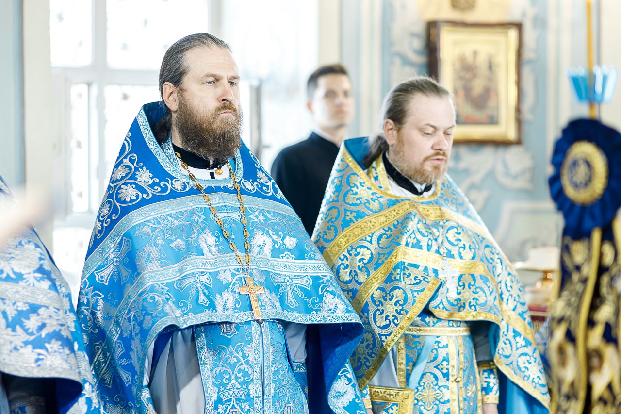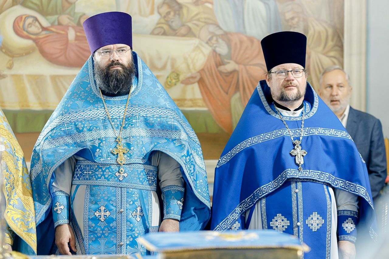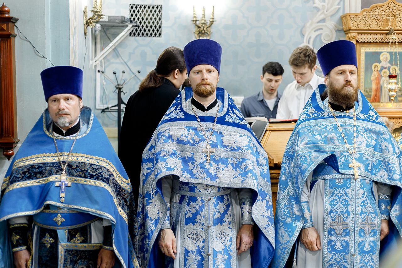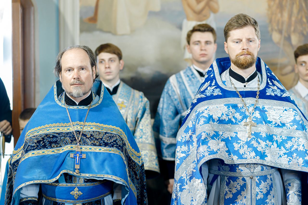 Его Преосвященству сослужили: настоятель храма Владимирской иконы Божией Матери, Секретарь Сергиево-Посадской епархии протоиерей Димитрий Оловянников, благочинный Долгопрудненского церковного округа протоиерей Андрей Хмызов, благочинный Химкинского церковного округа протоиерей Артемий Гранкин, благочинный Королёвского церковного округа иерей Димитрий Поповский, благочинный Пушкинского церковного округа иерей Василий Ковальчук, а также приглашенное духовенство.