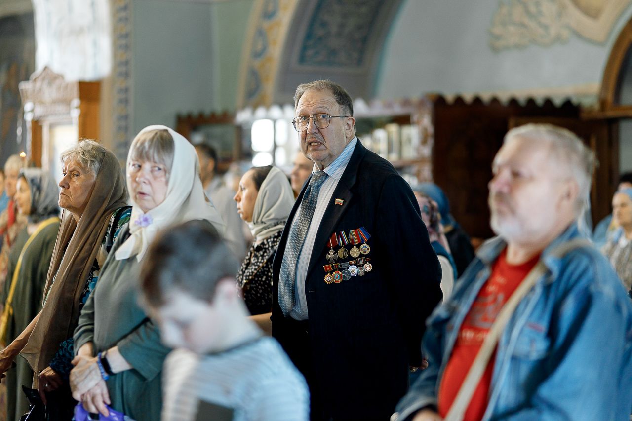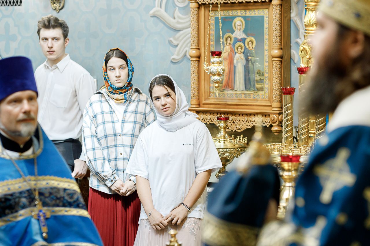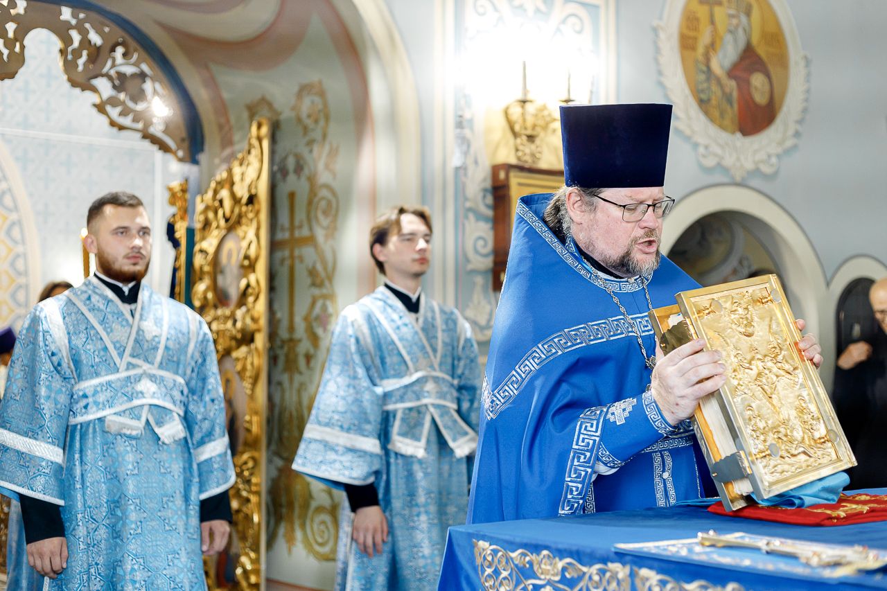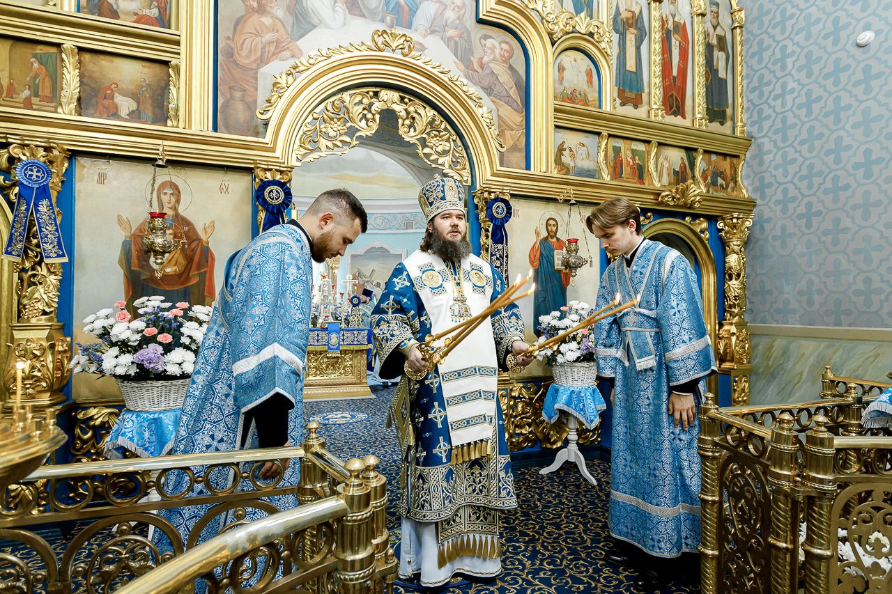 Его Преосвященству сослужили: настоятель храма Владимирской иконы Божией Матери, Секретарь Сергиево-Посадской епархии протоиерей Димитрий Оловянников, благочинный Долгопрудненского церковного округа протоиерей Андрей Хмызов, благочинный Химкинского церковного округа протоиерей Артемий Гранкин, благочинный Королёвского церковного округа иерей Димитрий Поповский, благочинный Пушкинского церковного округа иерей Василий Ковальчук, а также приглашенное духовенство.