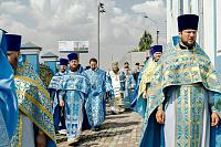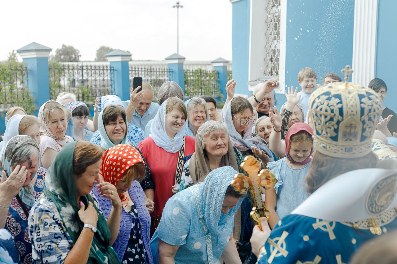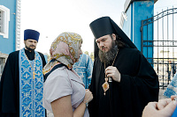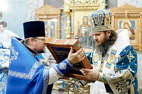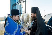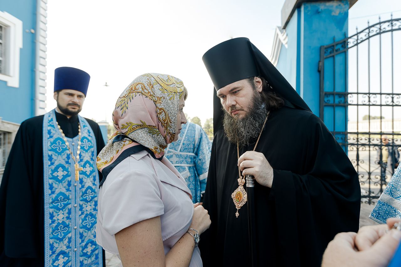 По окончании Божественной литургии епископ Фома, сослужащее духовенство и молящиеся прошли крестным ходом вокруг храма. Затем настоятель храма протоиерей Димитрий Оловянников рассказал об истории и жизни прихода, а также поблагодарил епископа Фому за архипастырский визит и передал ему в дар икону Спаса Нерукотворного.