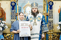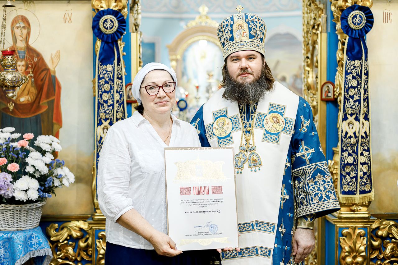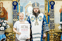 Владыка поздравил молящихся с юбилейной датой – 310-летием со дня основания храма – и обратился к присутствовавшим со словами напутствия. Затем епископ Фома по случаю 310-летия со дня основания храма в честь Владимирской иконы Божией Матери г. Мытищи Московской области вручил епархиальные грамоты. Их получили: