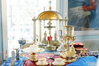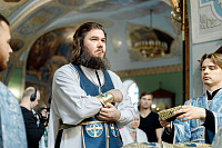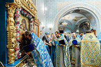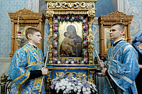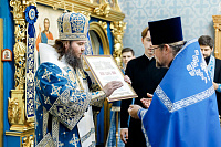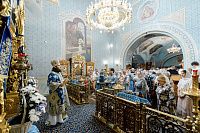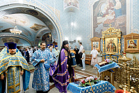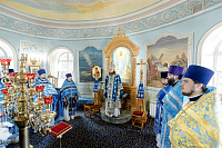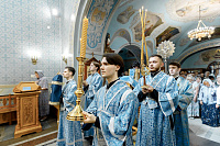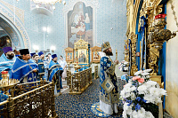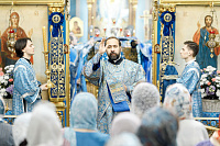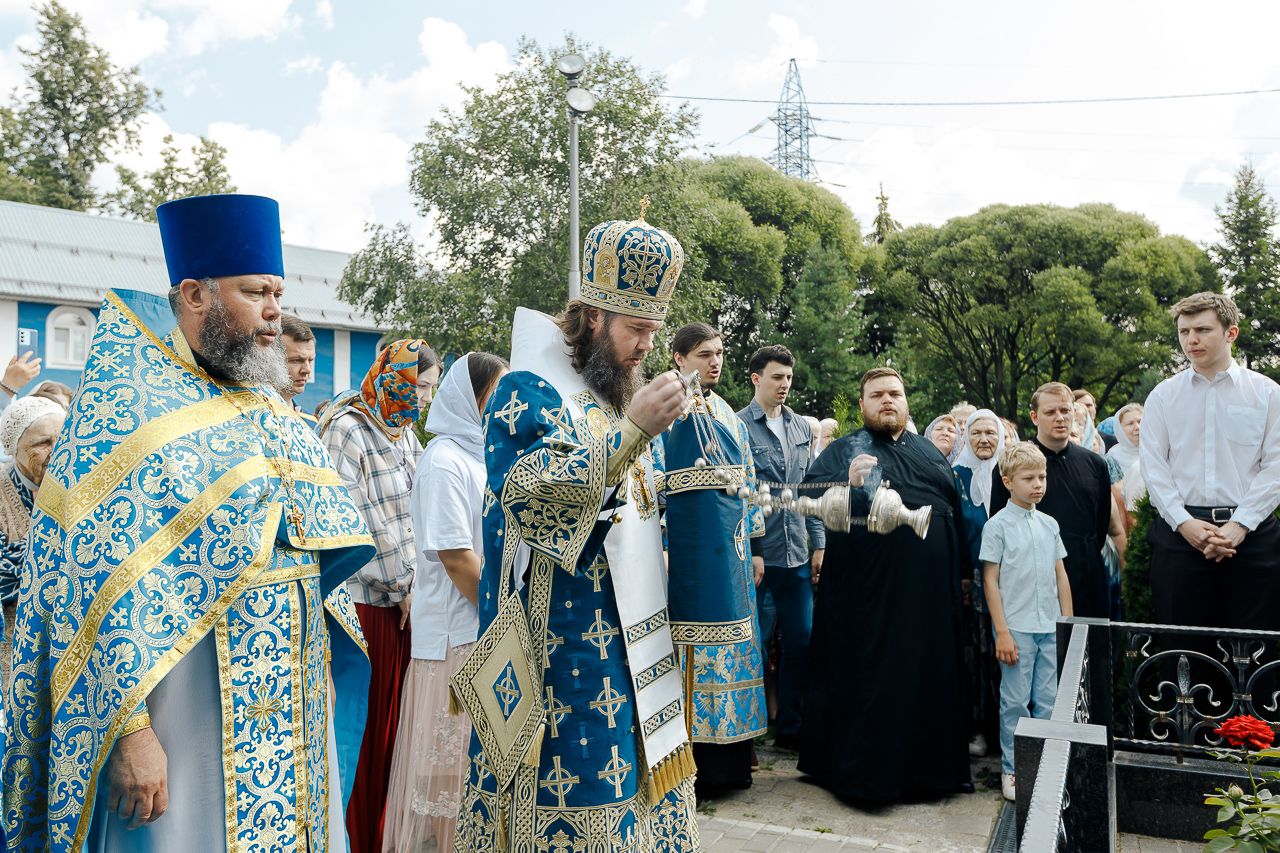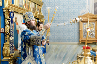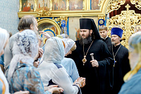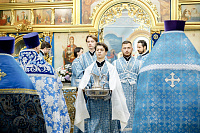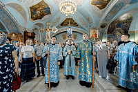 6июля епископ Сергиево-Посадский и Дмитровский Фома совершил Божественную литургию в храме Владимирской иконы Божией Матери г. Мытищи. В этот день храм отмечал престольный праздник.