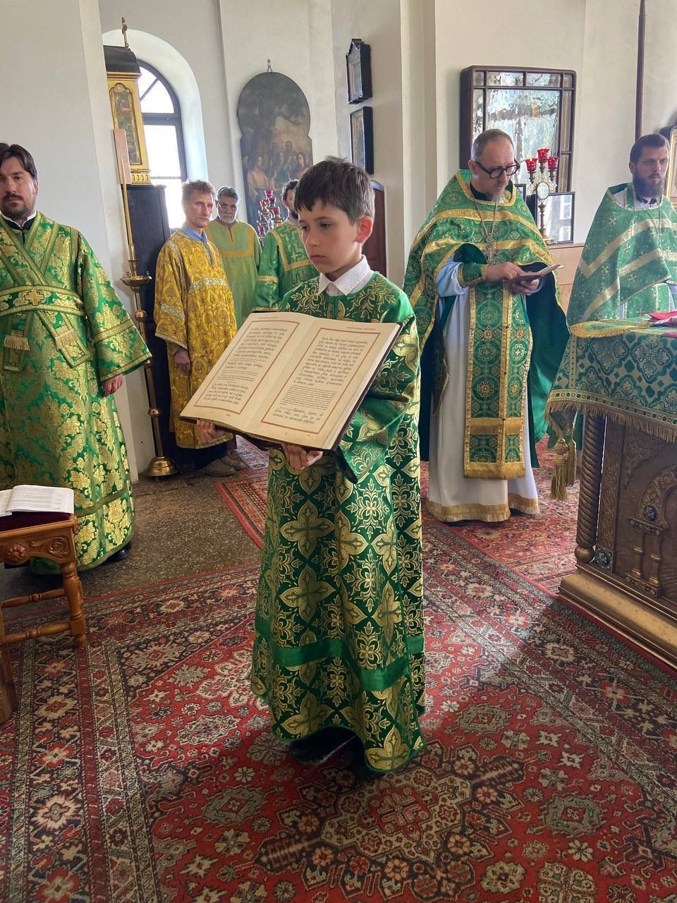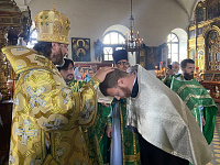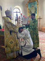 По окончании Евхаристического канона, Его Высокопреосвященство рукоположил алтарника храма Архангела Михаила г. Можайск Сергия Латышева во диакона.
