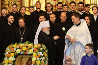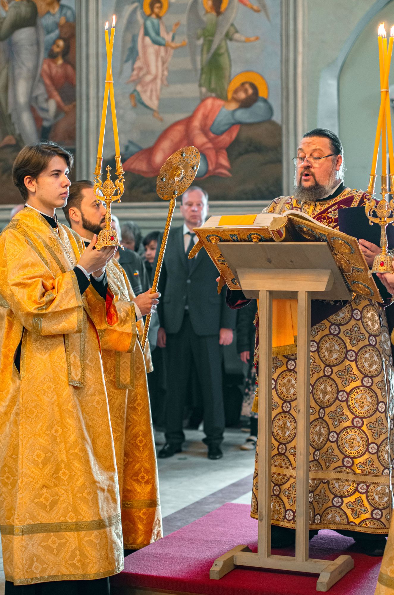 Богослужебные песнопения исполнил хор Коломенской духовной семинарии под управлением иерея Димитрия Степаненкова.